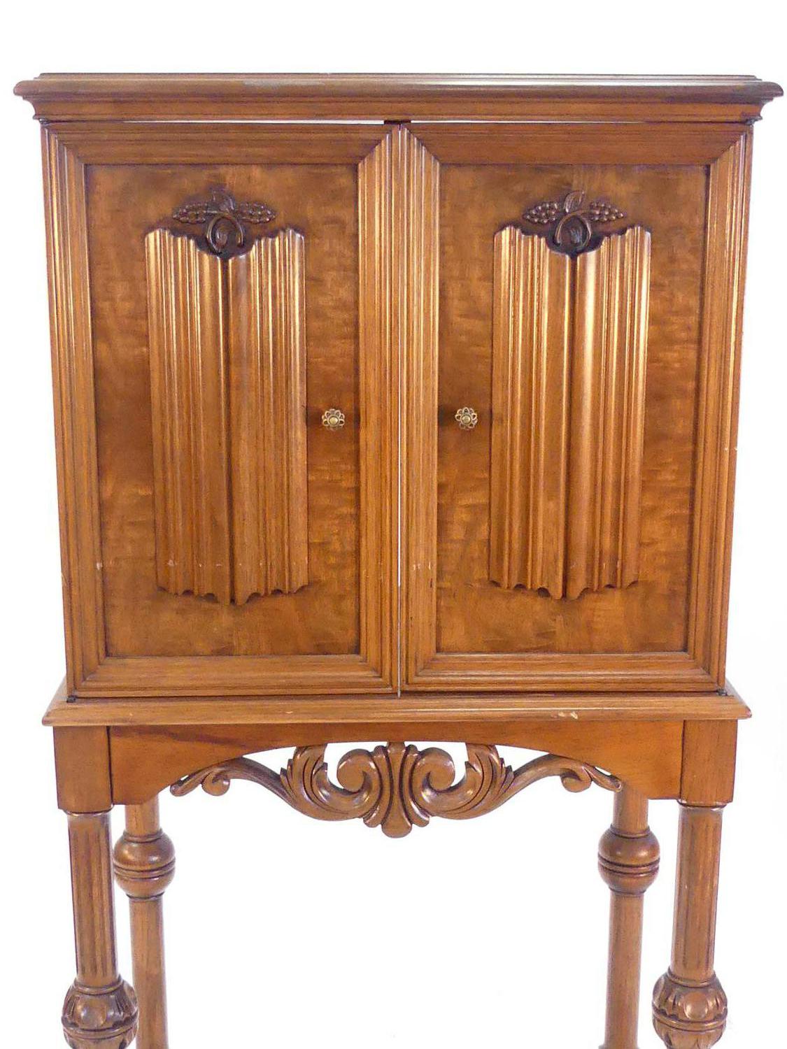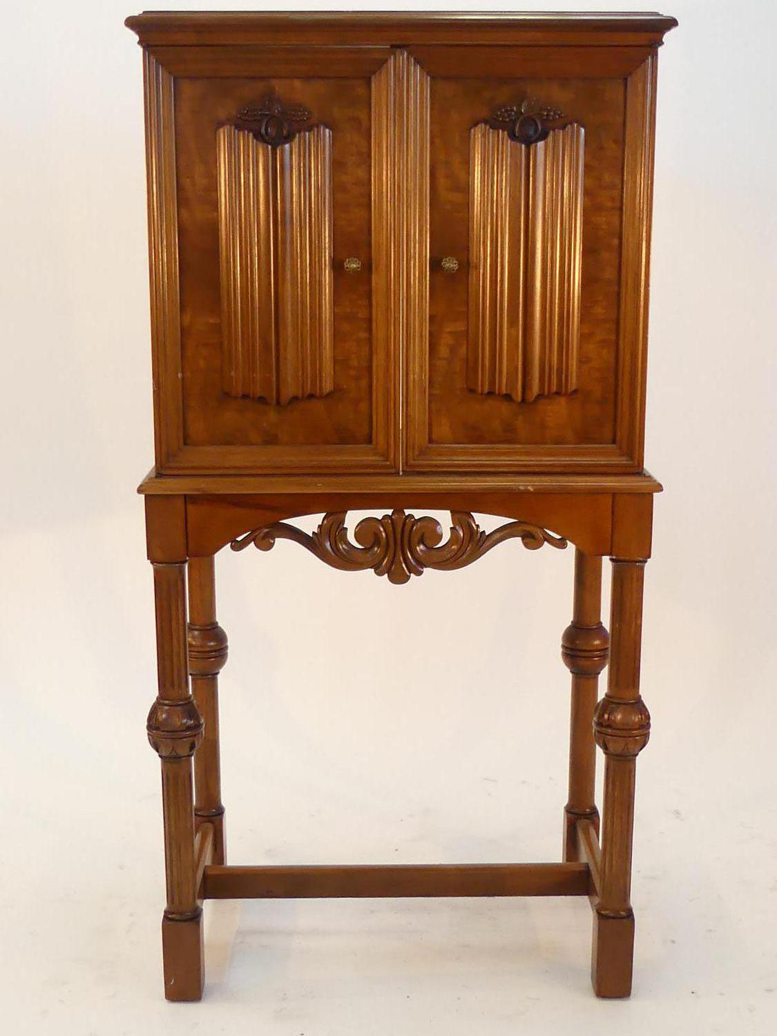 walnut side cabinet with linen fold doors, c.1930, 50" x 25 1/2" x 16"