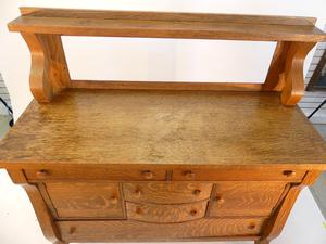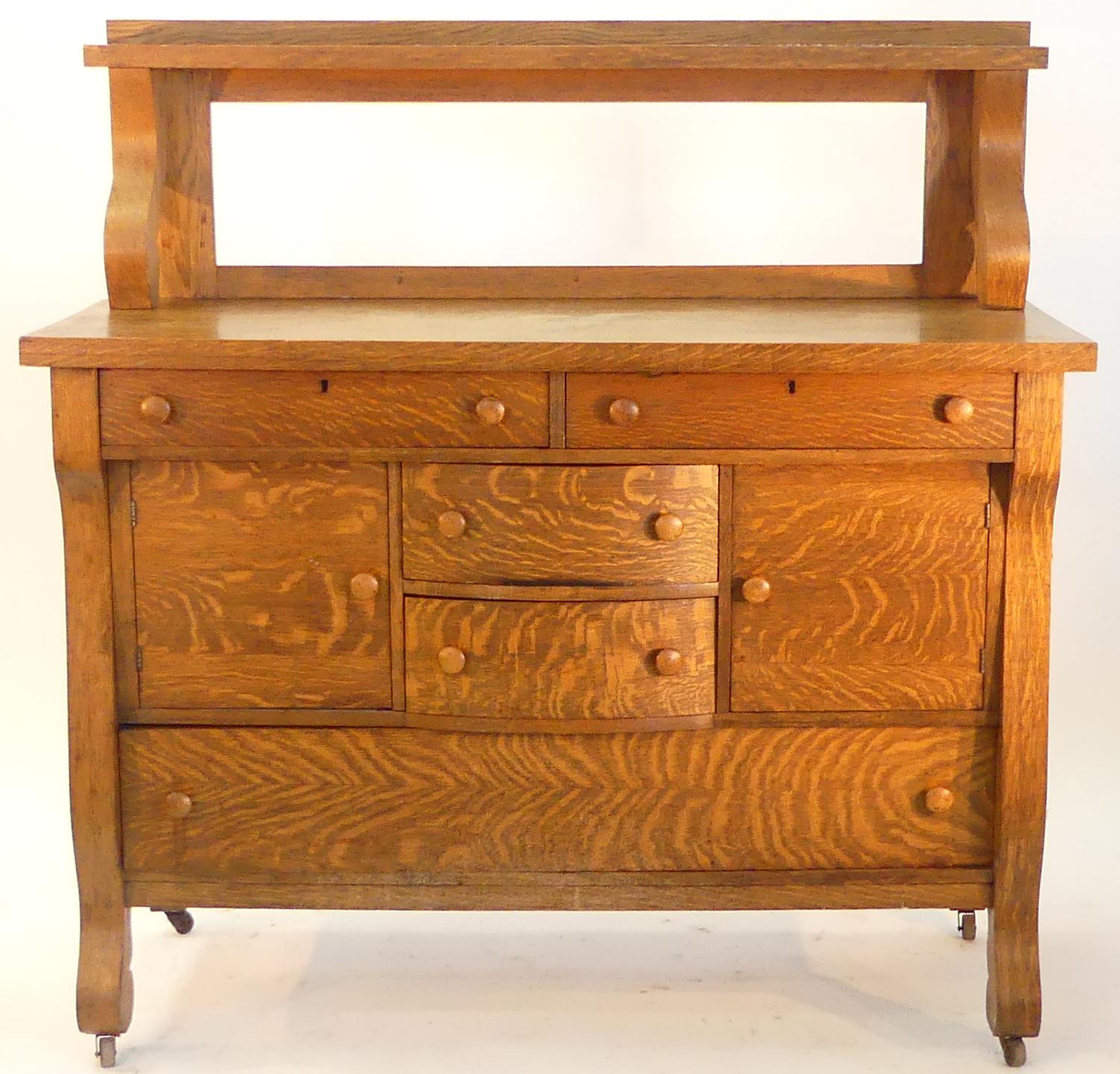 arts & crafts oak sideboard, early 20th century, 55 1/2" x 54" x 22"