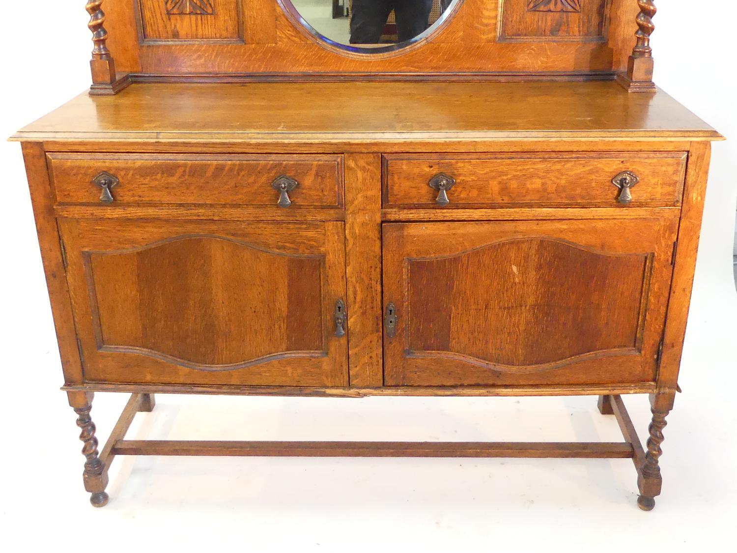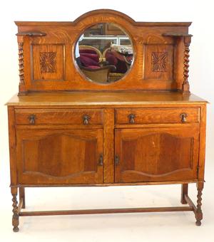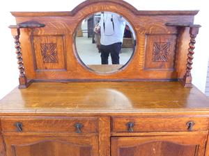 arts & crafts oak sideboard with mirror back, england early 20th century, 60 3/4" x 54" x 20"