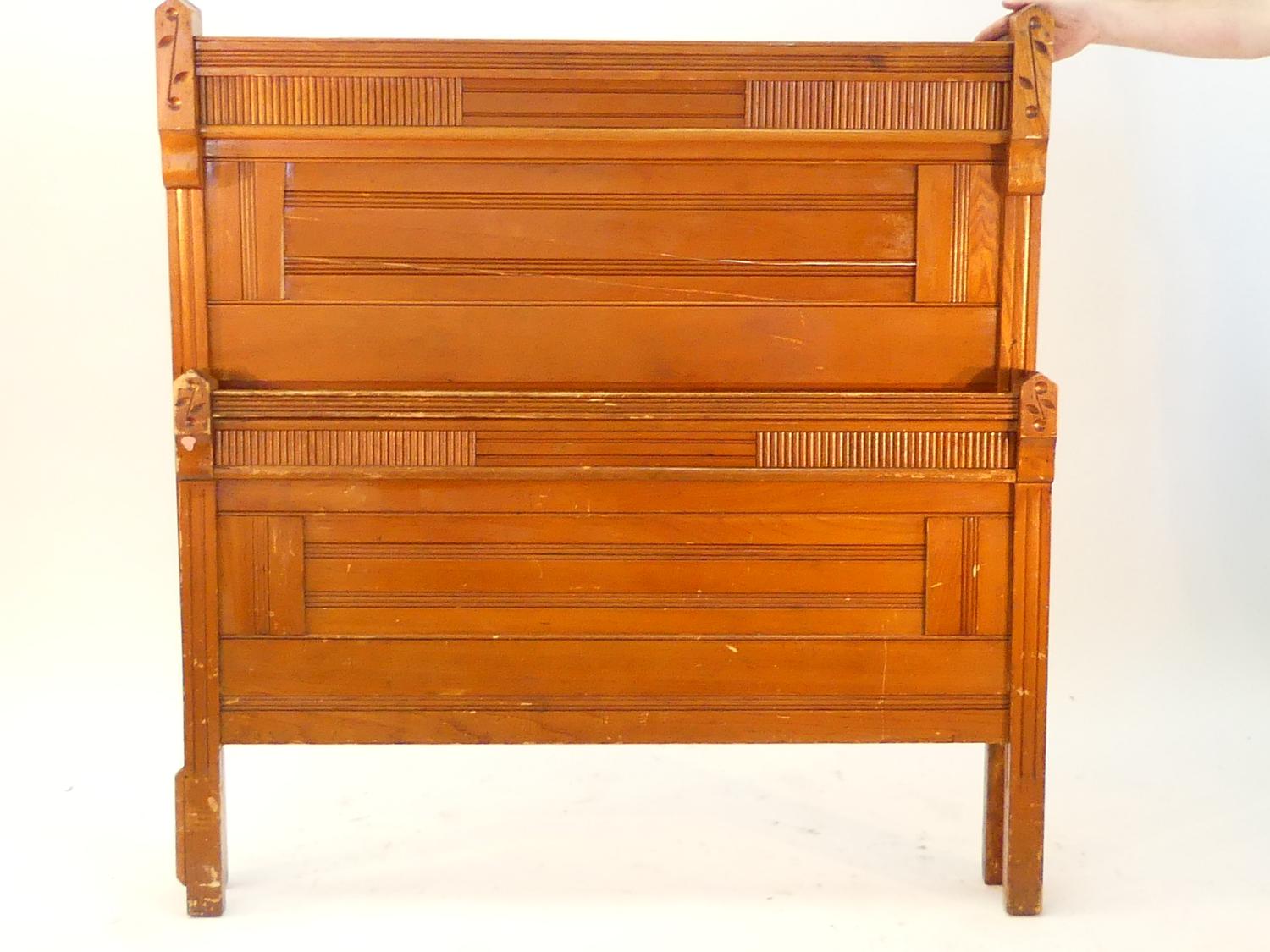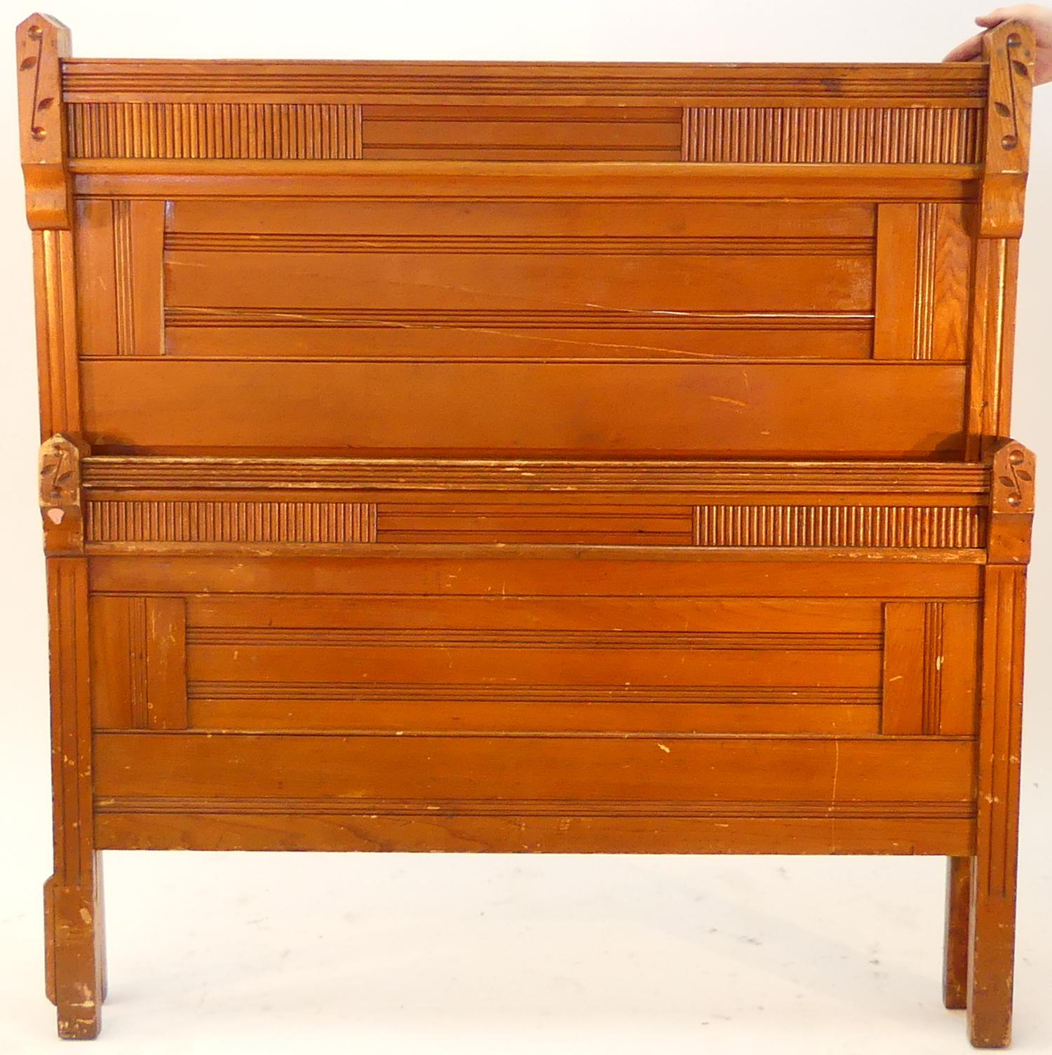 canadiana ash high headboard beadstead complete with rails, late 19th century, width 50"