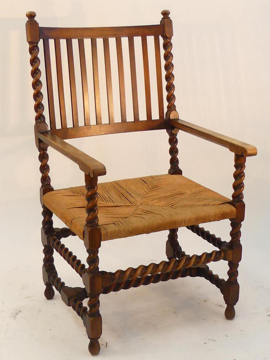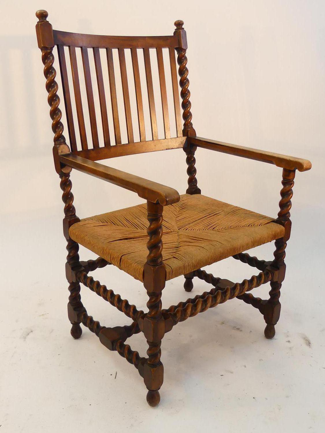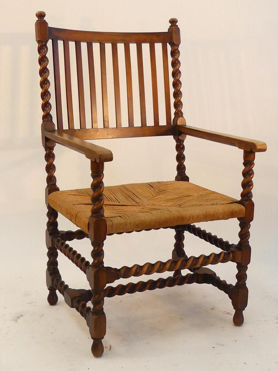 oak armchair with barley twist supports, england c.1900