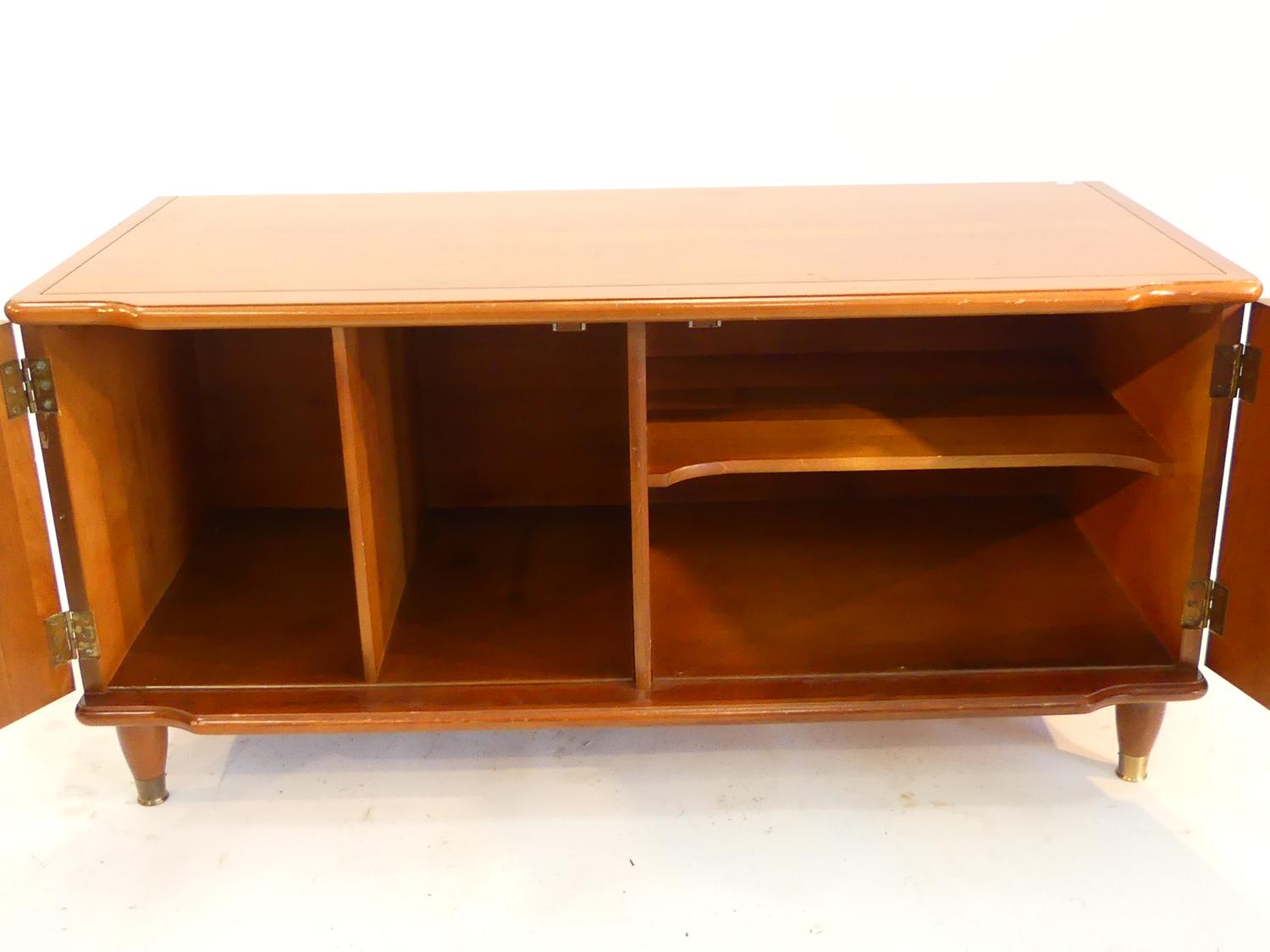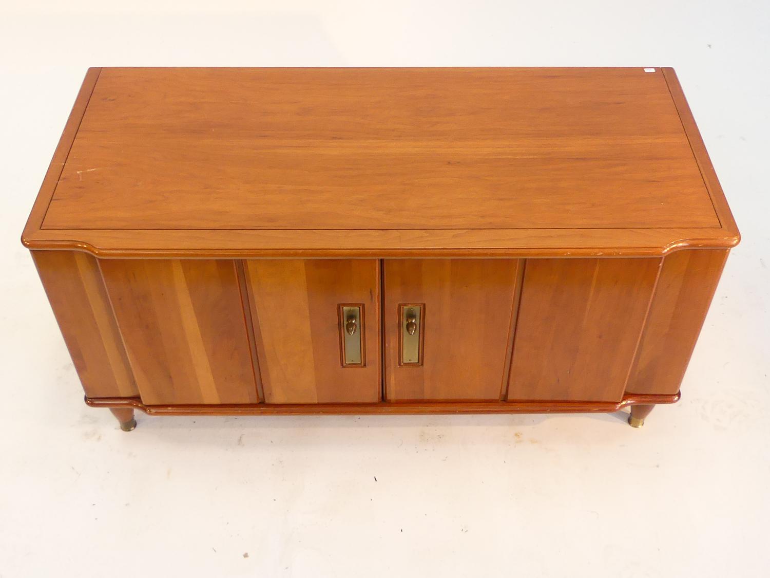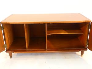 mid century maple record side cabinet with two doors, 18" x 38" x 17"