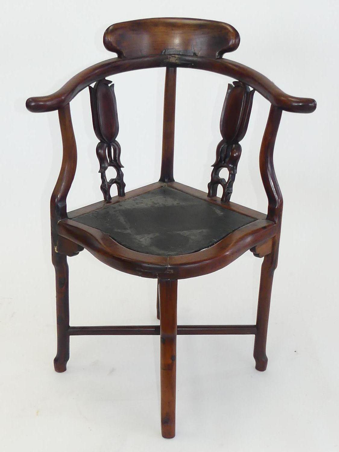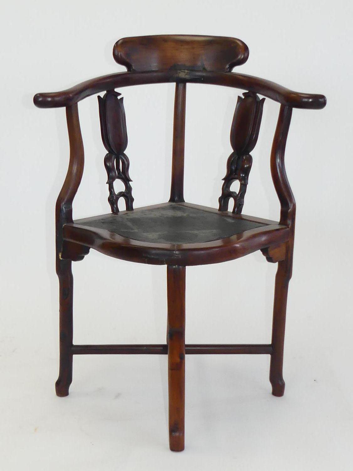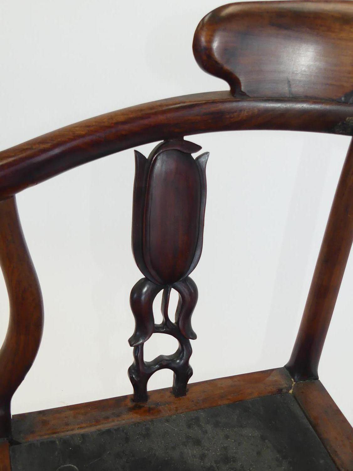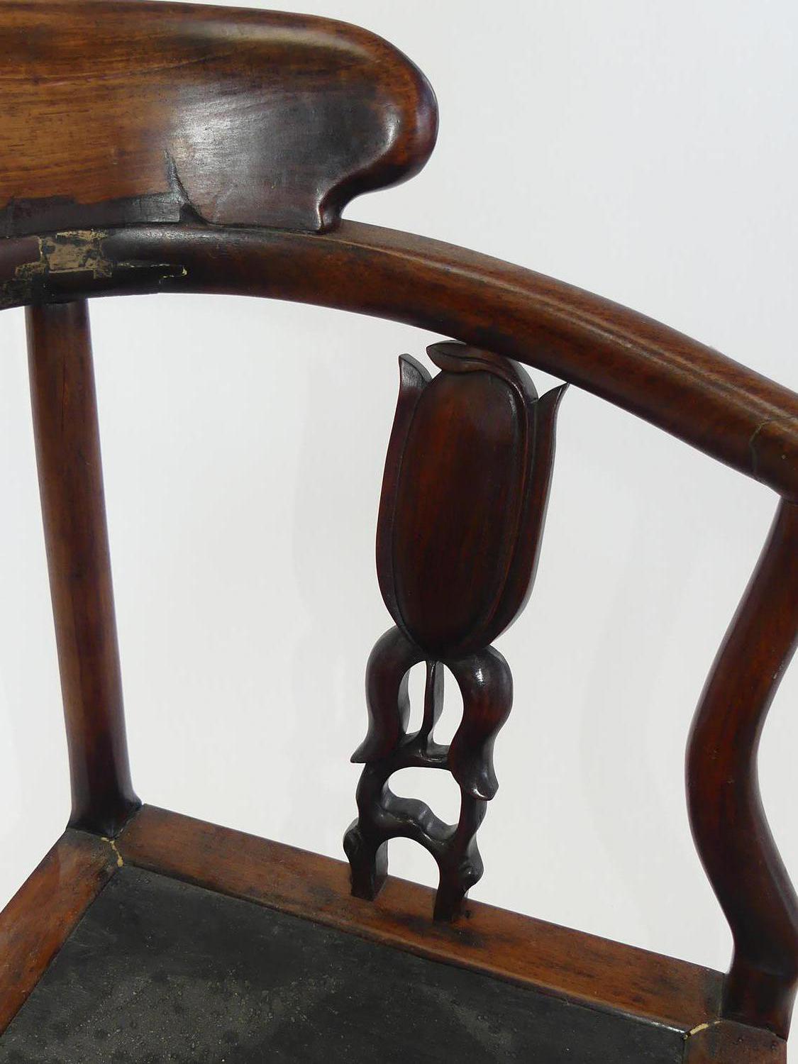 chinese hardwood corner chair, 19th century with restorations