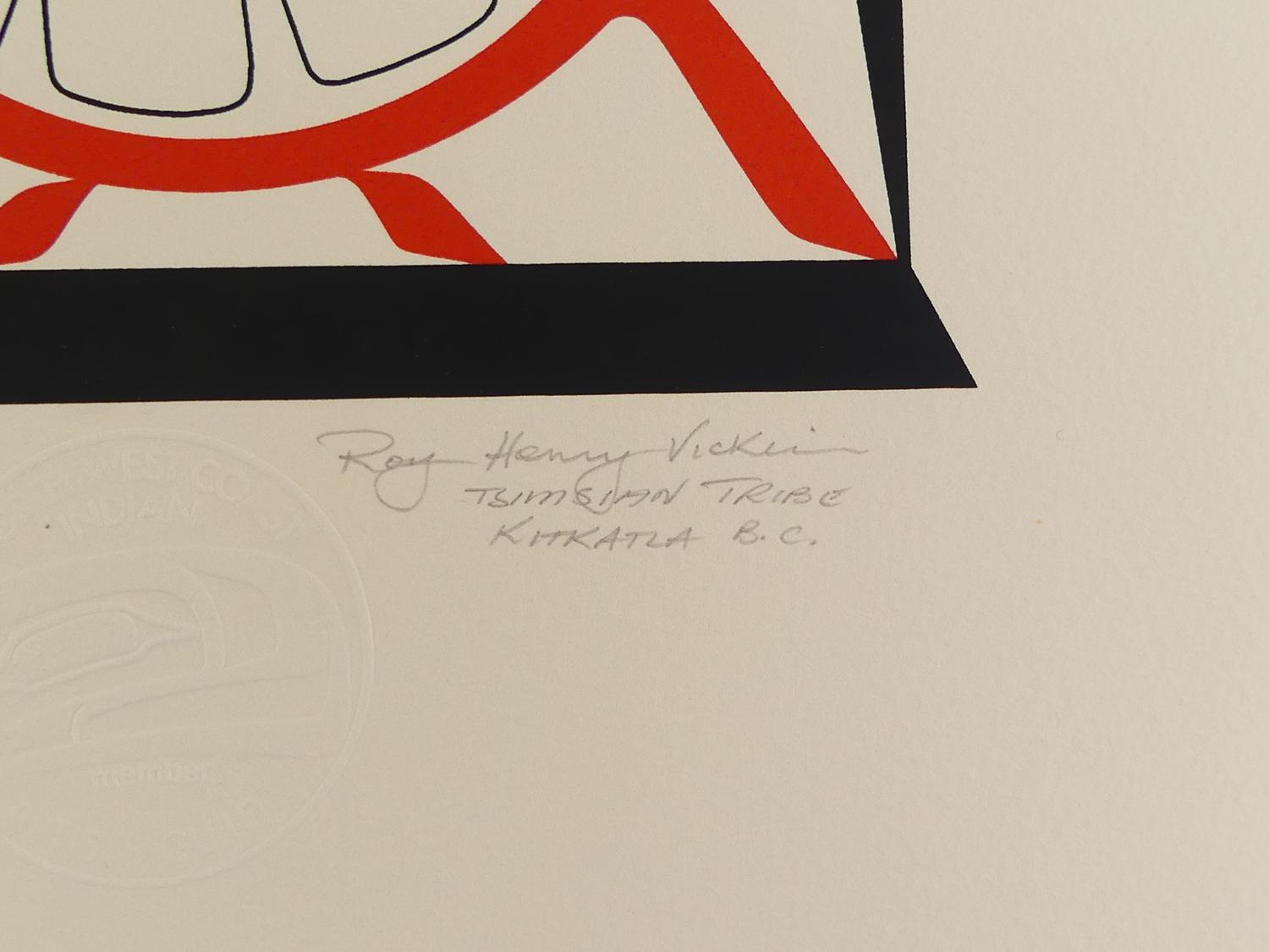 roy henry vickers (b.1946), silkscreen, 28/75, d.1977, 17" x 15", "the weget legend"