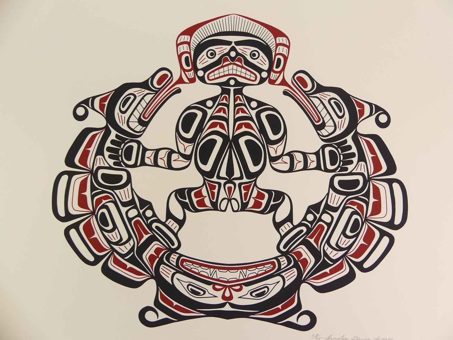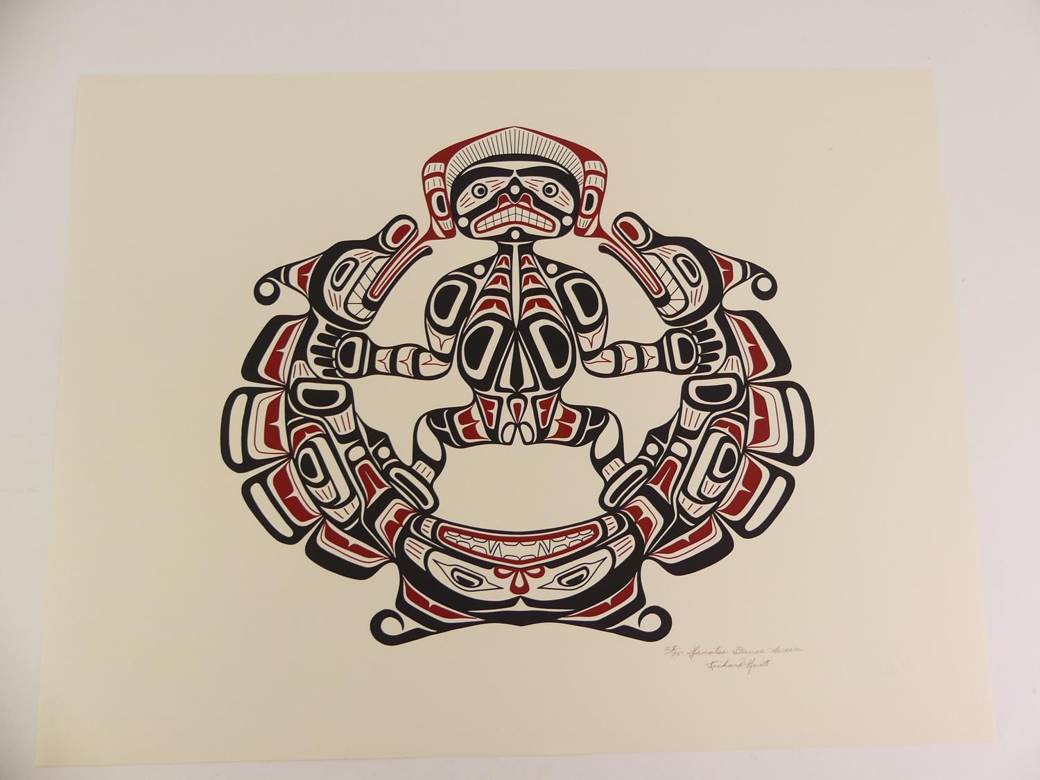 richard hunt (d.1951), silkscreen, 28/75, 19 1/4" x 25 1/4", "hamatsa dance screen"