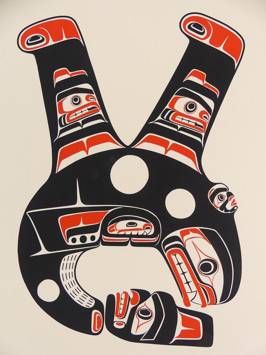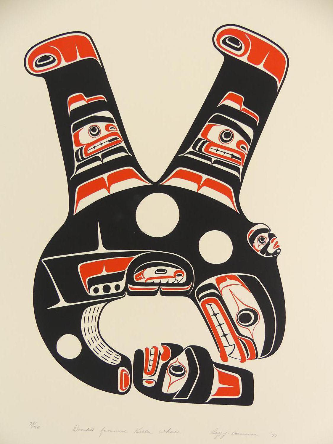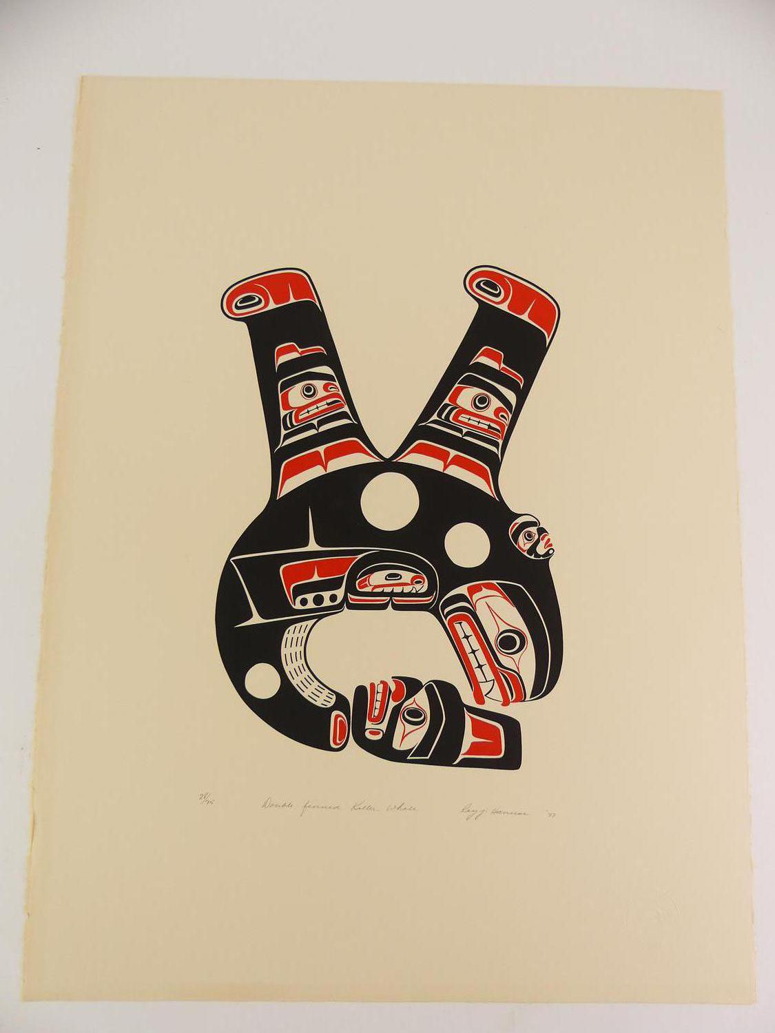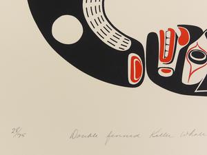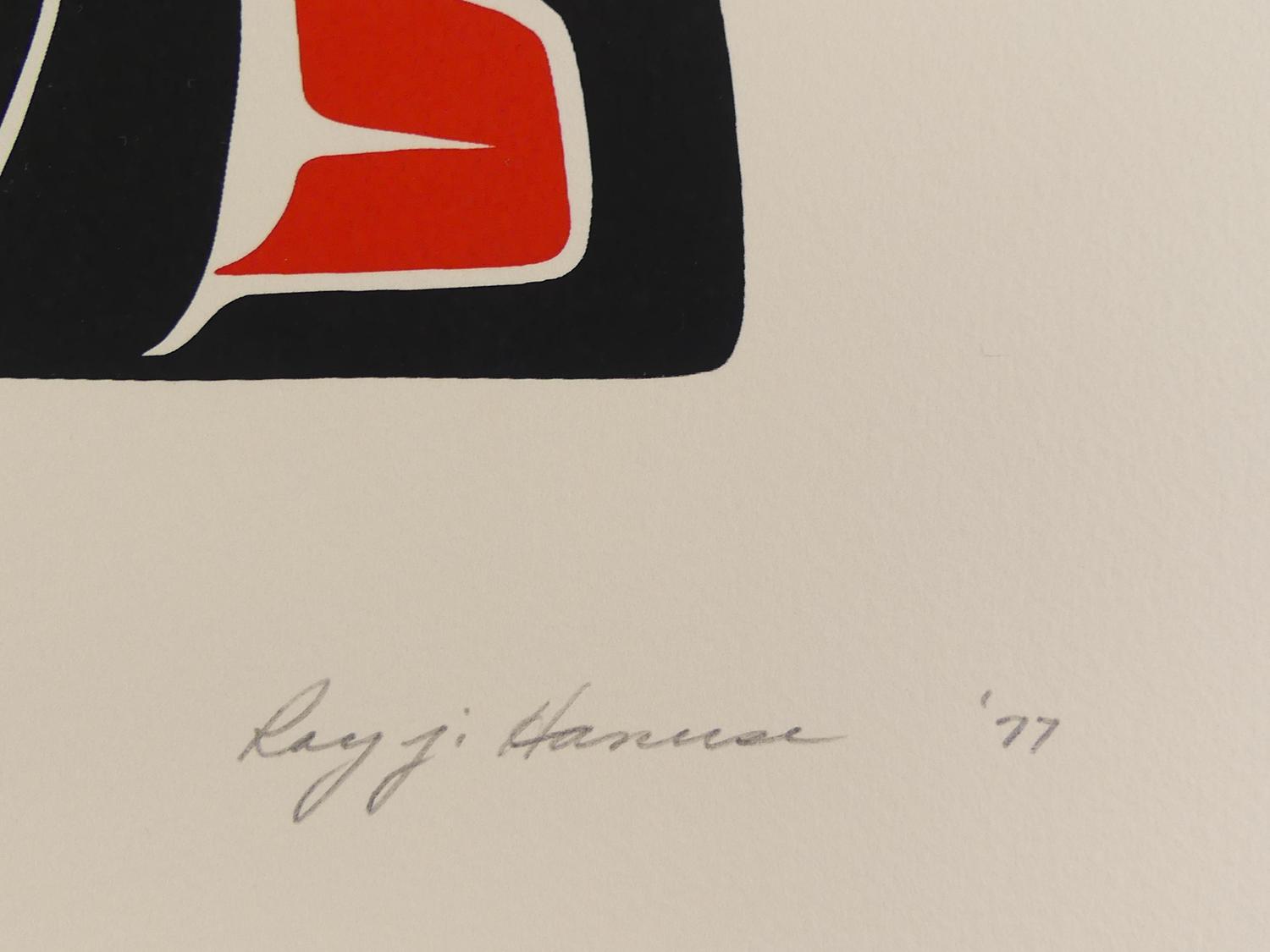 roy james hanuse (1943-2007), silkscreen, 28/75, d.1977, 30" x 22", "double finned killer whale"