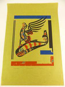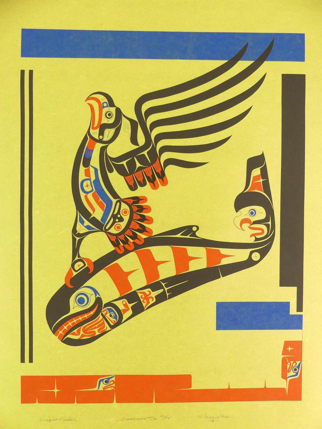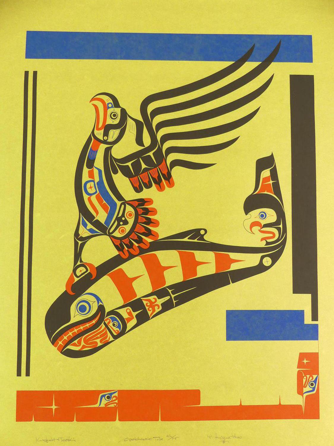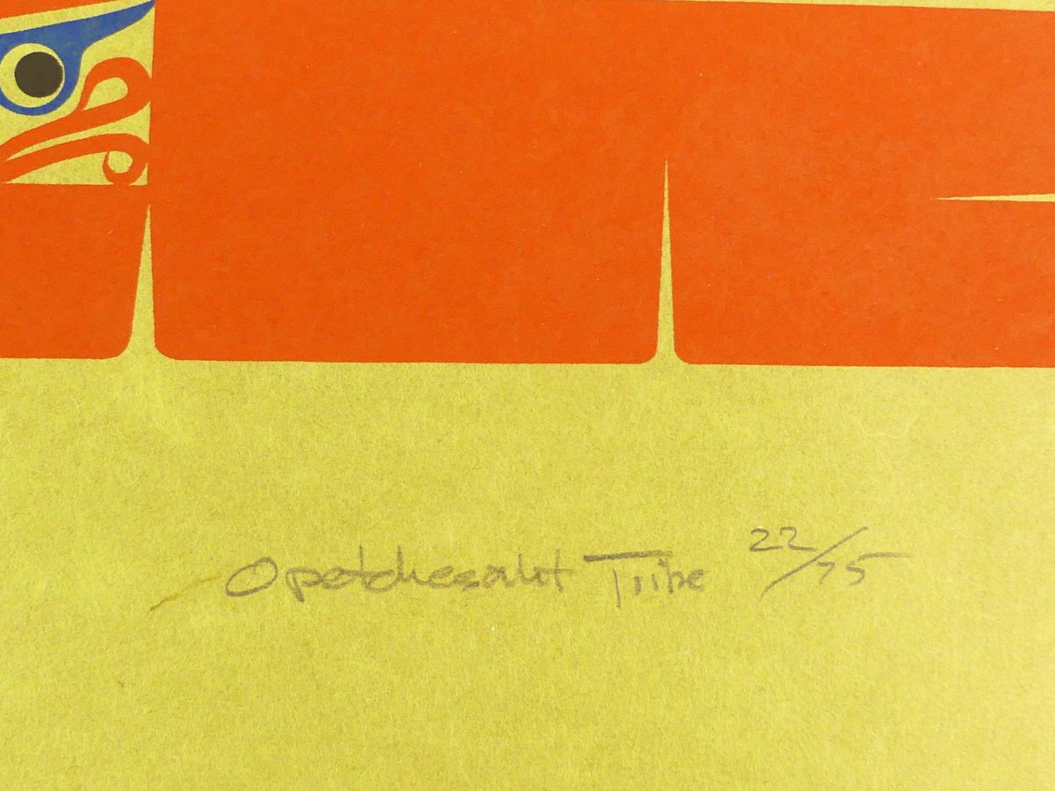 ron hamilton, hupacasath (b.1948), silkscreen, 22/75, c.1977, 36" x 24 1/2", "kwatyaht's gift to teetskin"