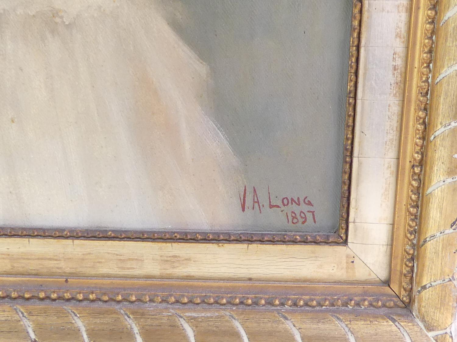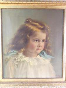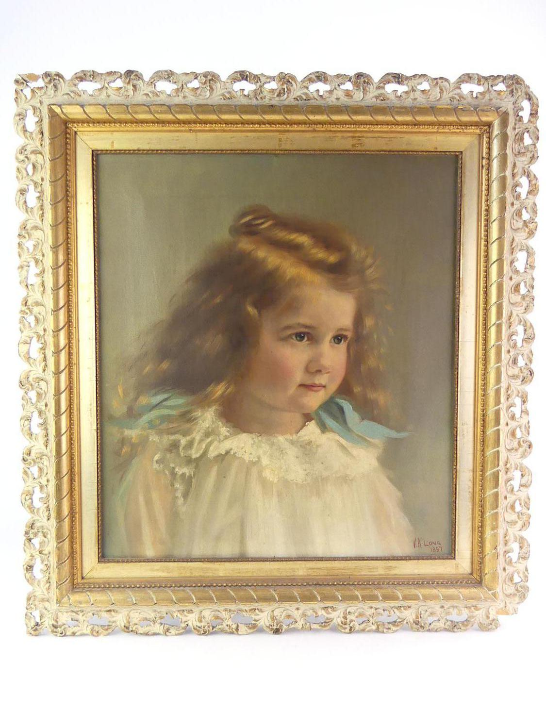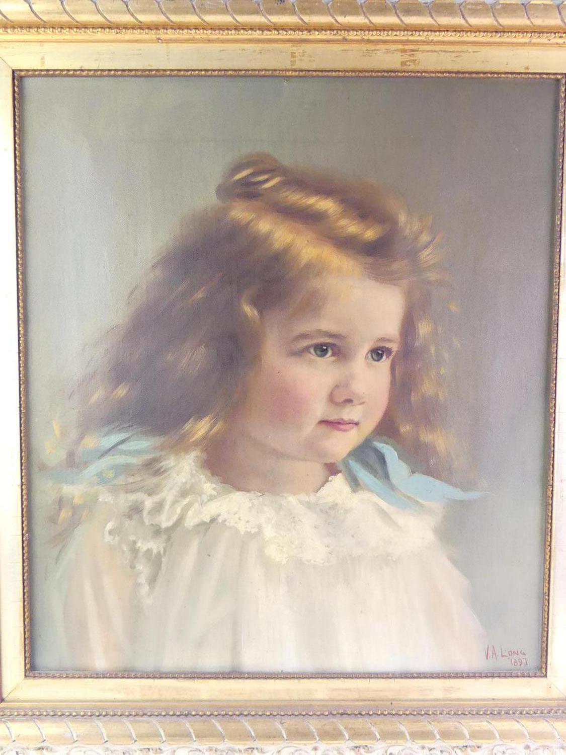 victor albert long (1866-1938), oil on canvas, 18" x 18", "portrait of young elizabeth jones of rockland, victoria, bc"