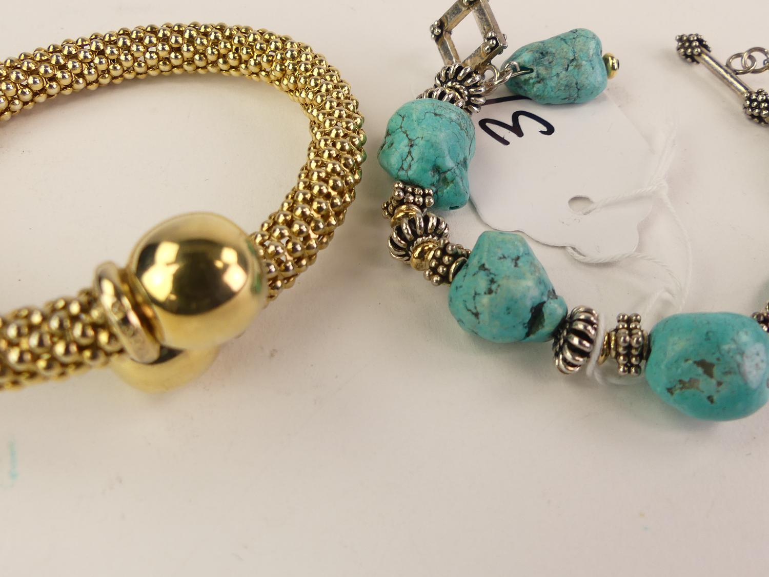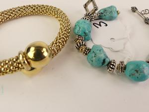 silver vermeil wrap bracelet, with faux turquoise howlite bracelet