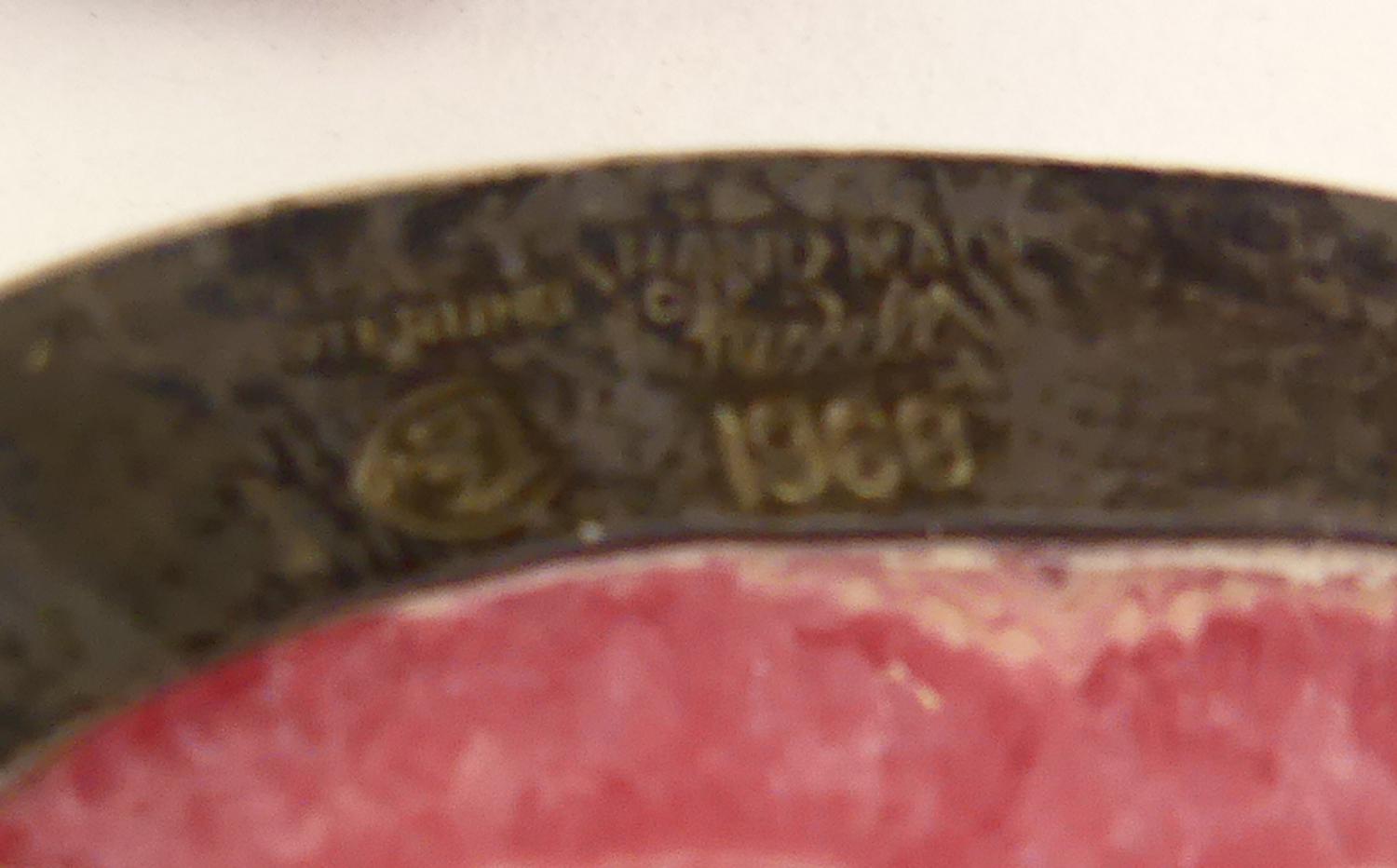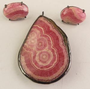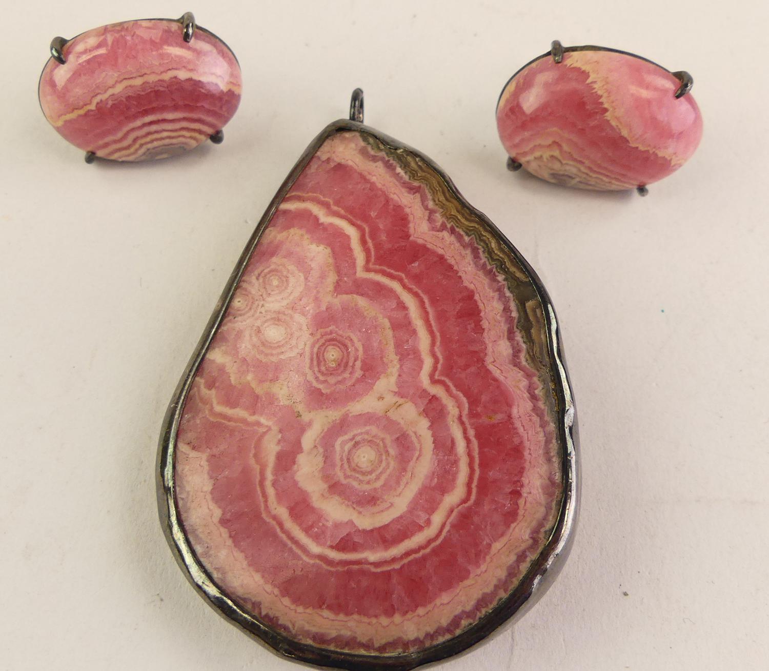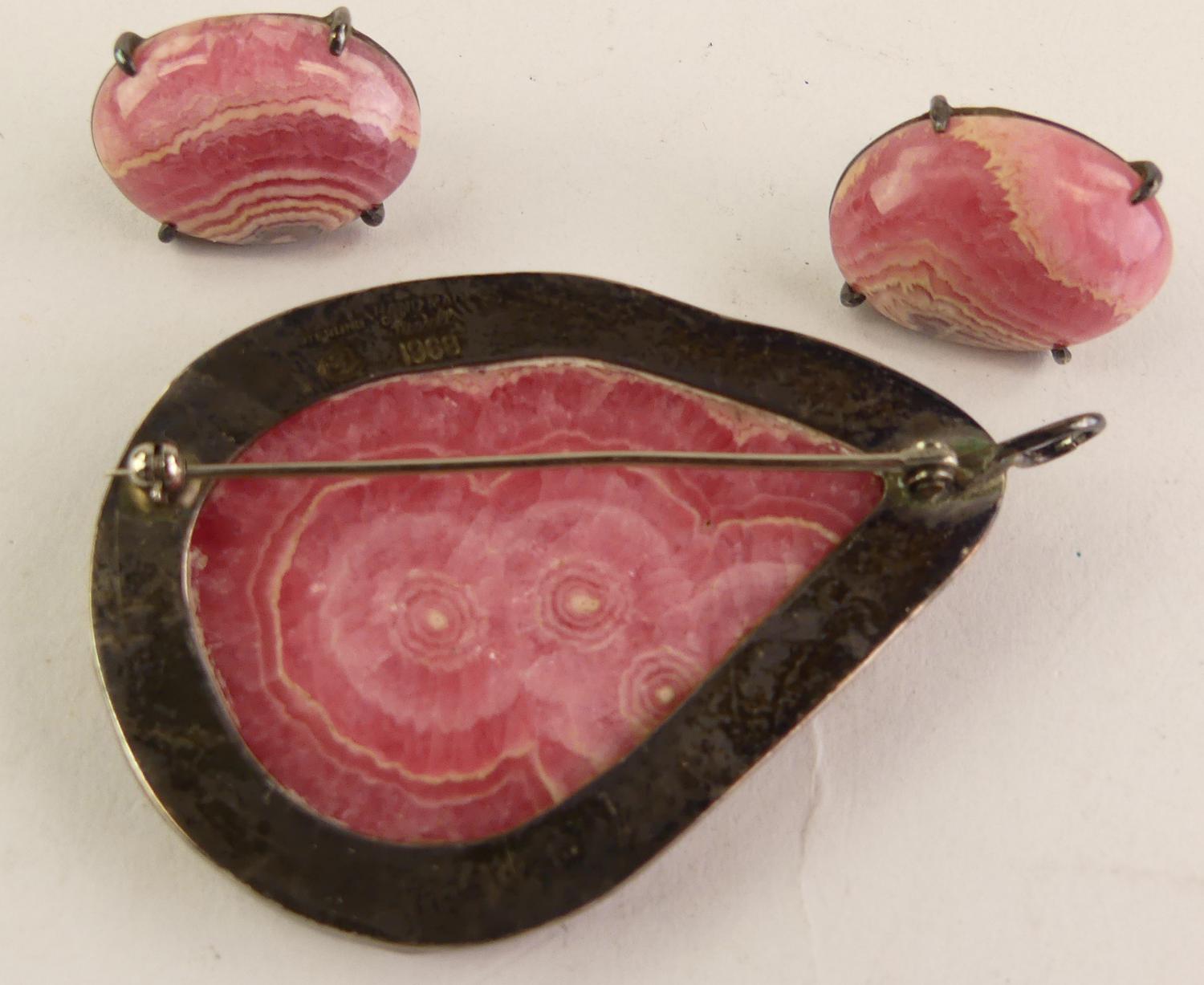 rhodochrosite signed sterling artist 1968 brooch pendant earrings