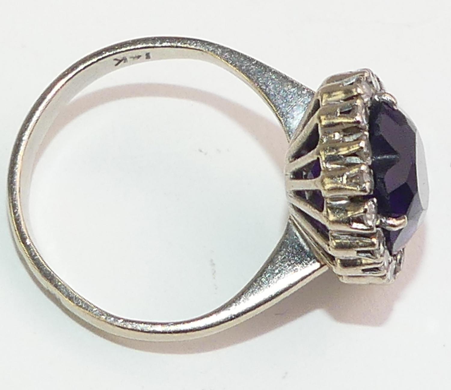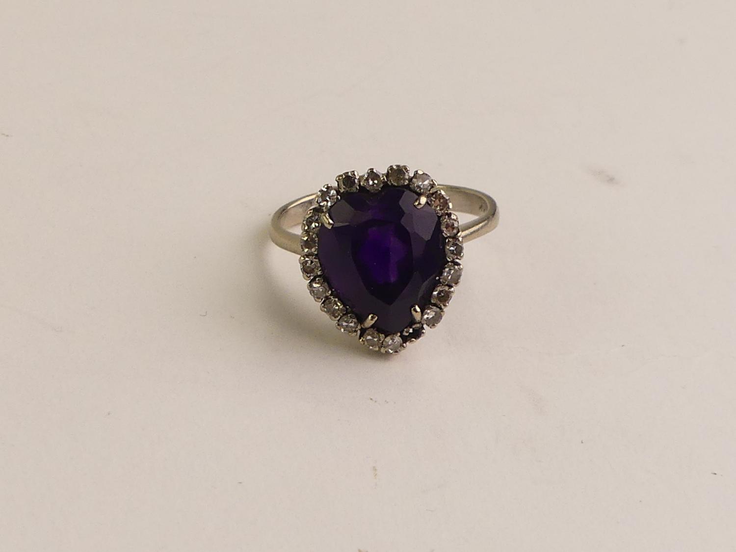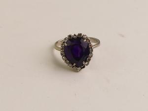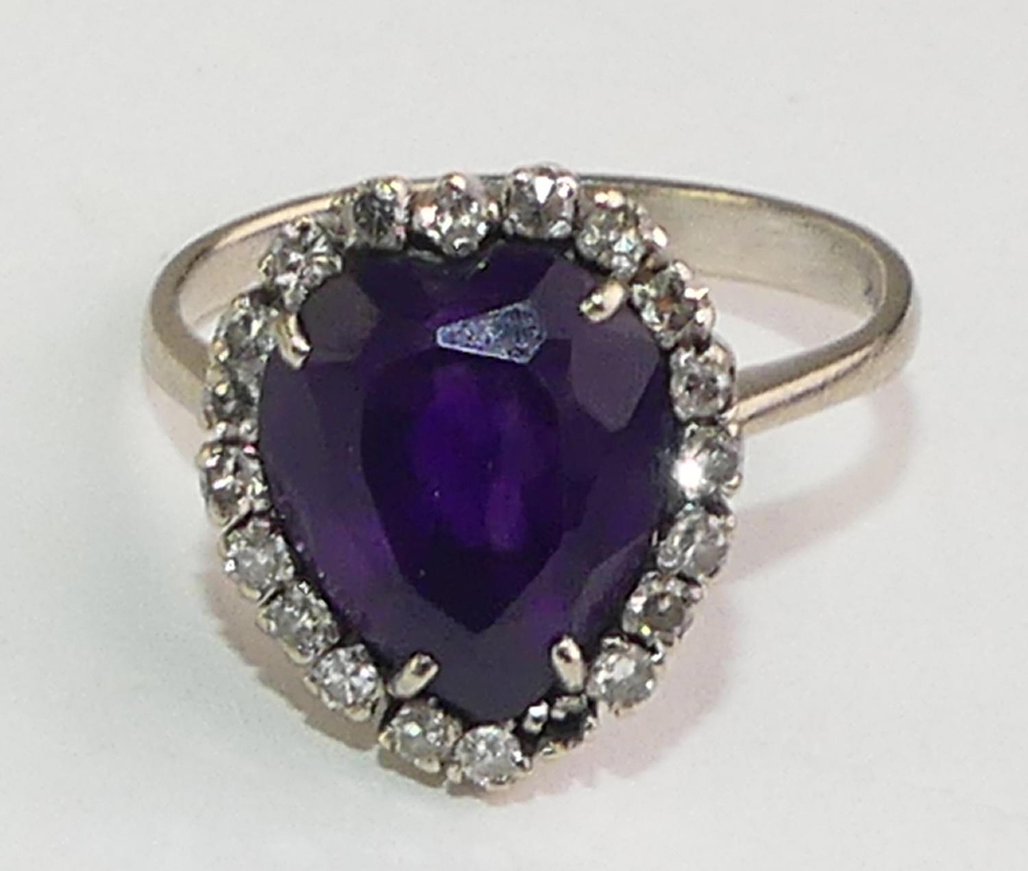 14k white gold diamond amethyst heart ring, size 5, missing stone