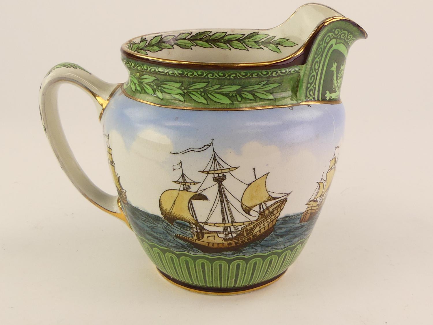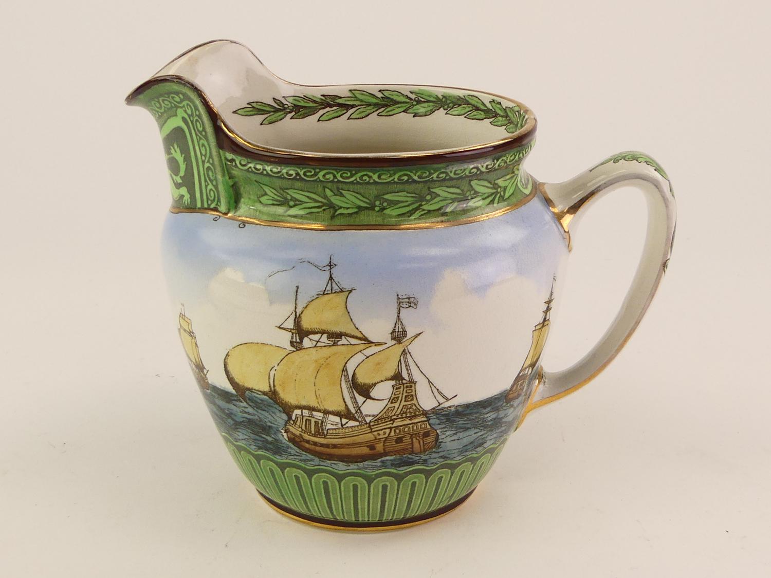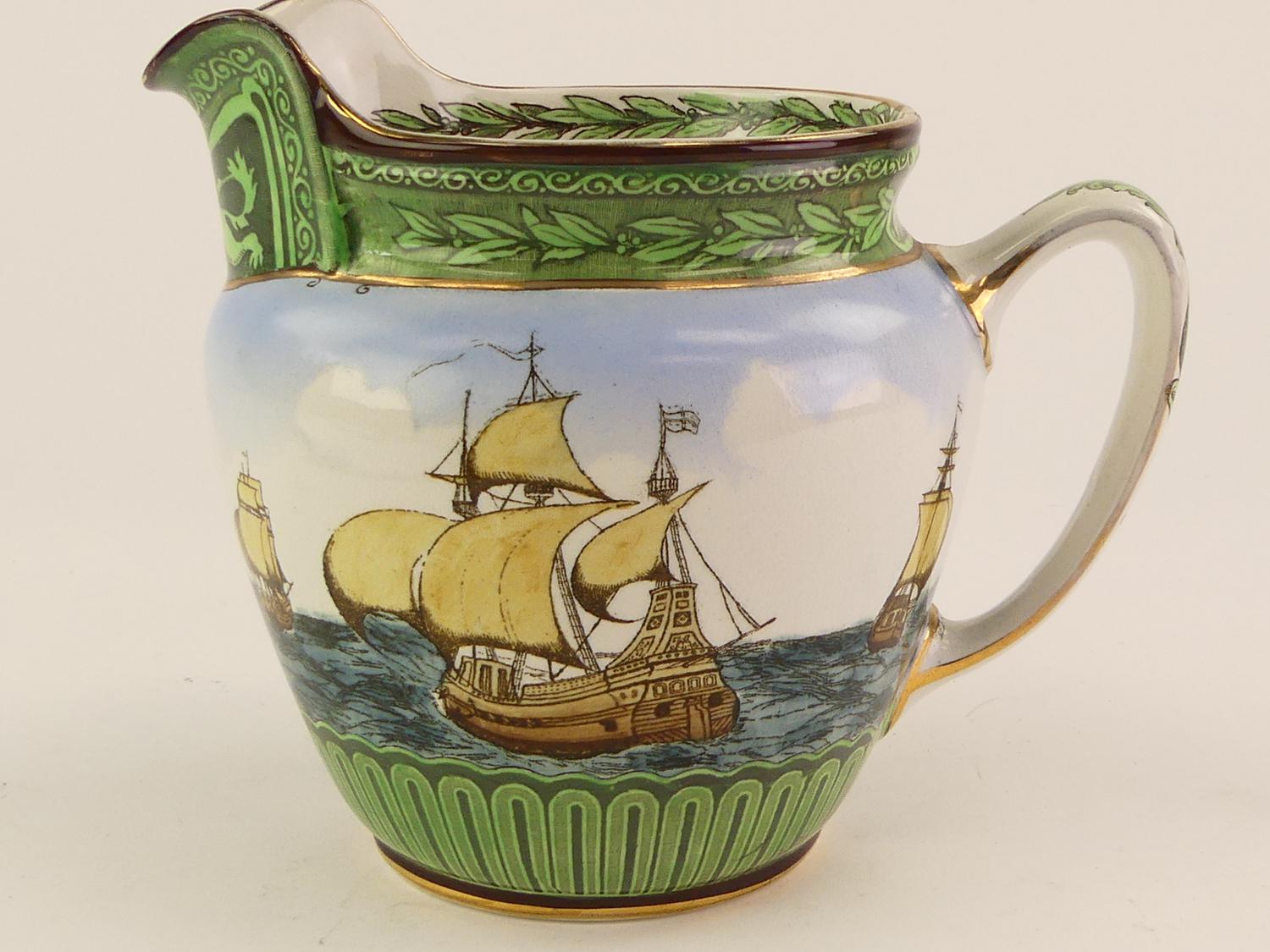 royal doulton galleon seriesware pitcher, early 20th century, 7" x 8 1/2" x 6 1/2"