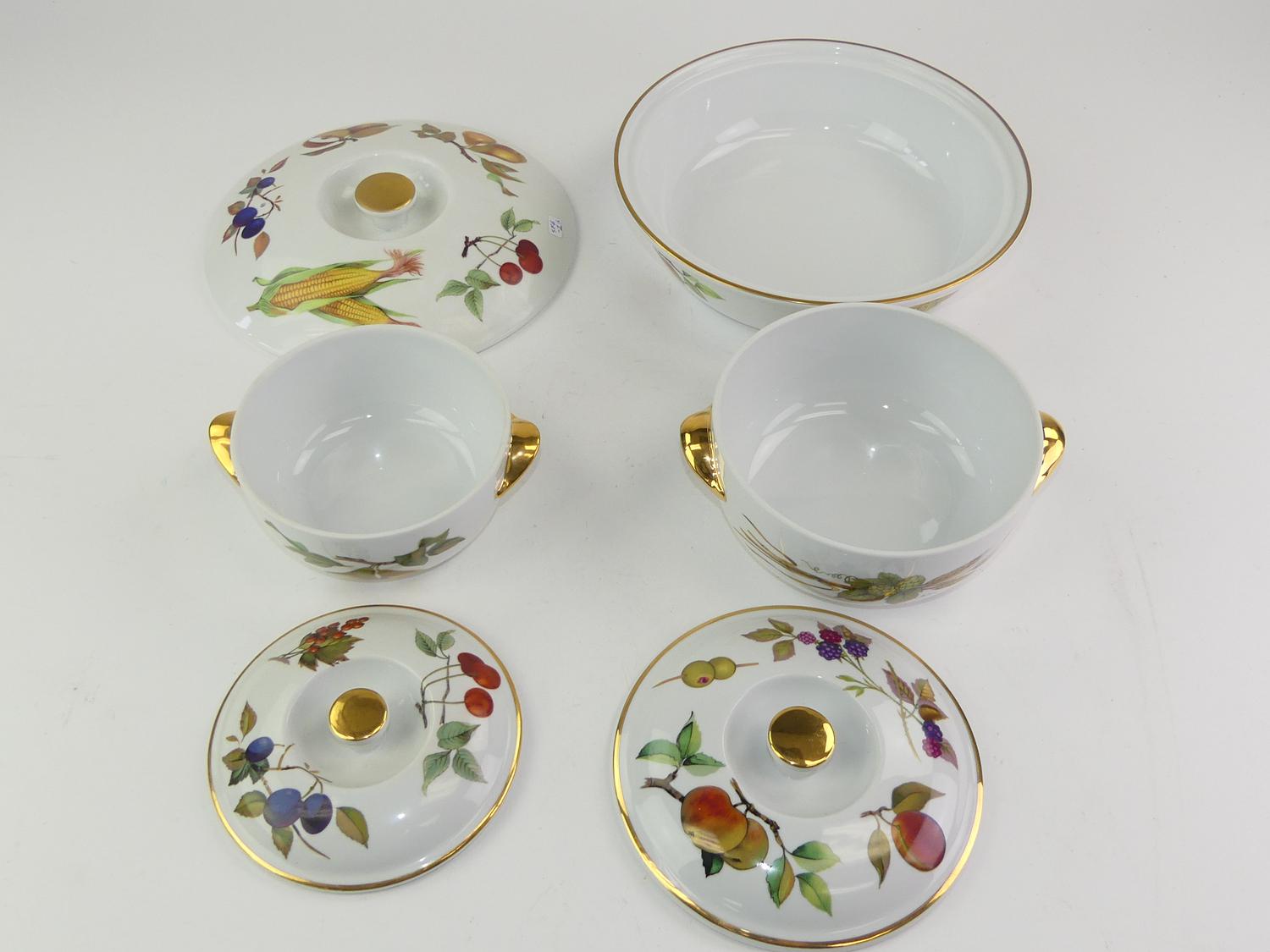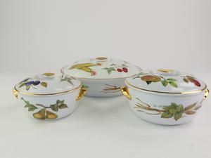 three royal worcester evesham pattern porcelain covered dishes, 10", 6 1/2" and 5 1/2" in diameter