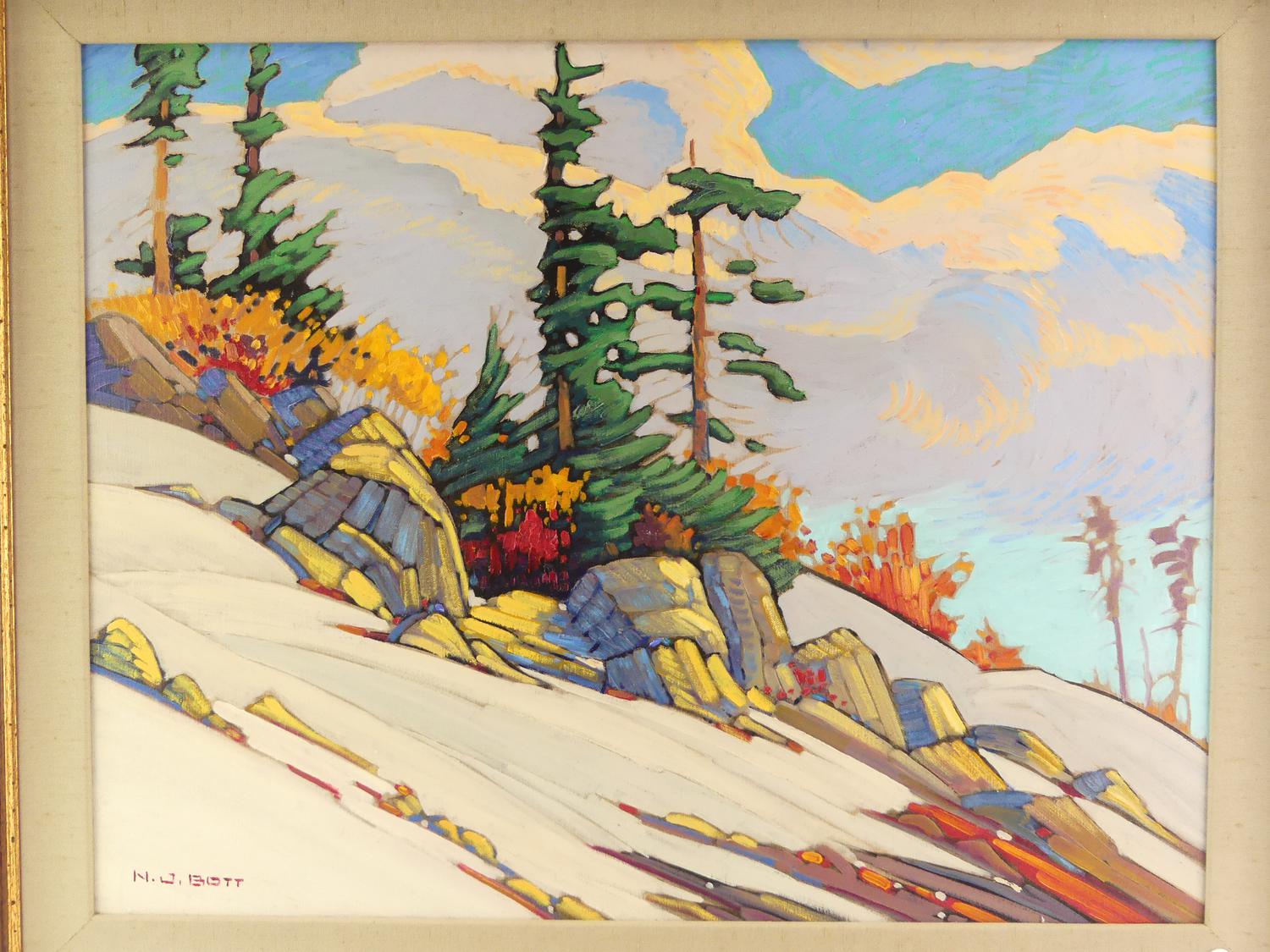 nicolas johannes bott (1941- 2021), o/c, 22" x 28", "timberline"