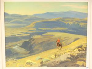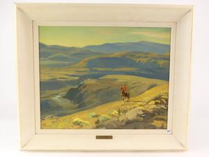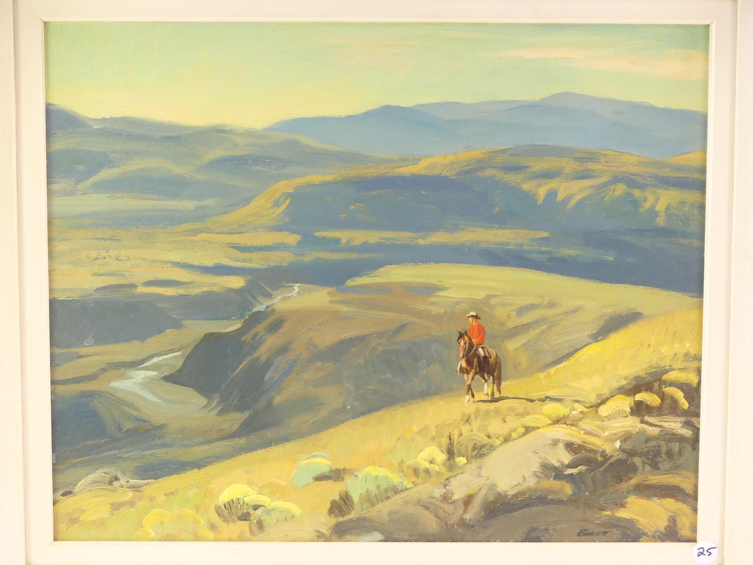 peter maxwell ewart (1918-2001), oil on board, 16" x 20", "early morning above the bonaparte river"