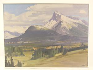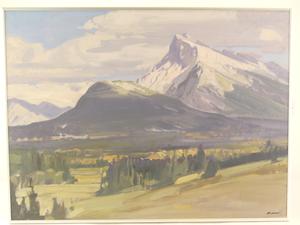 peter maxwell ewart (1918-2001), oil on board, 18" x 24", "mount rundle"