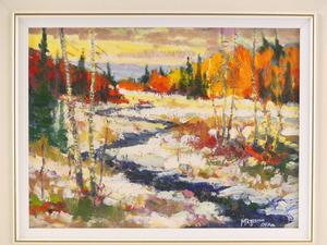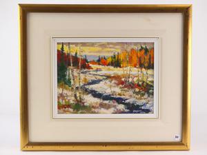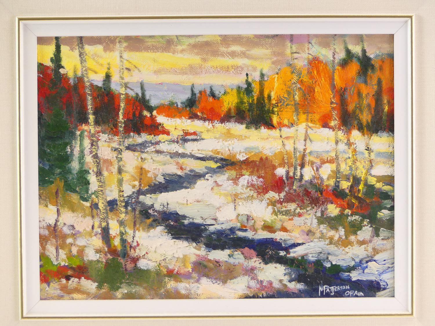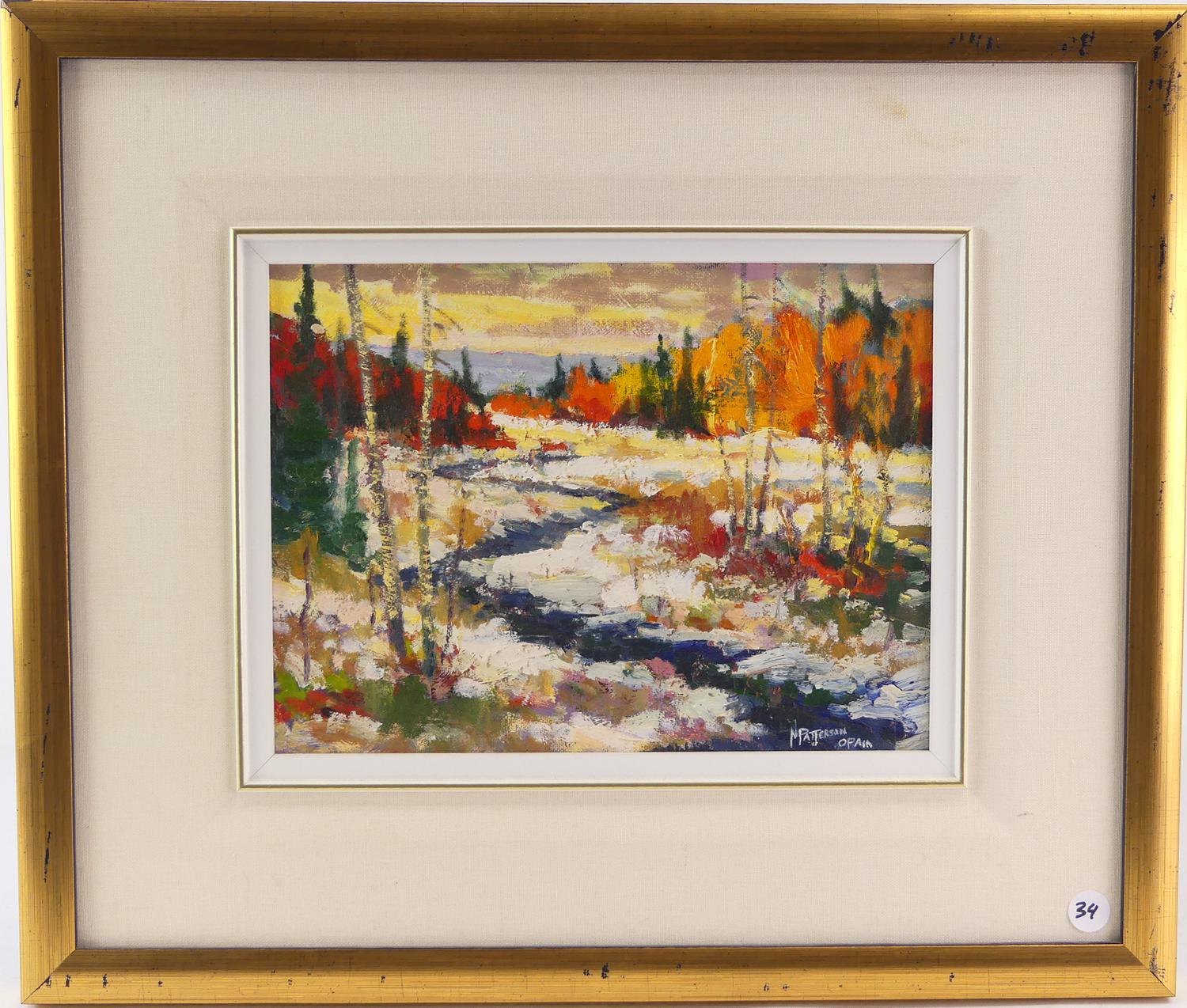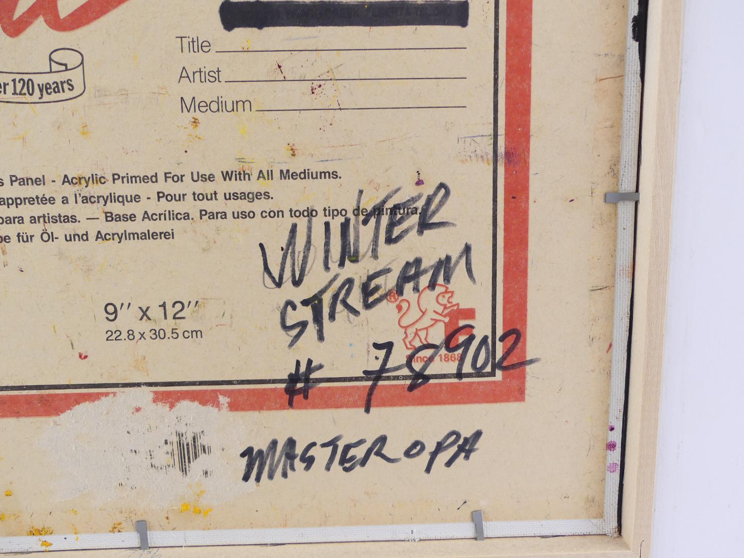 neil patterson (b.1947), oil on board, d.2003, 9" x 12", "winter stream" #78902