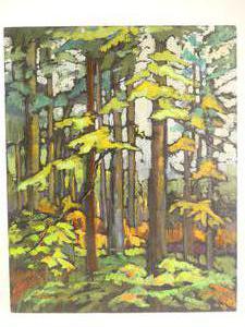 francis harris (1913-2017), d.1974, oil on board, 20" x 16", "rain forrest"