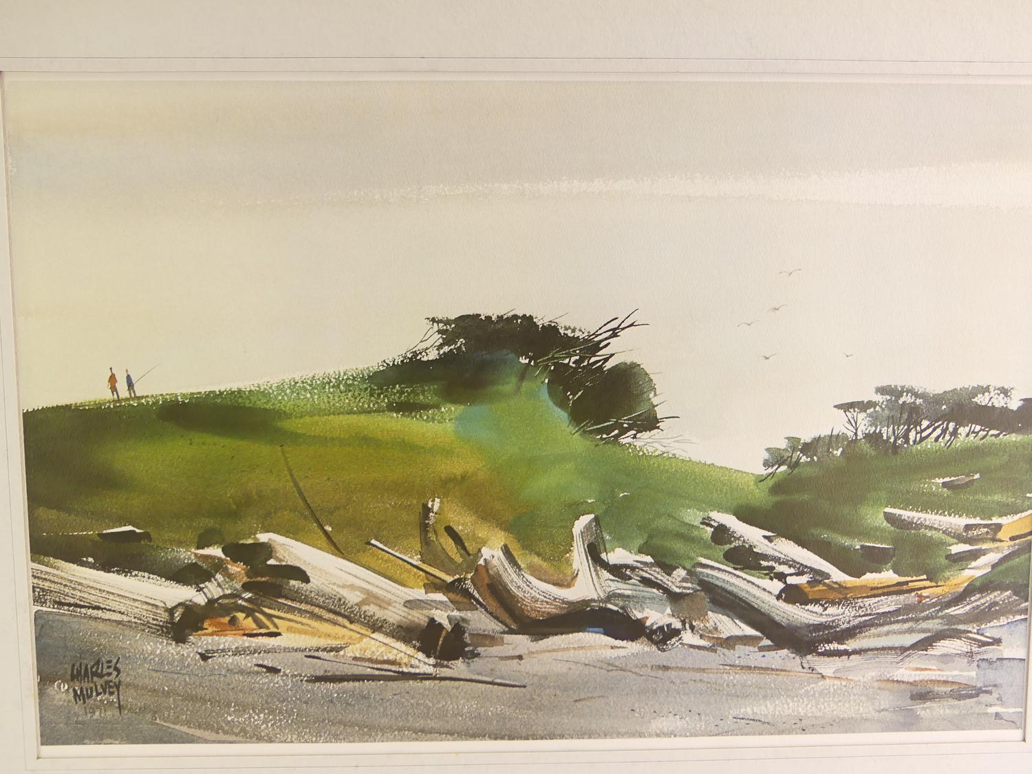 charles mulvey (american 1918-2002), d.1971, watercolour on paper, 14" x 21", "untitled - beach landscape"