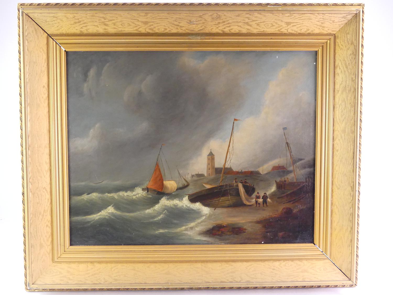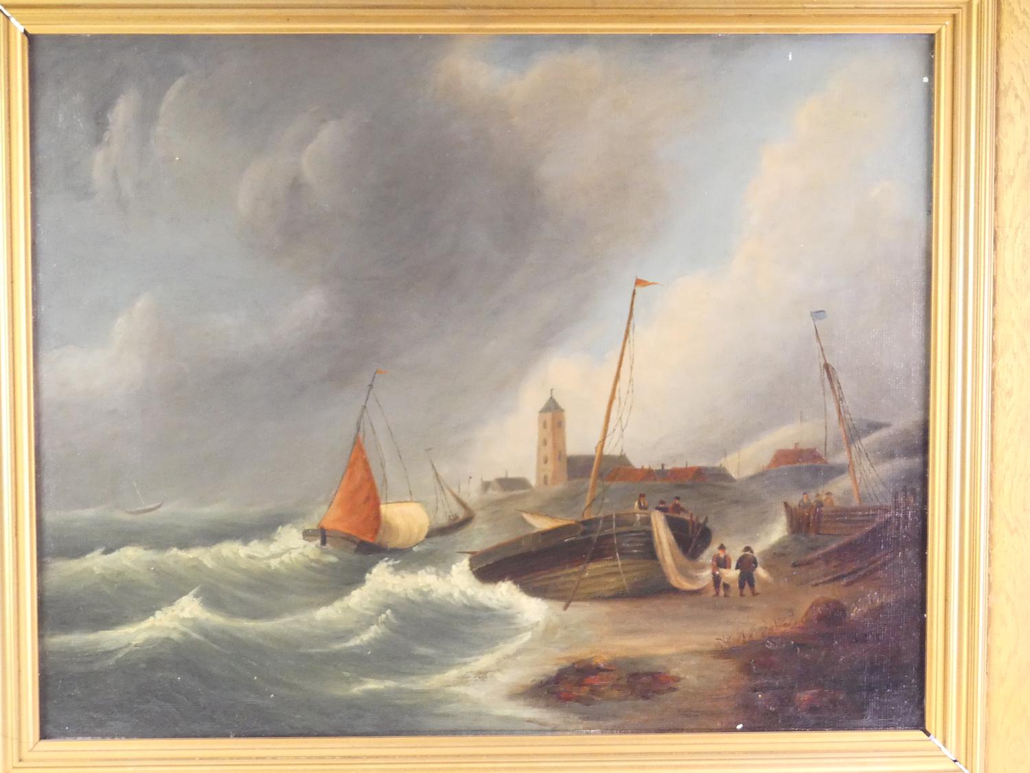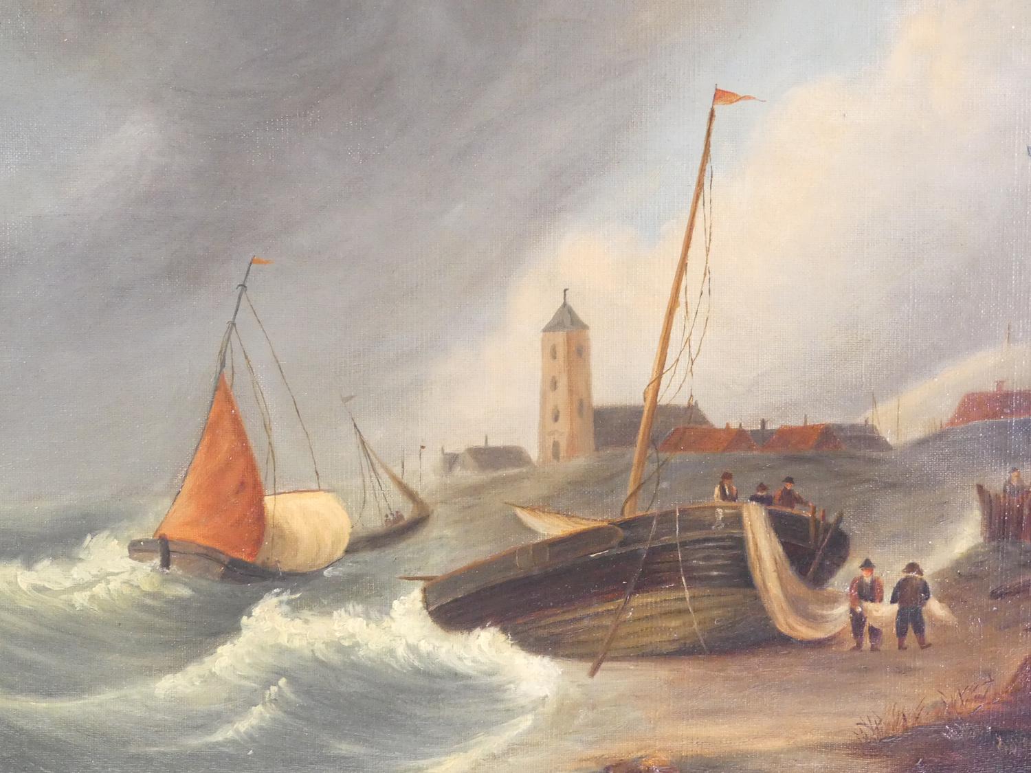 19th century continental school oil on canvas, 18" x 21", "storm at high tide"
