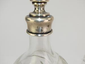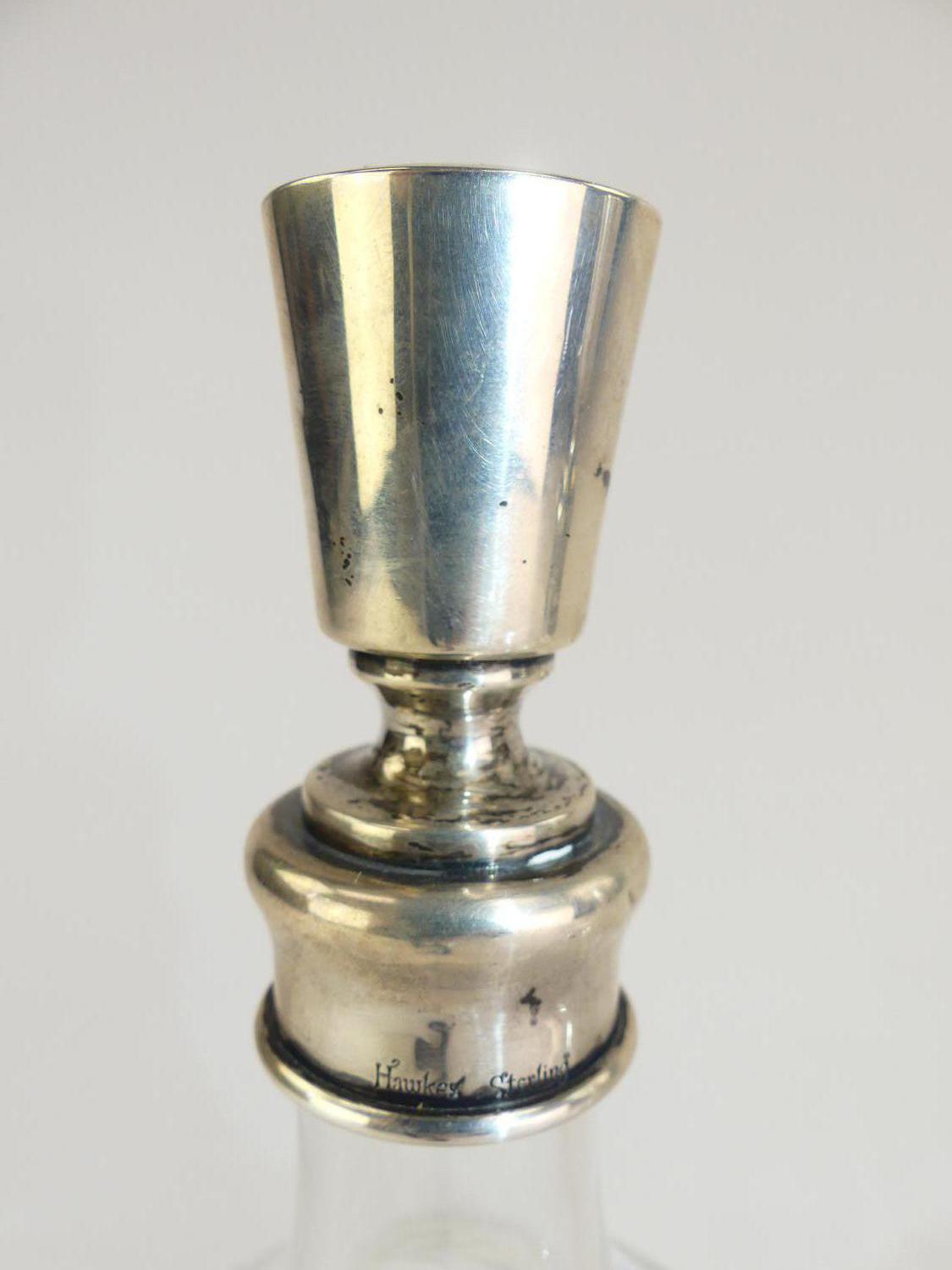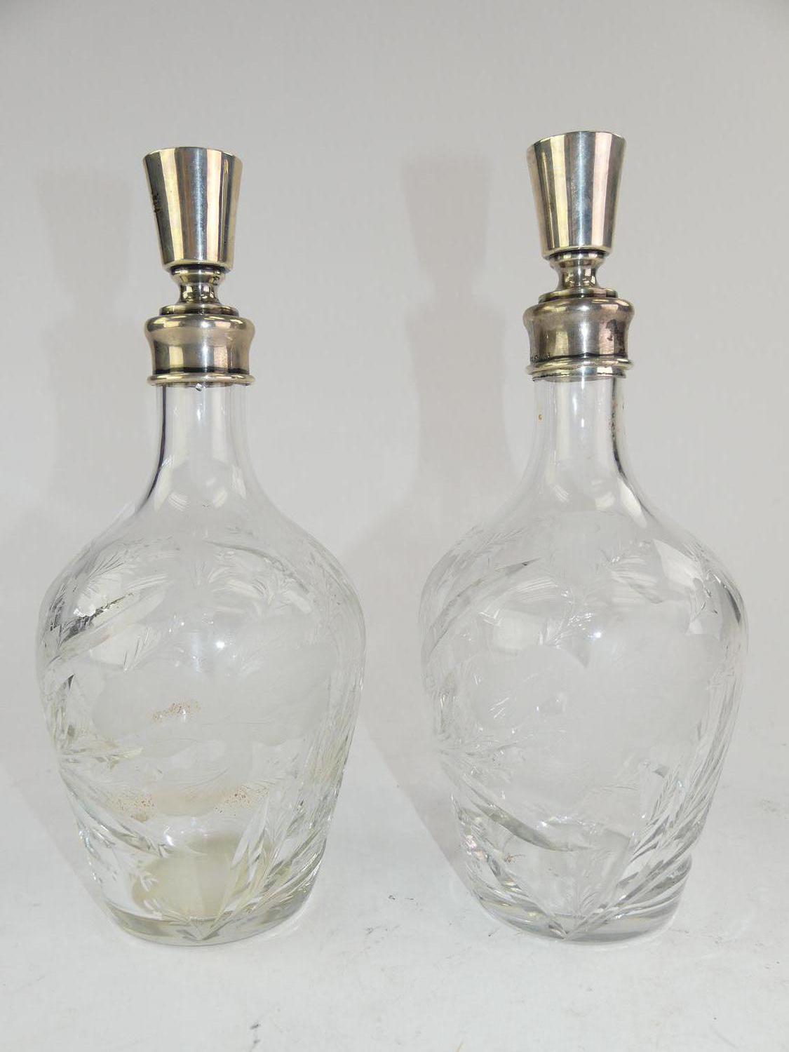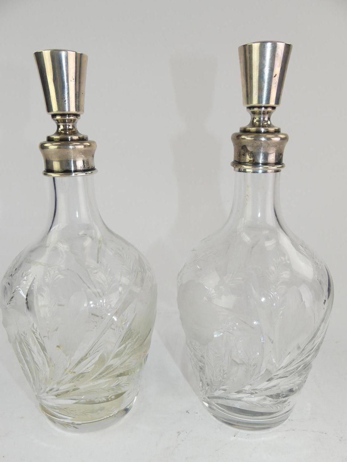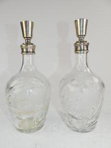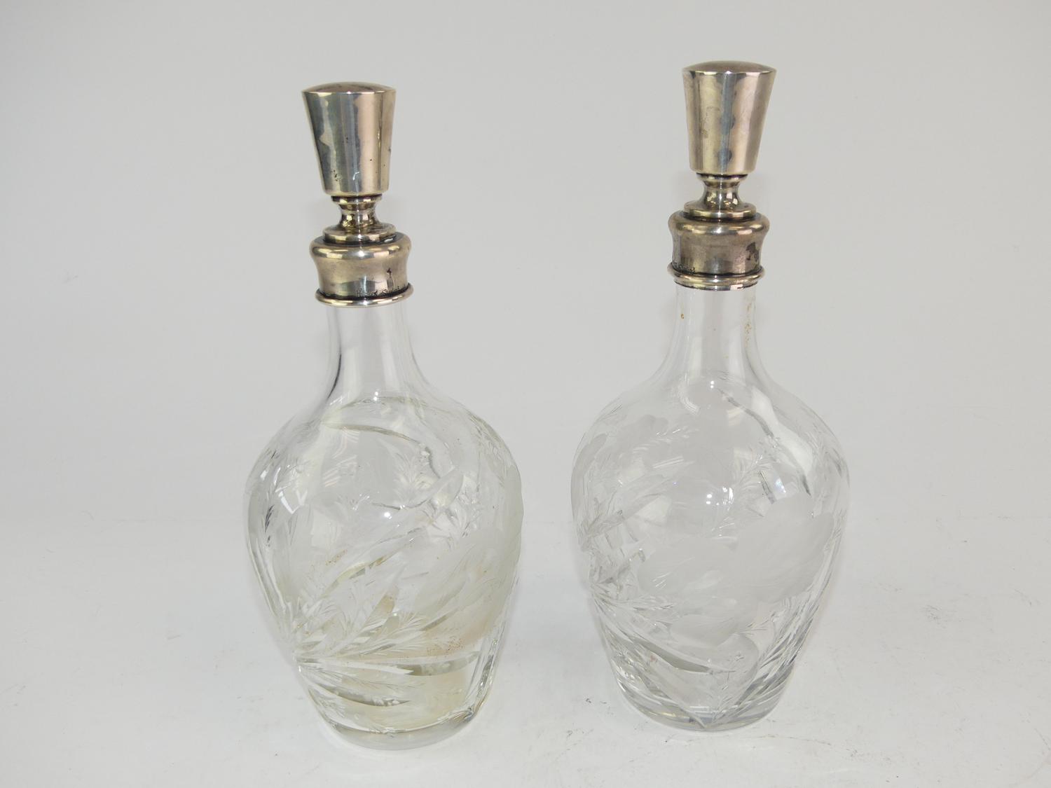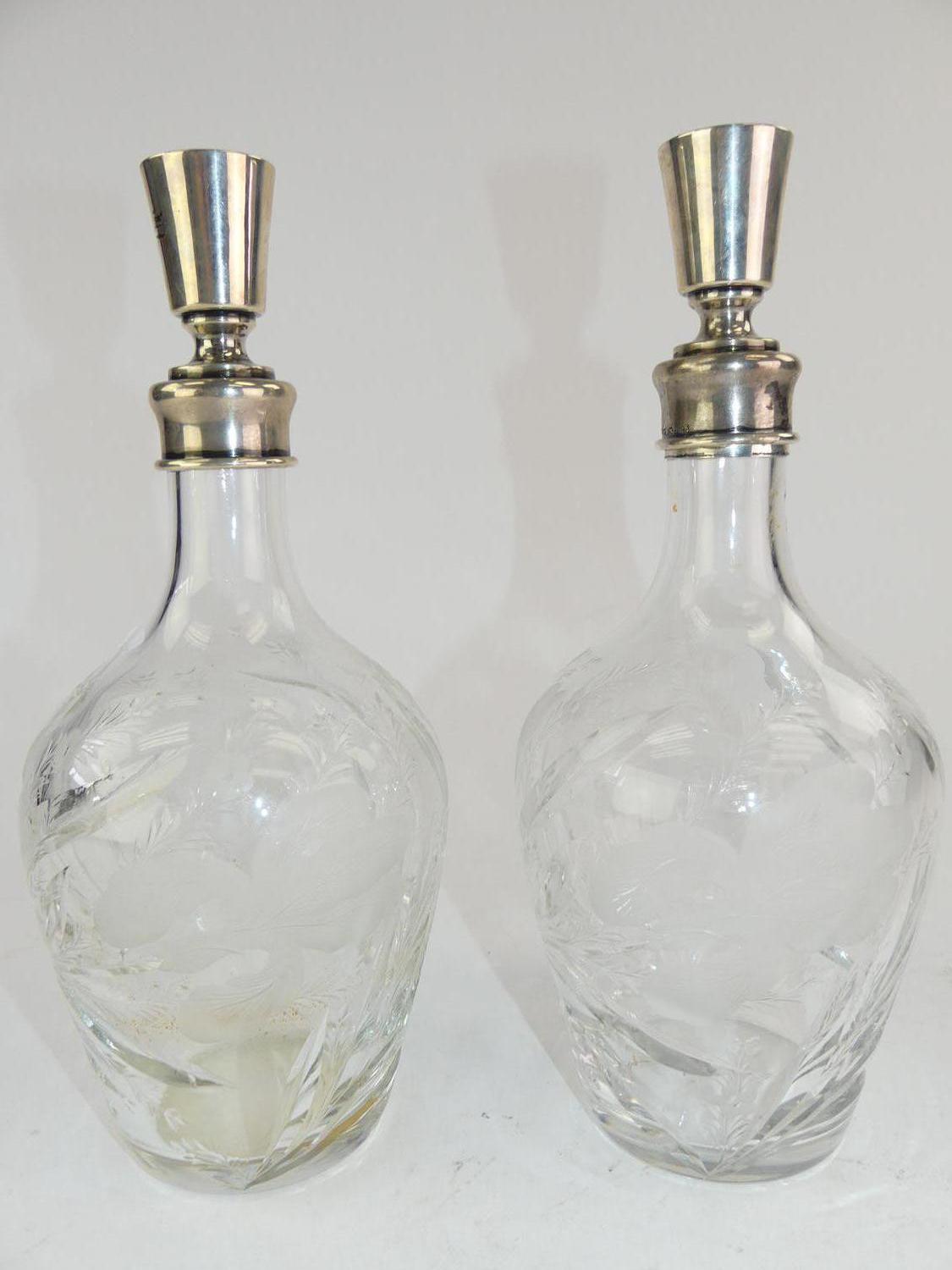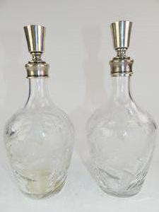 pair of hawkes cut crystal decanters with sterling tops and stoppers, ht. 11 1/4"