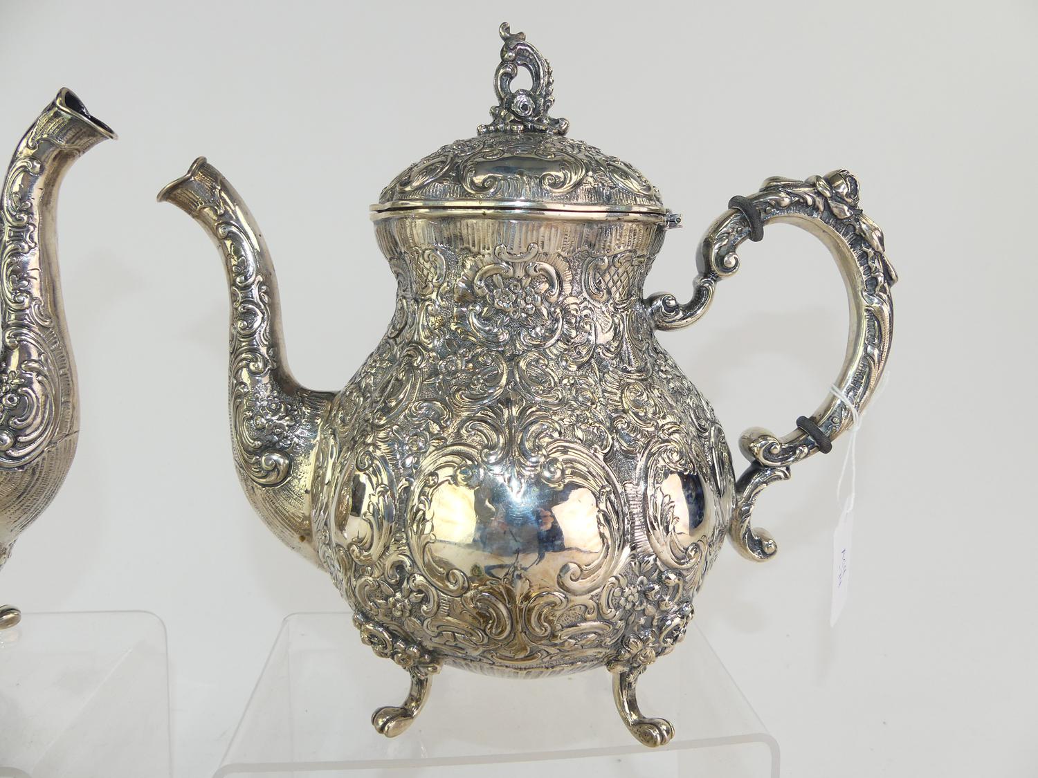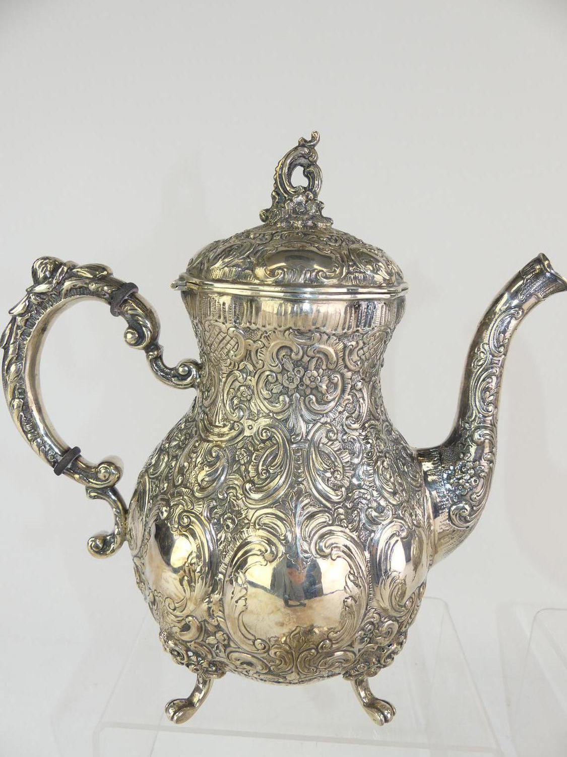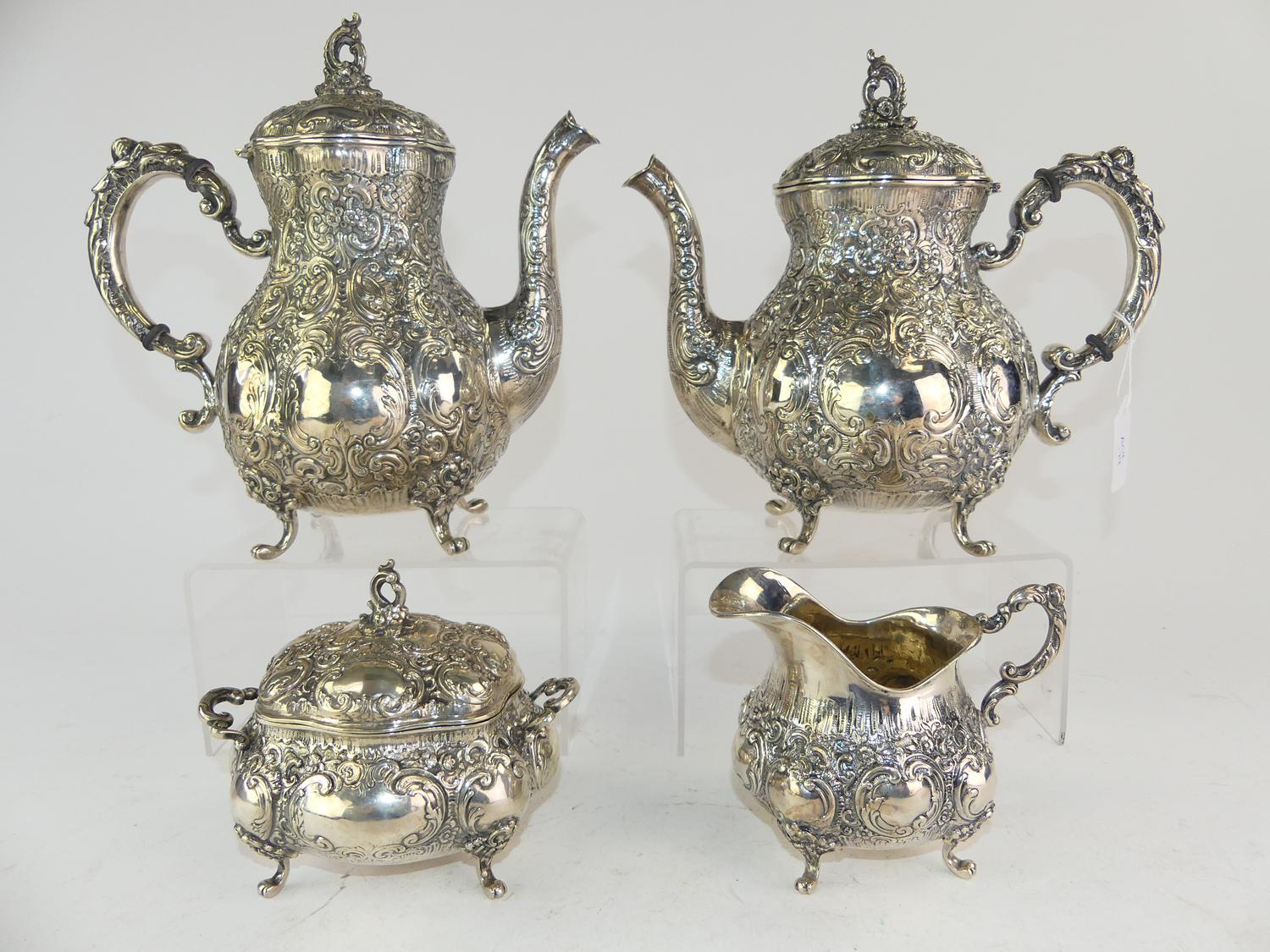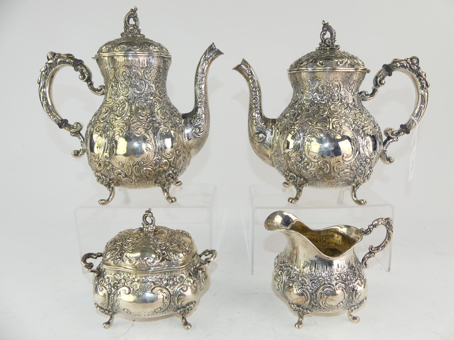 german .800 silver four piece tea and coffee service, early 20th century, 2503 grams