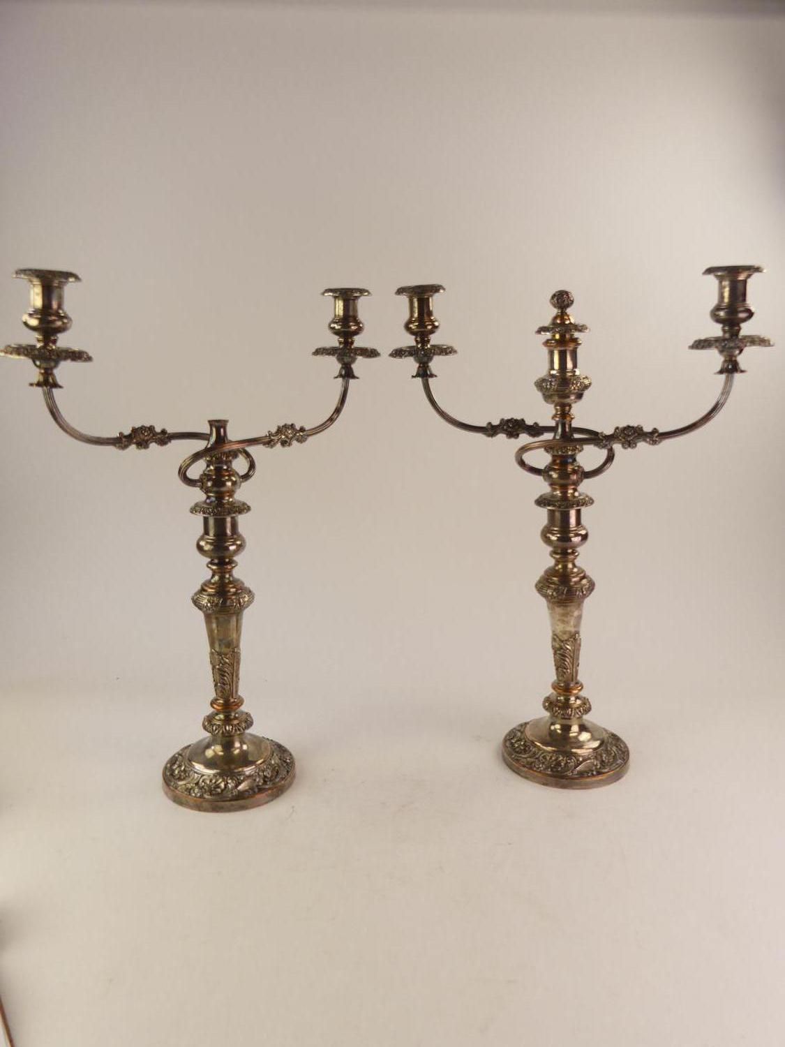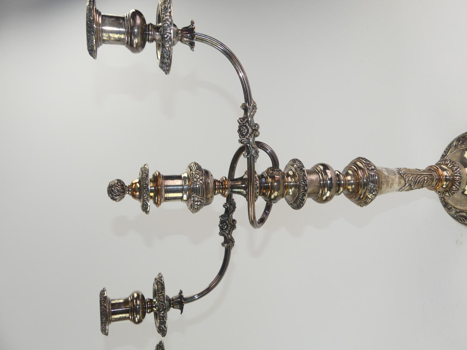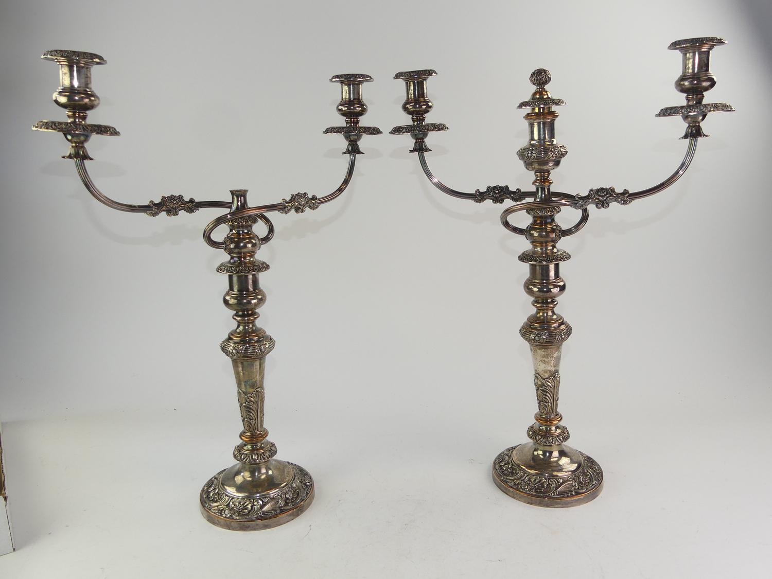pair of large sheffield silver plated candelabra, ht 23"
