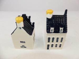 pair of klm blue delft houses, ht 3 1/2"