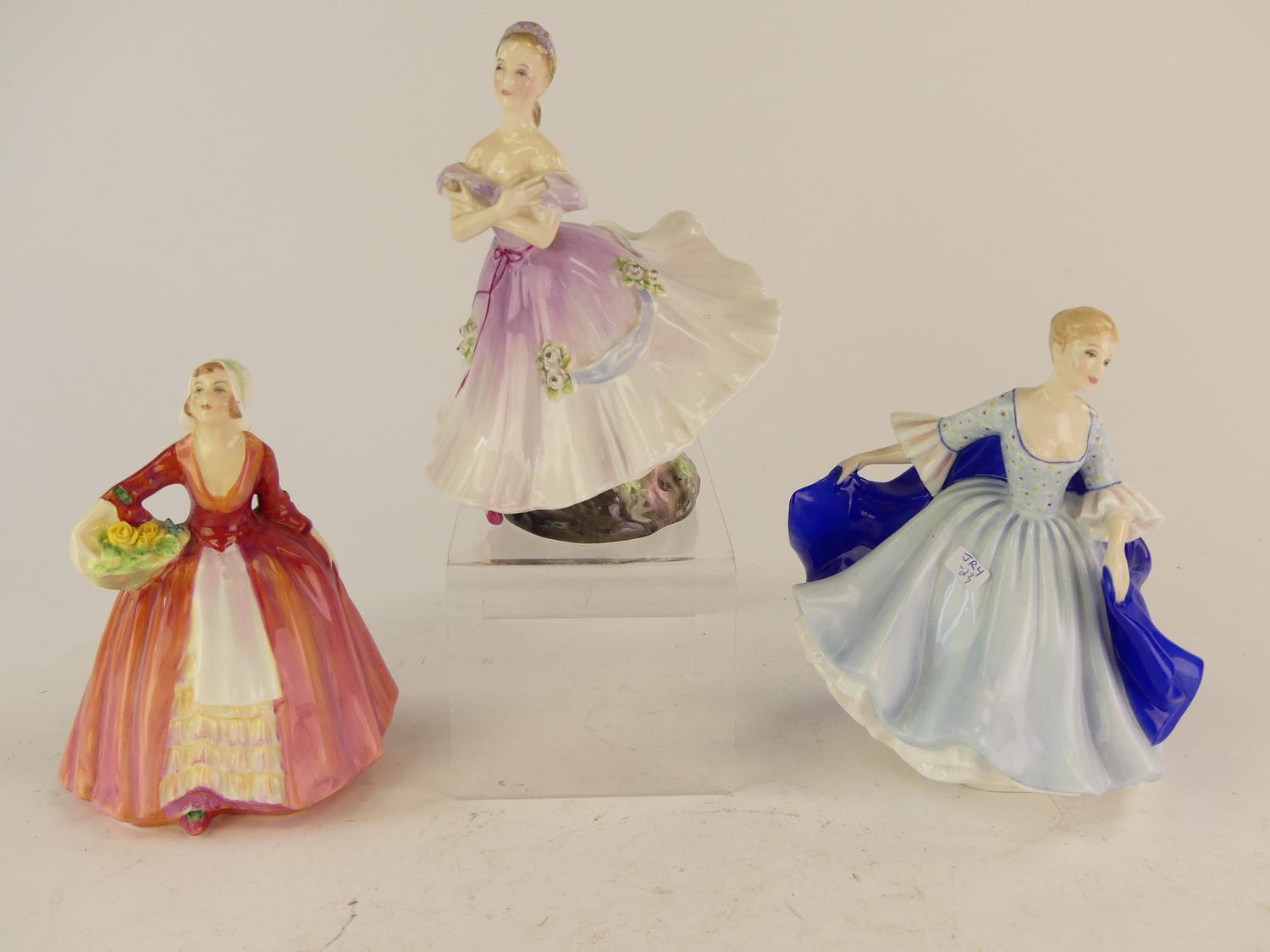 four royal doulton figurines, the ballerina hn2116, janet hn1537, dulcie hn2305