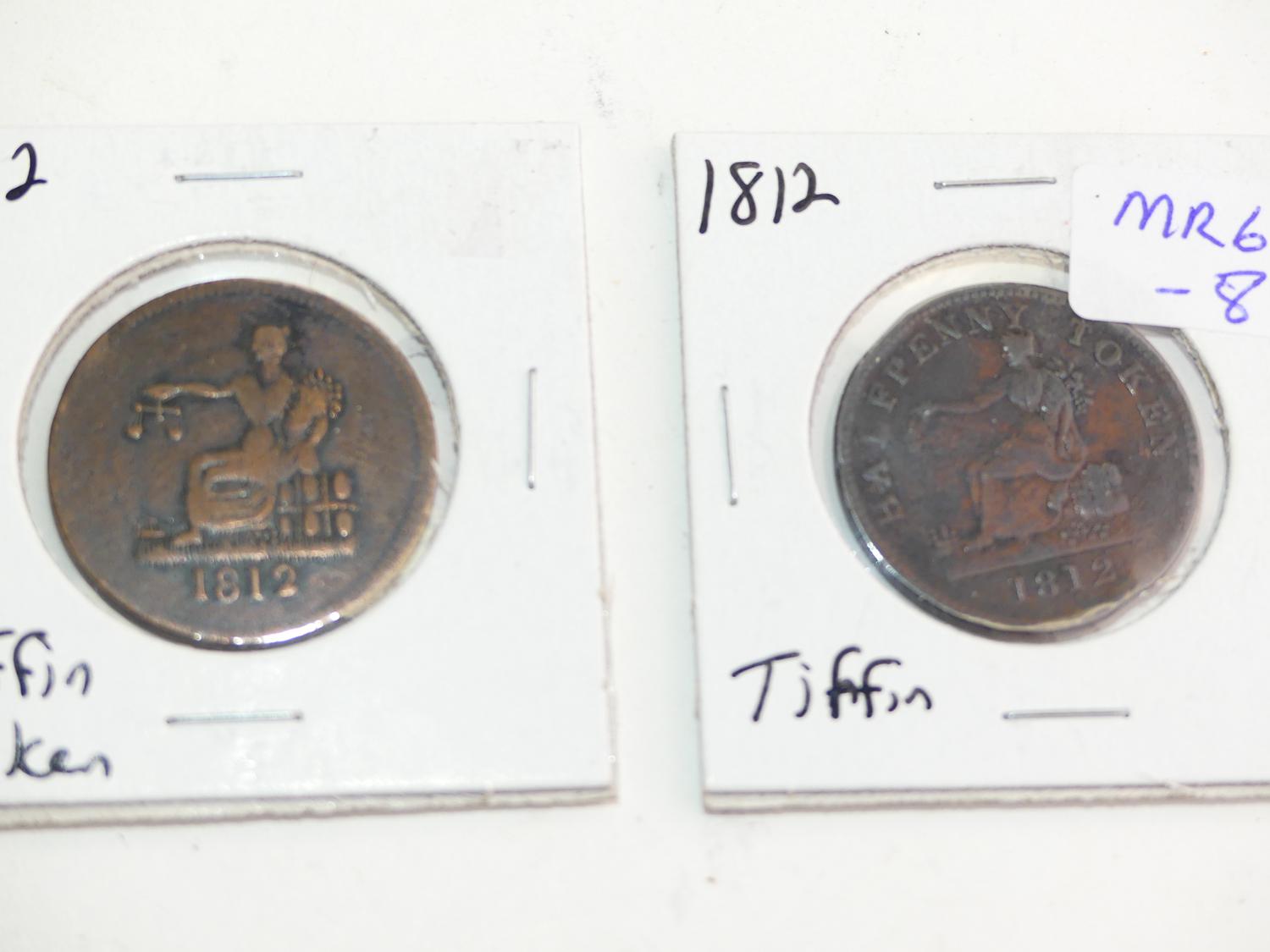 two 1812 tiffen tokens - canadian
