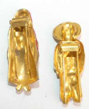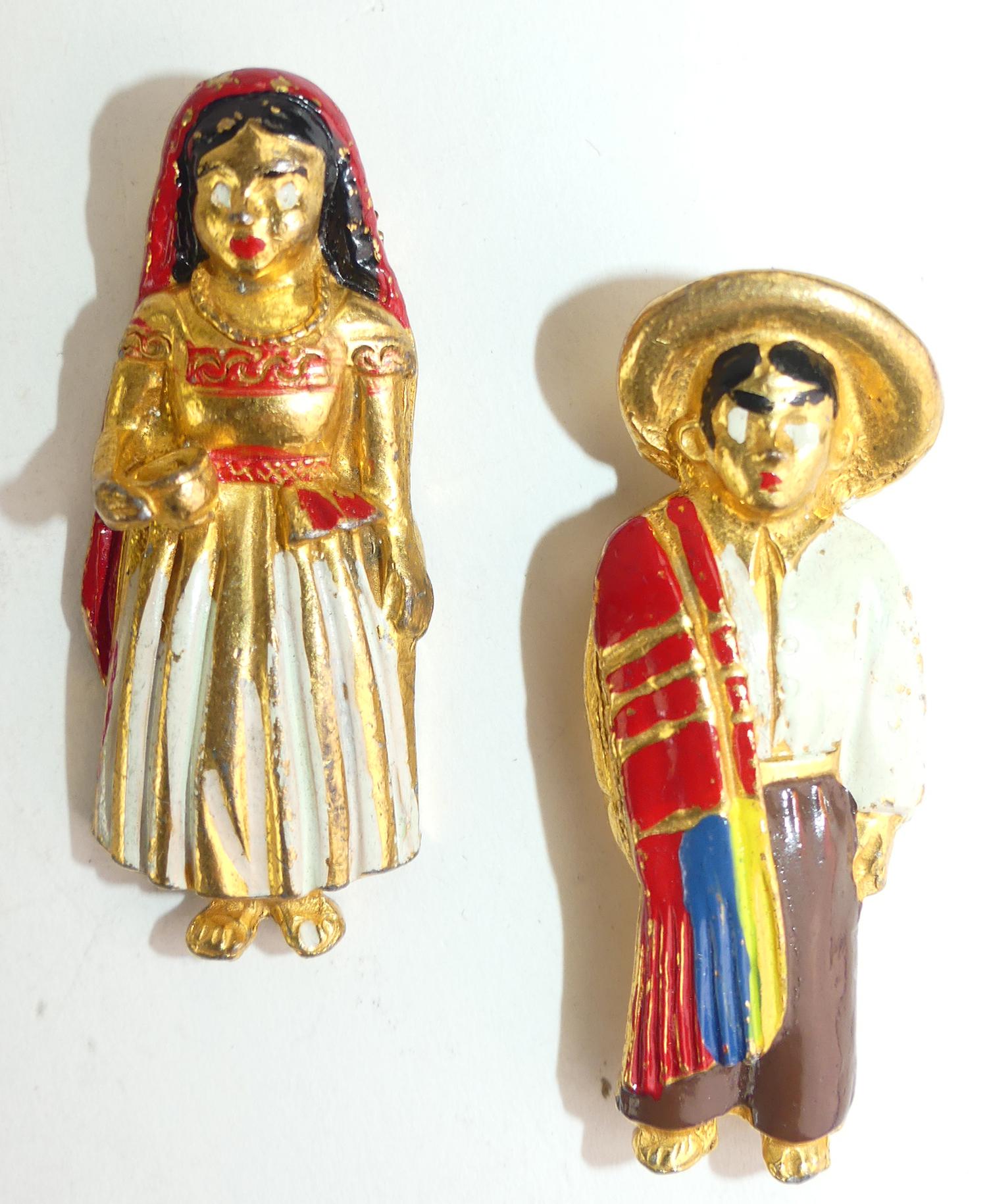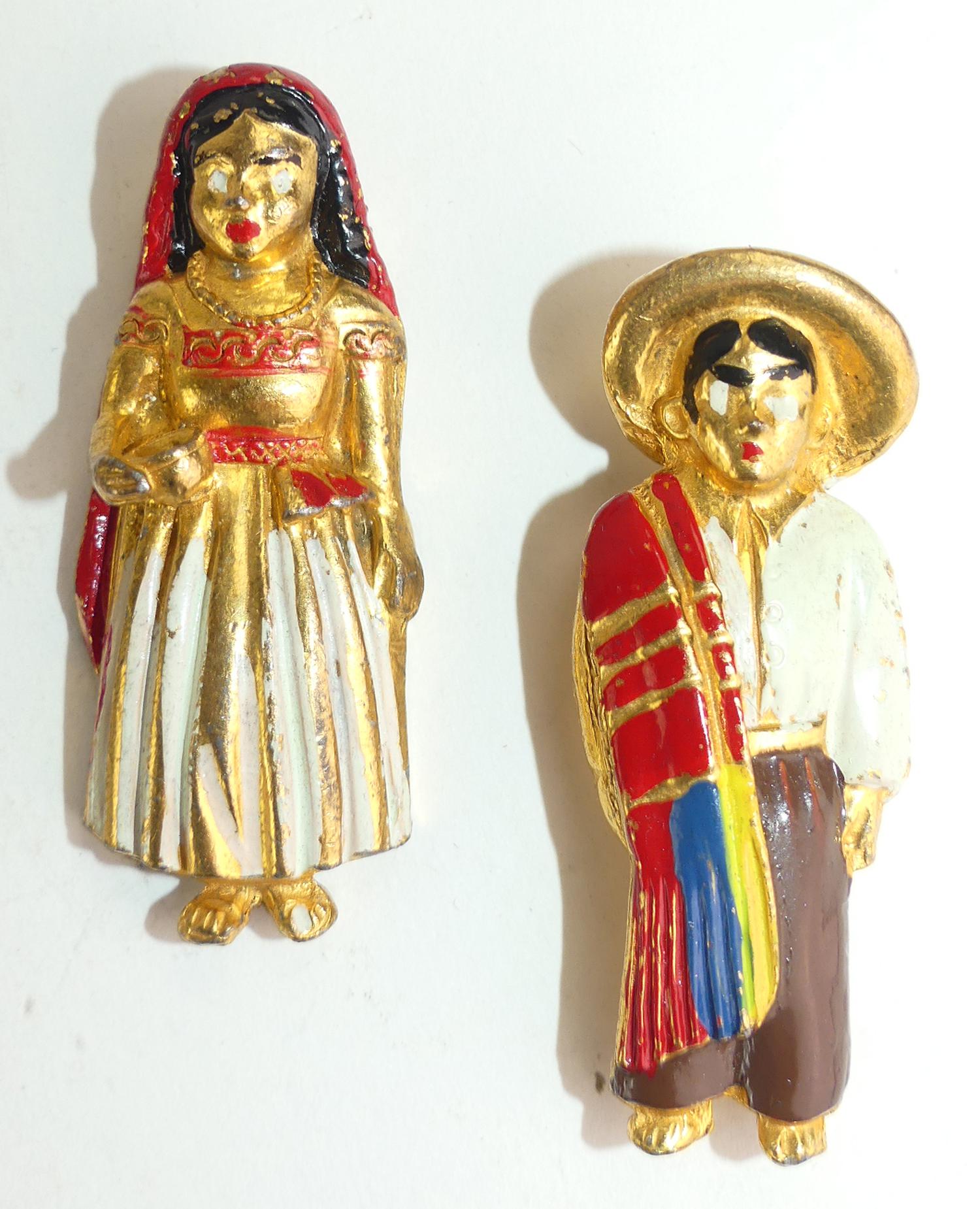 vintage pair of coro enamelled mexican couple fur clips brooches, 1940s