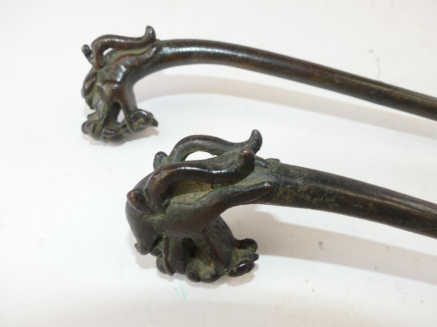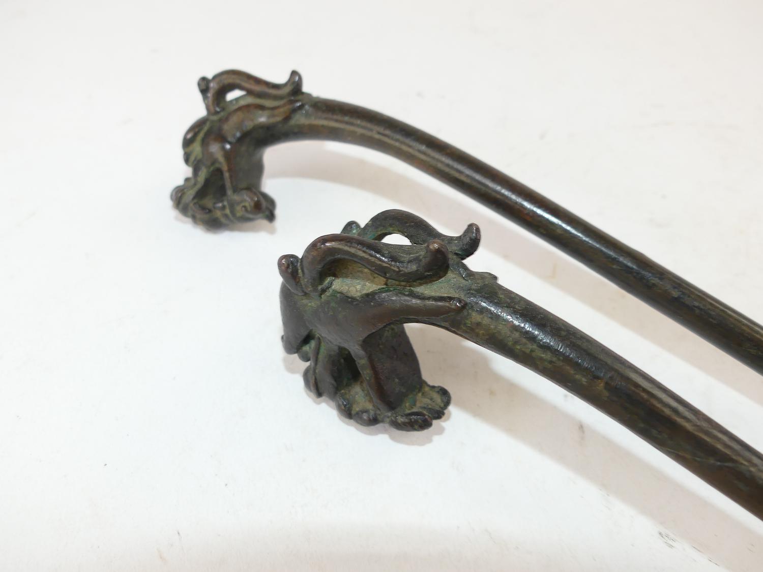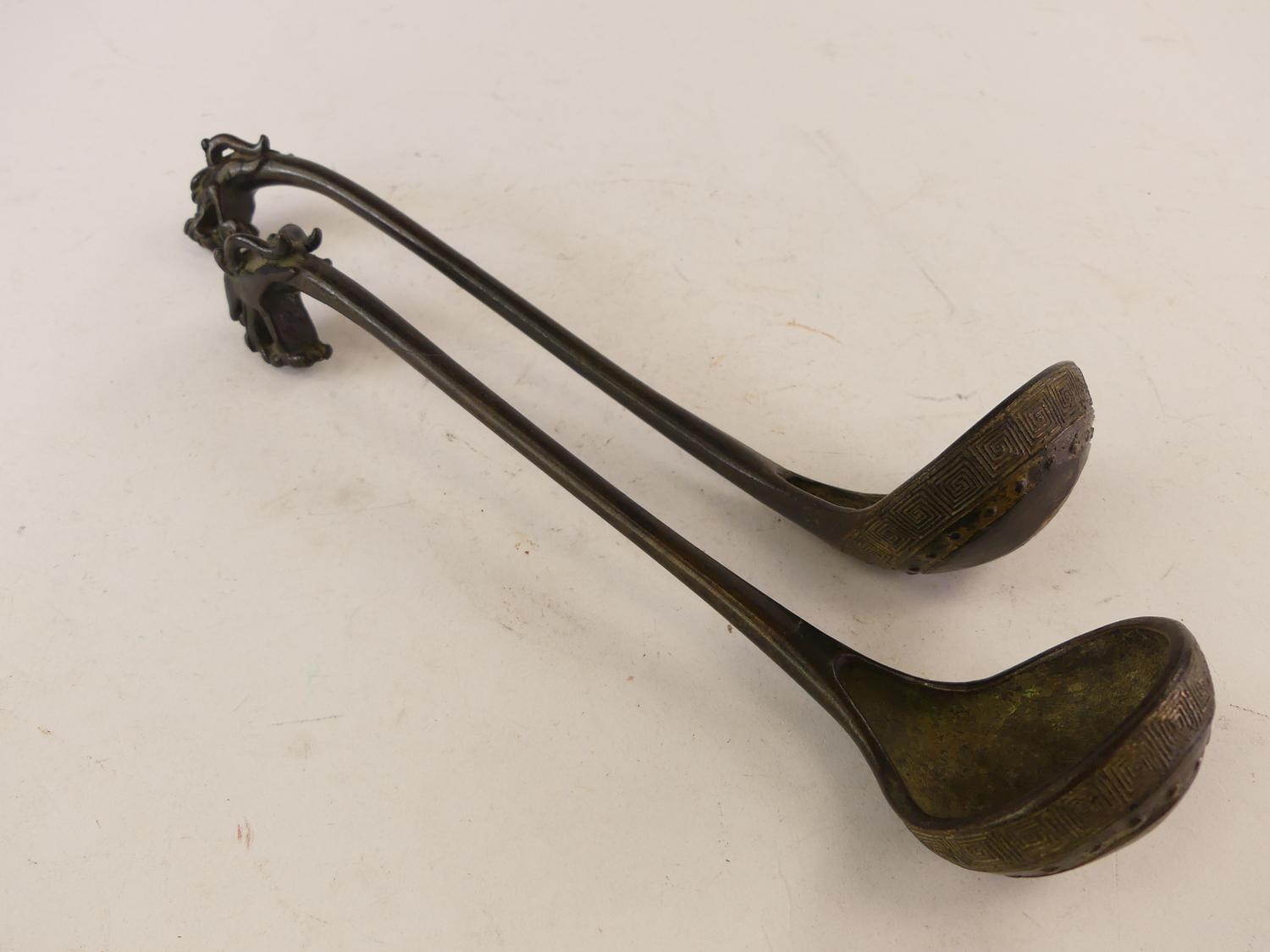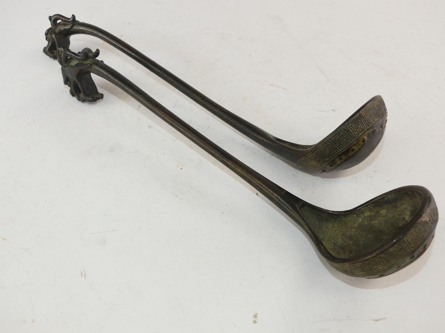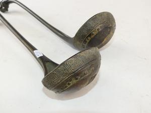 pair of chinese bronze ladles, signed
