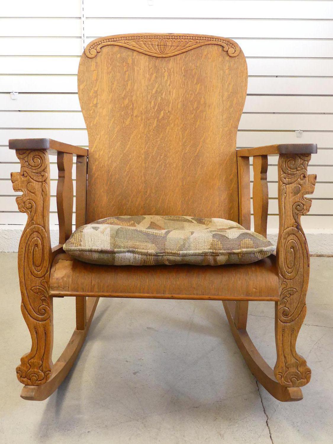 arts & crafts oak rocking chair, 37" x 27" x 34"