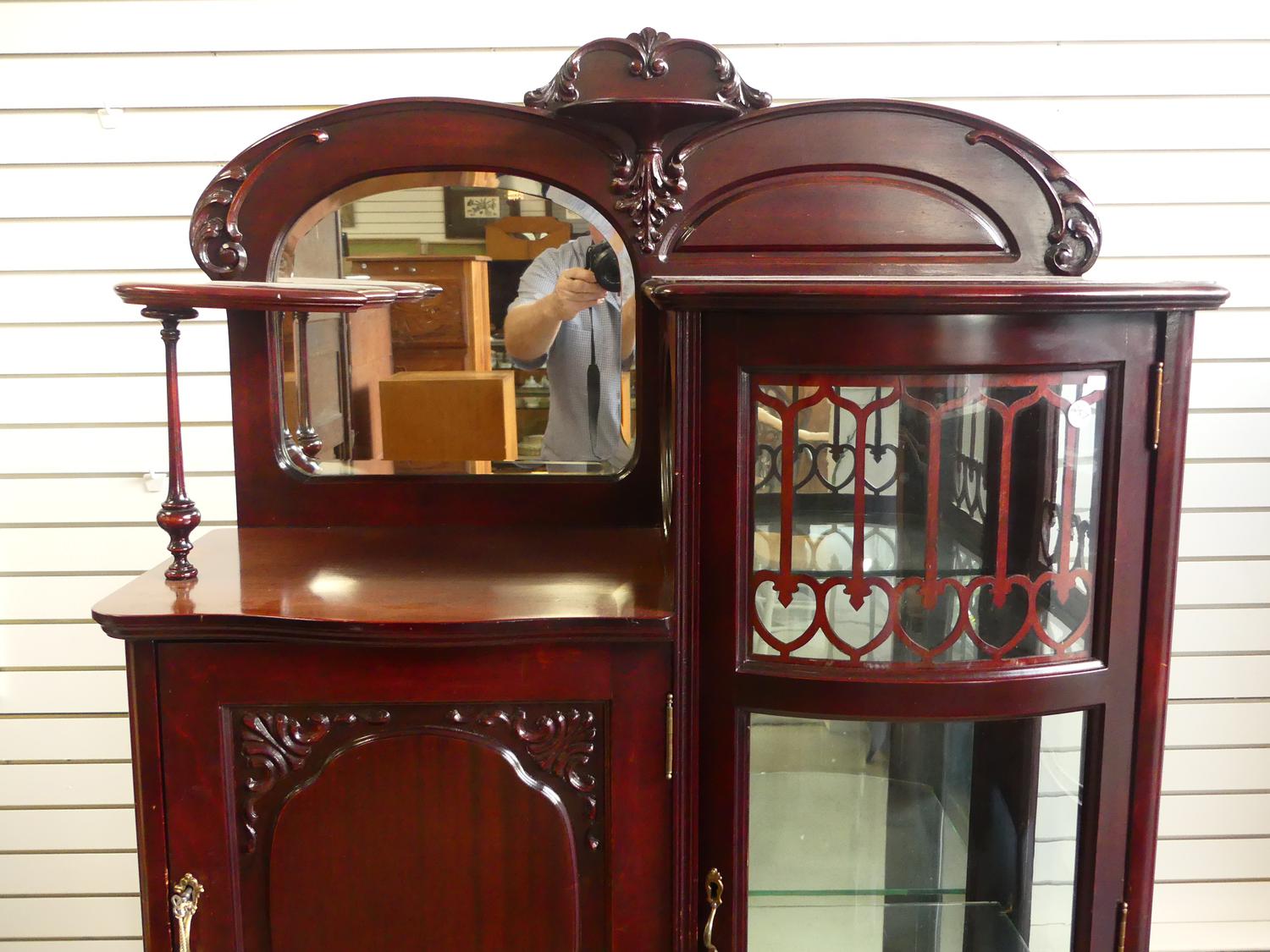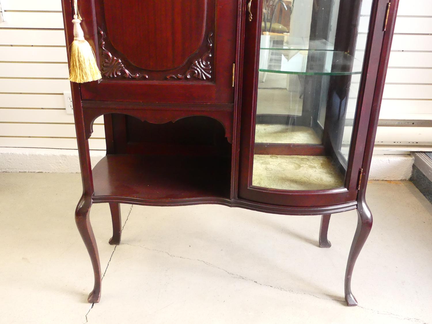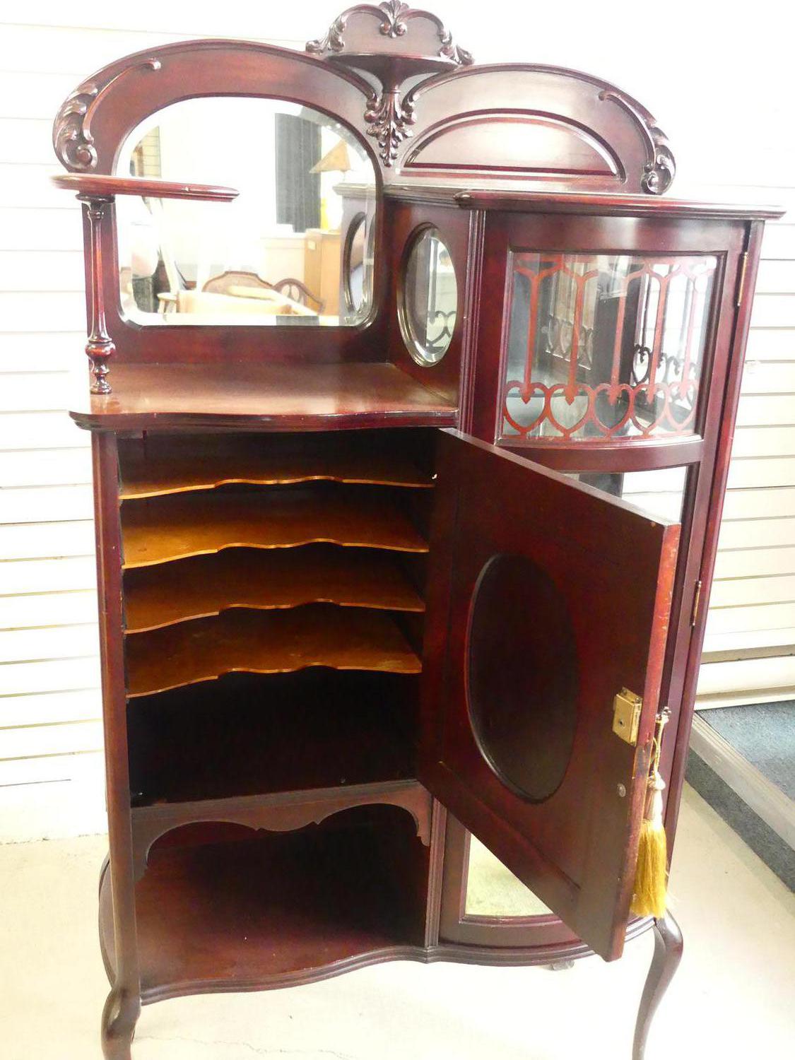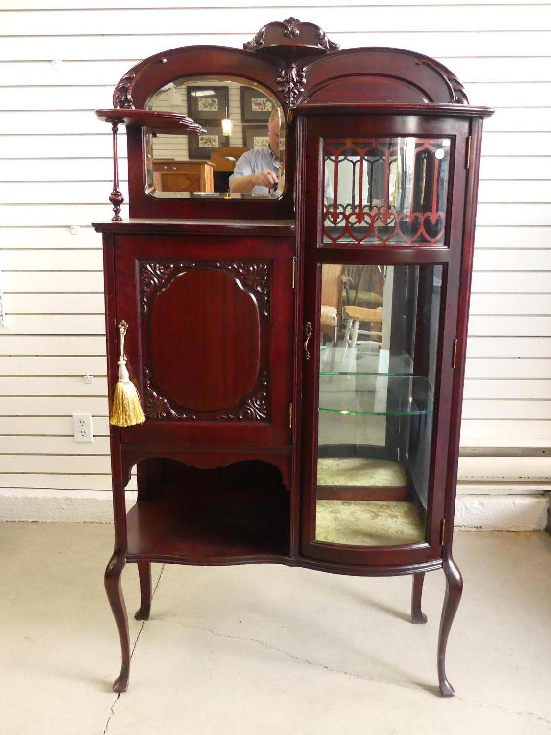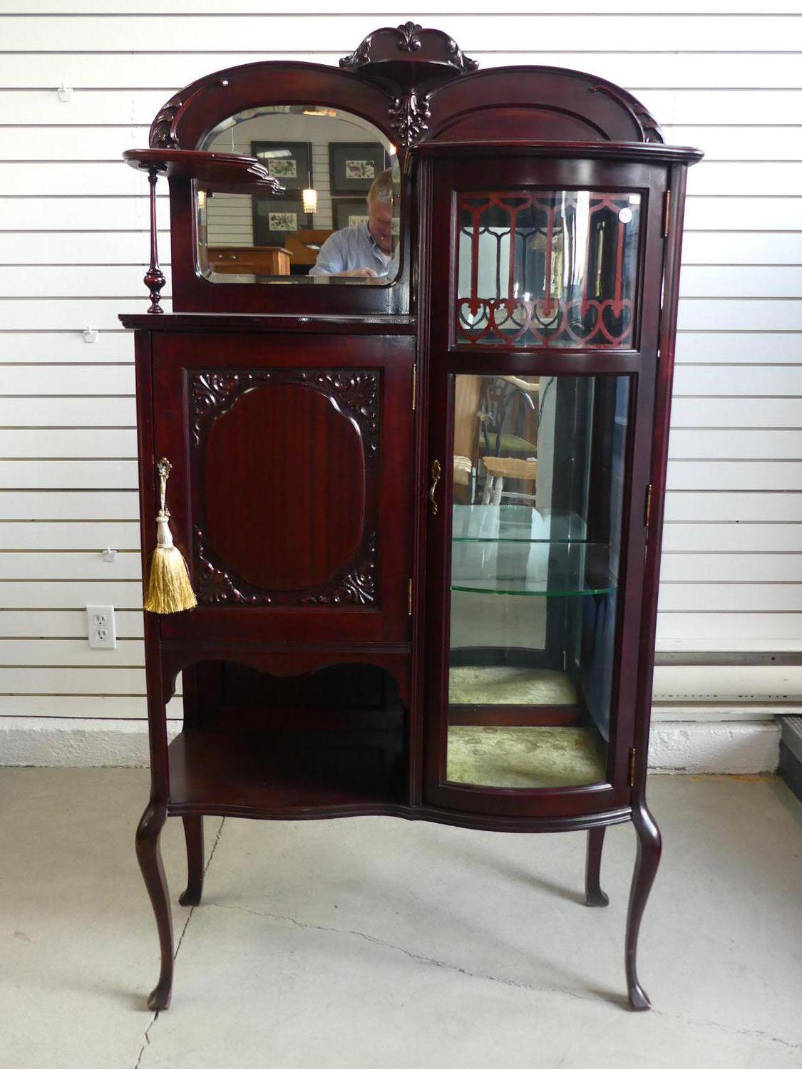 art nouveau mahogany curio cabinet, 63" x 34" x 15"