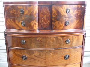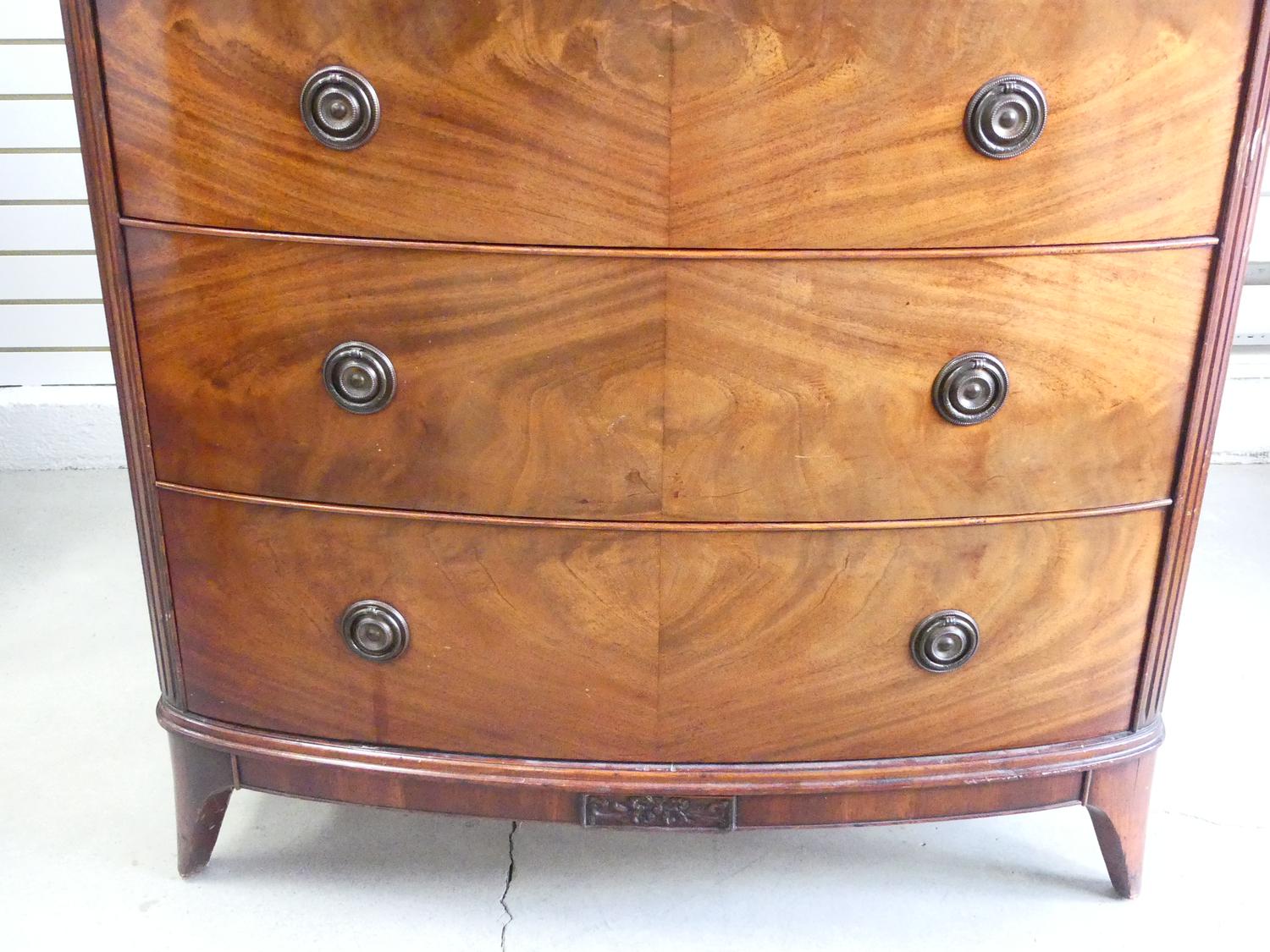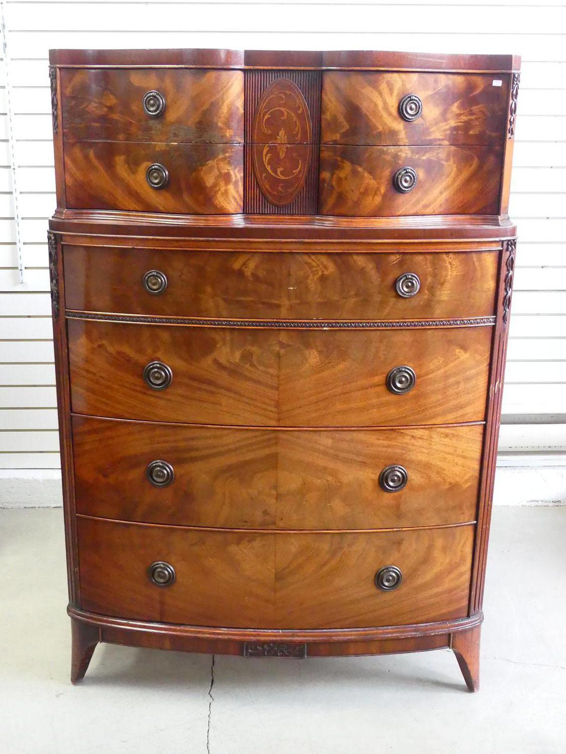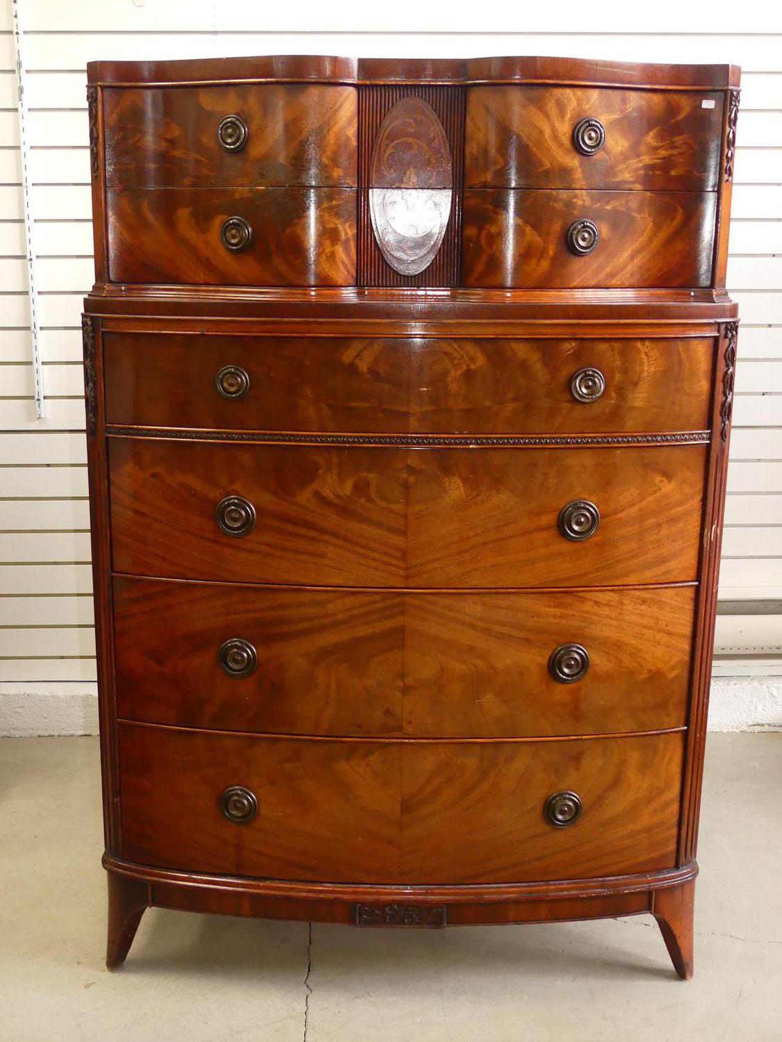 american mahogany serpentine front highboy chest of drawers, new york c.1920, 54" x 35" x 21"
