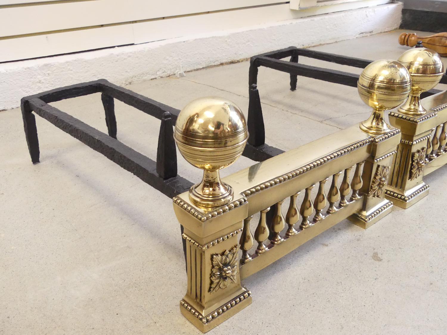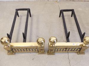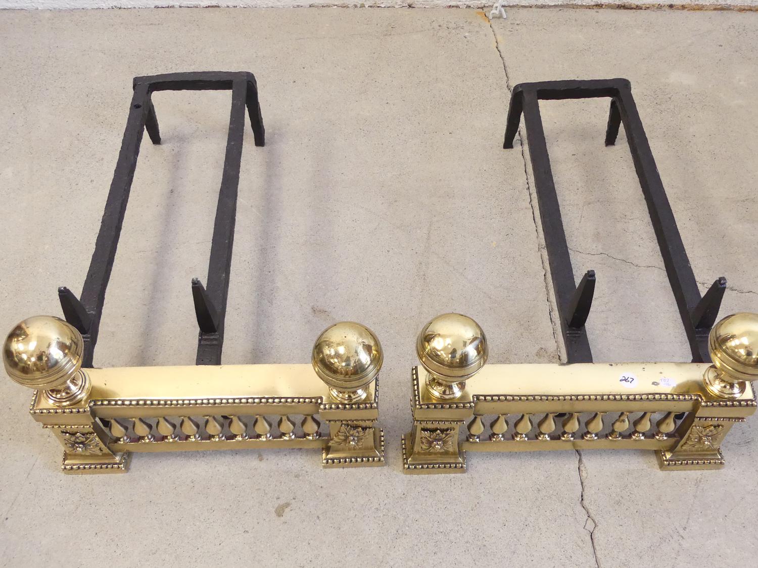 pair of polished 18th century bronze chenets, 9" x 14" x 23"