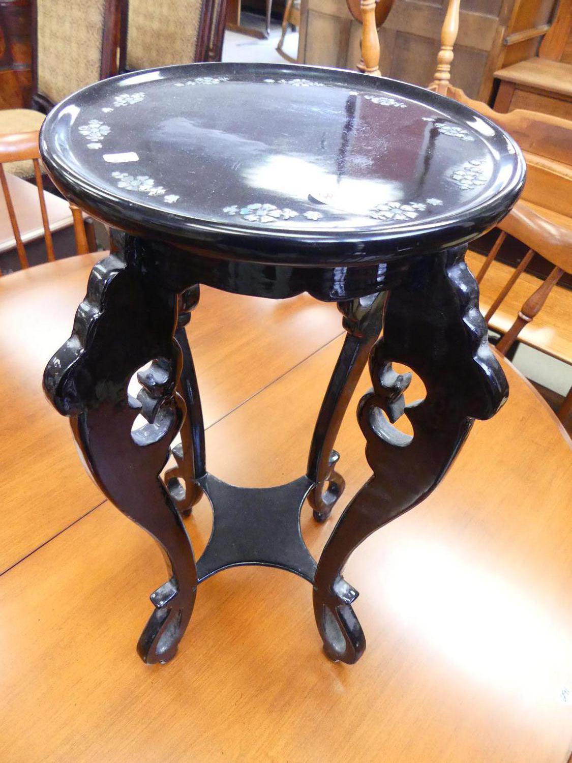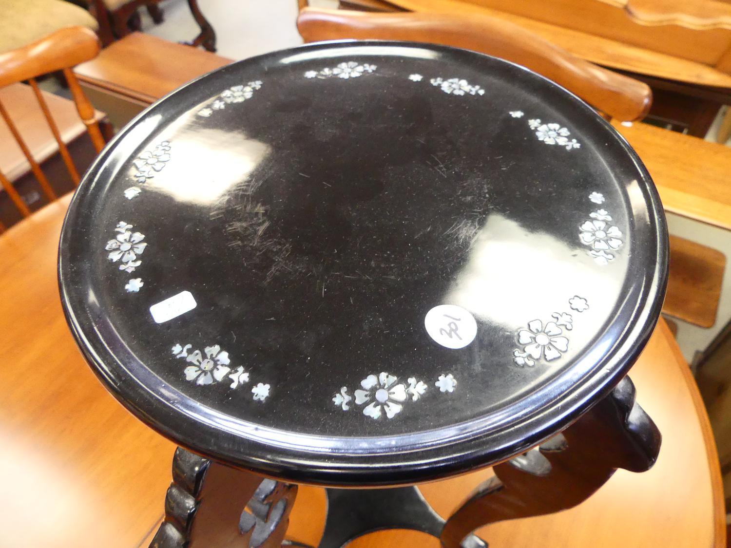 asian mother-of-pearl inlaid black lacquered pedestal, ht. 19 1/2"