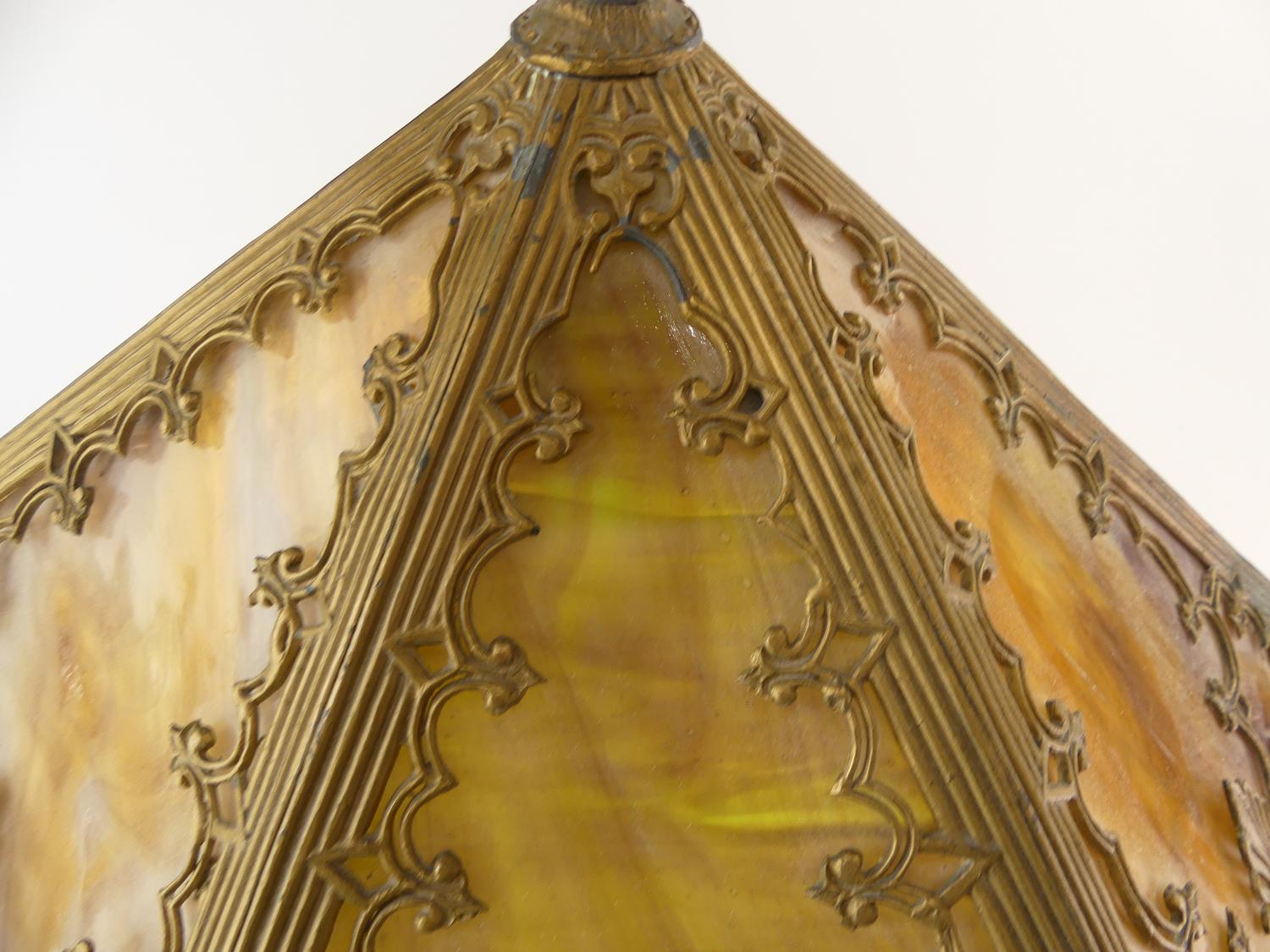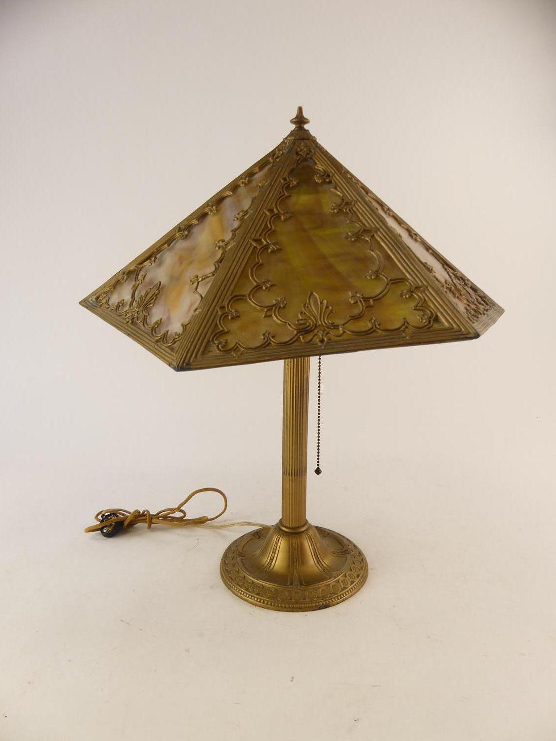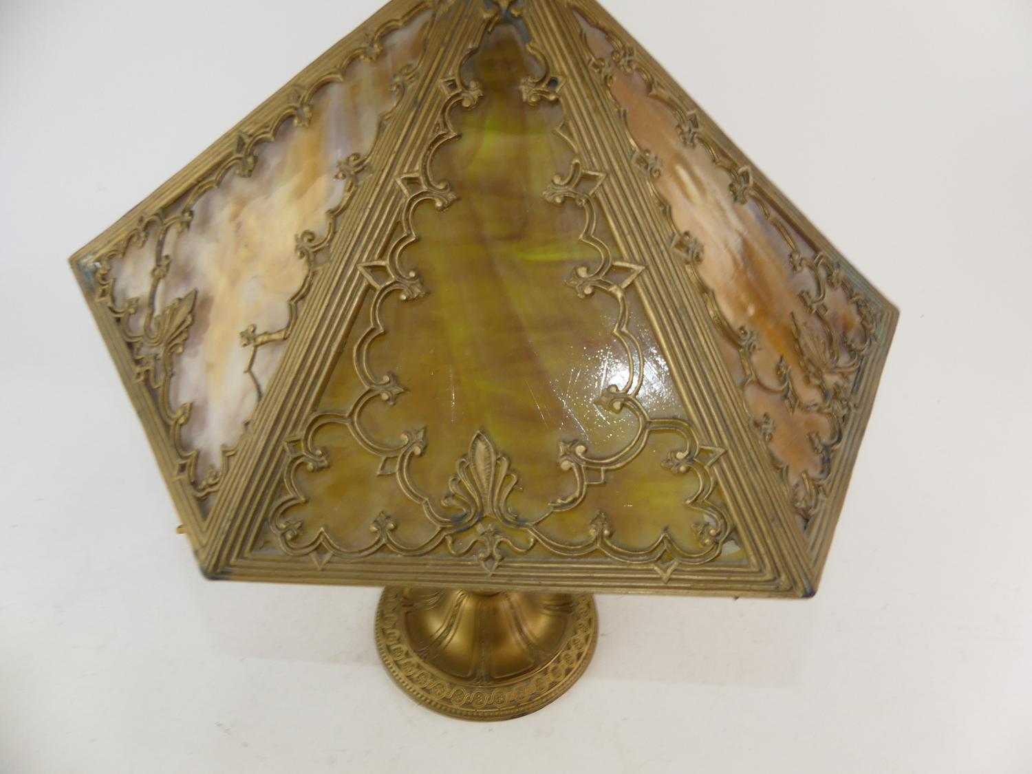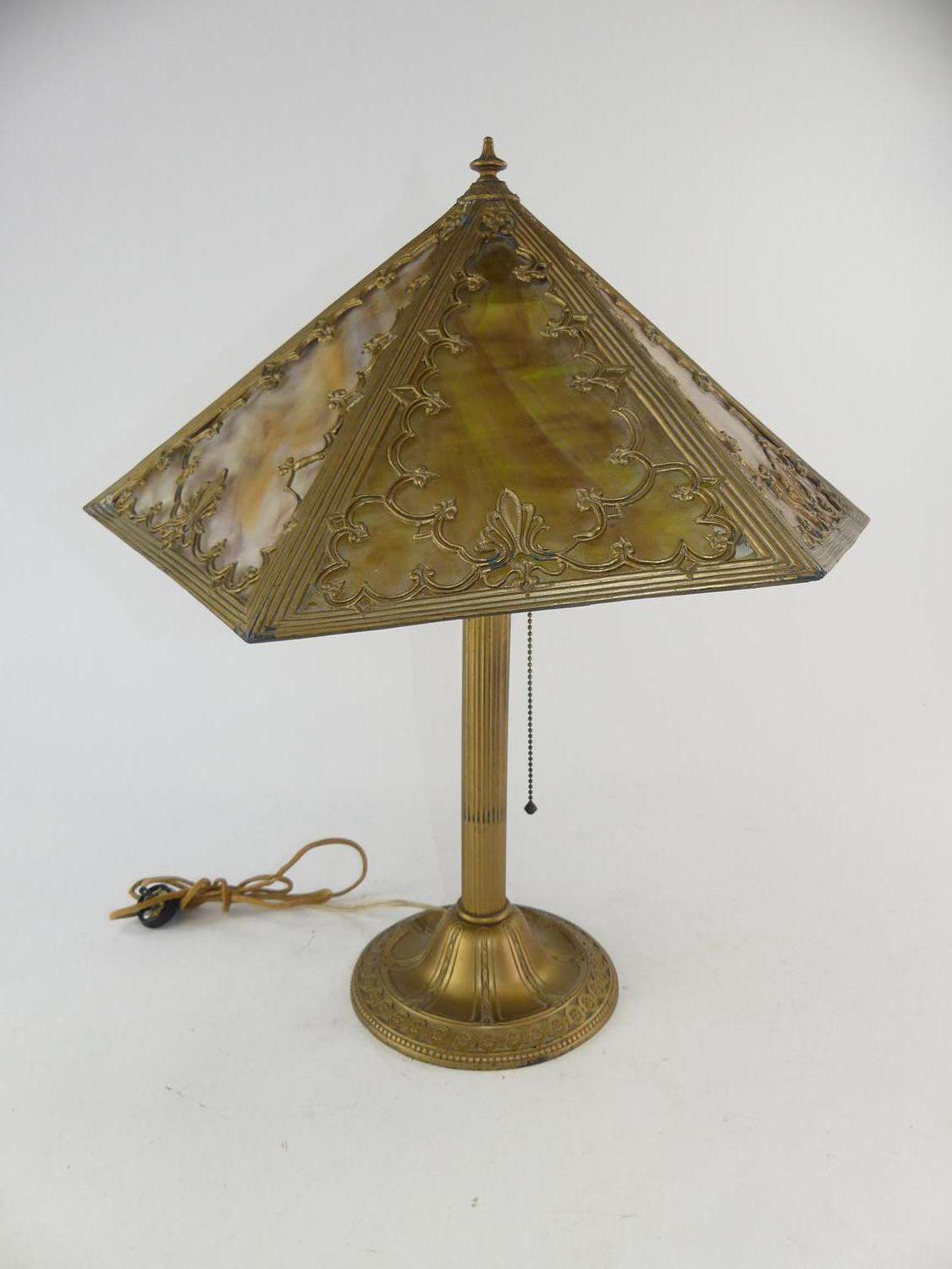arts & crafts slag glass table lamp