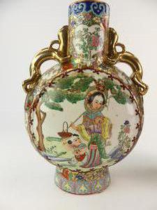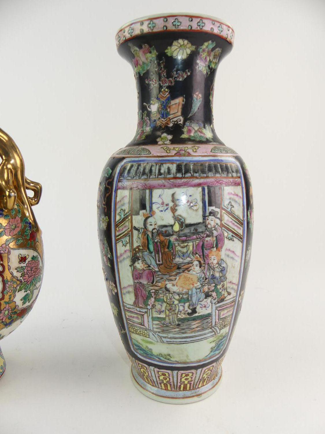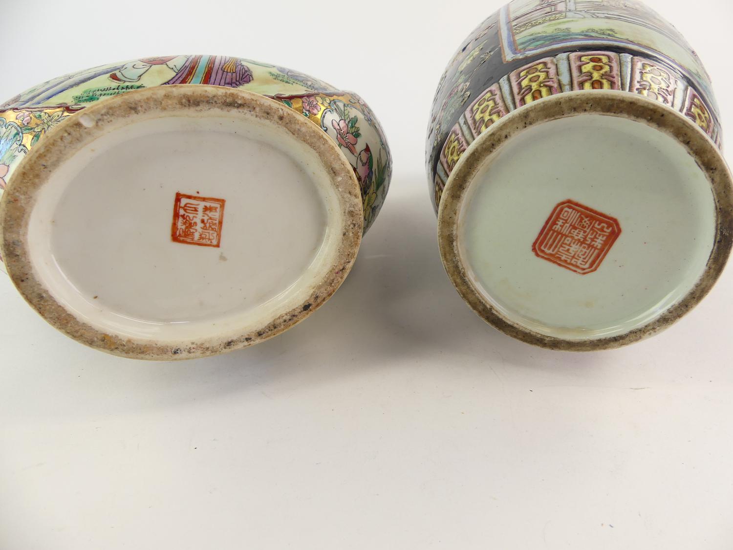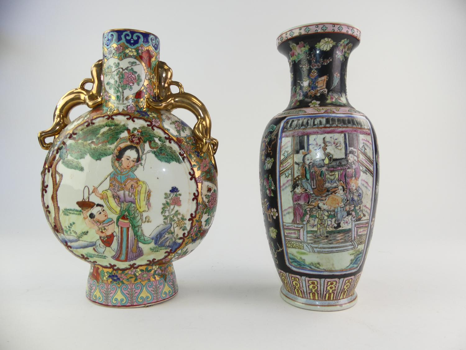 chinese moon flask vase with a chinese baluster vase, ht. 14 1/2"