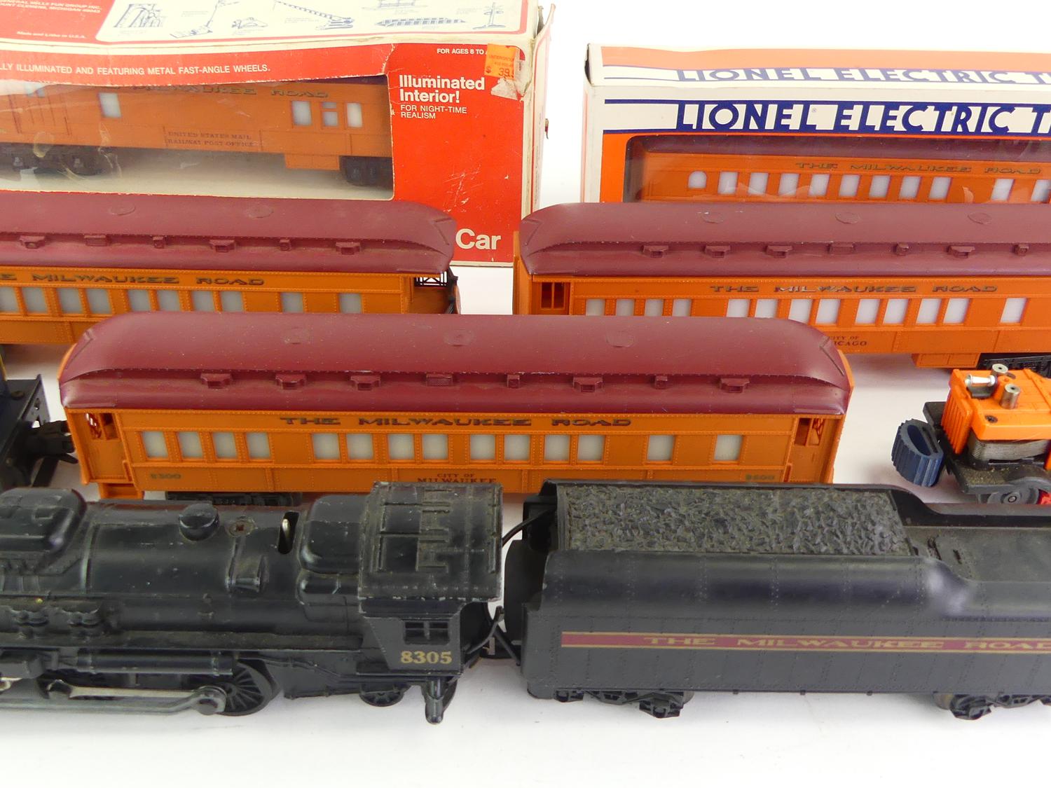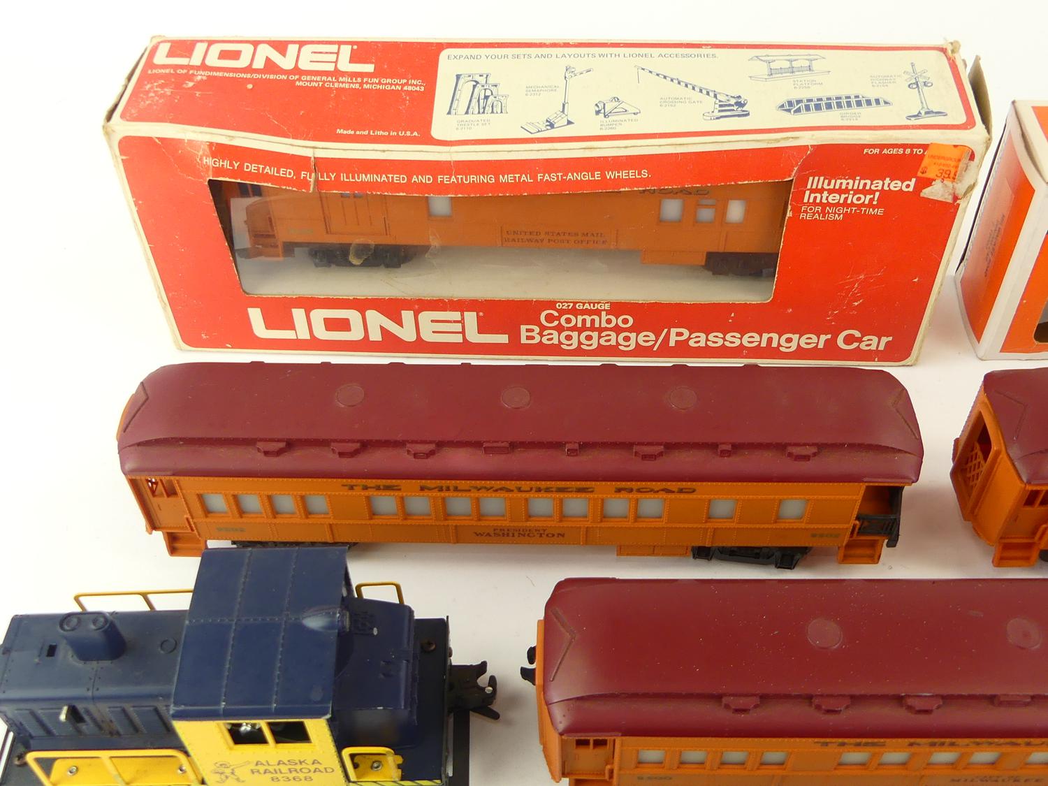 lionel train 8305 with 5 box cars and alaska railroad train