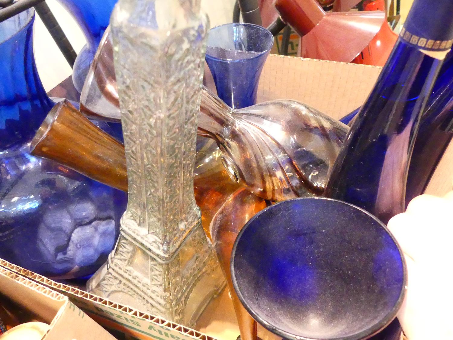 lot of blue and colored glass