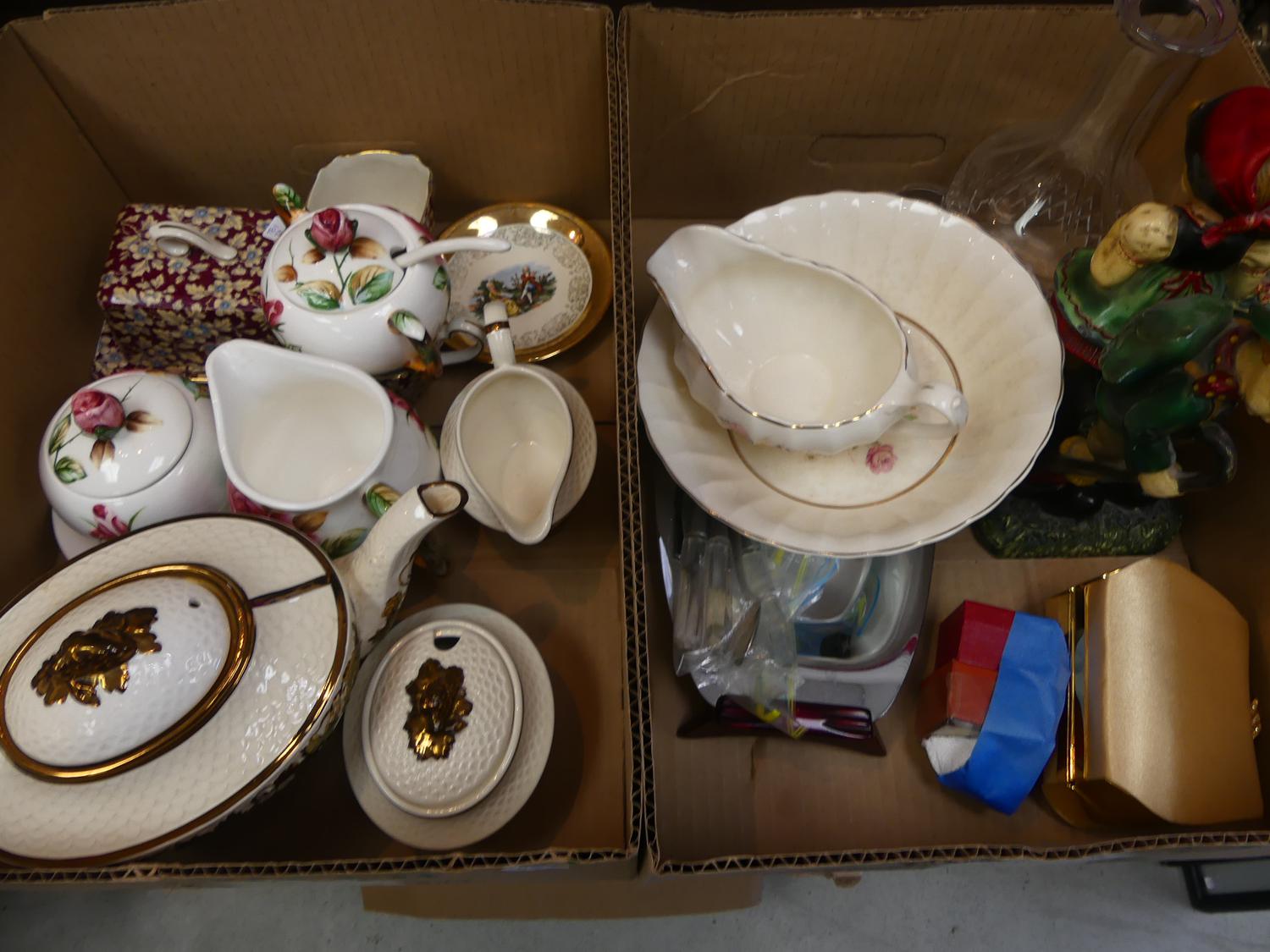 lot including chintz pattern cream and sugar, porcelain and crystal