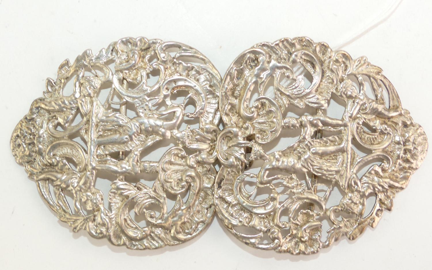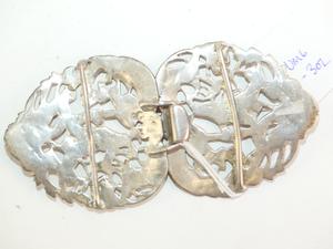 late victorian art nouveau silver belt buckle, 4 3/4" across 56.5 grams
