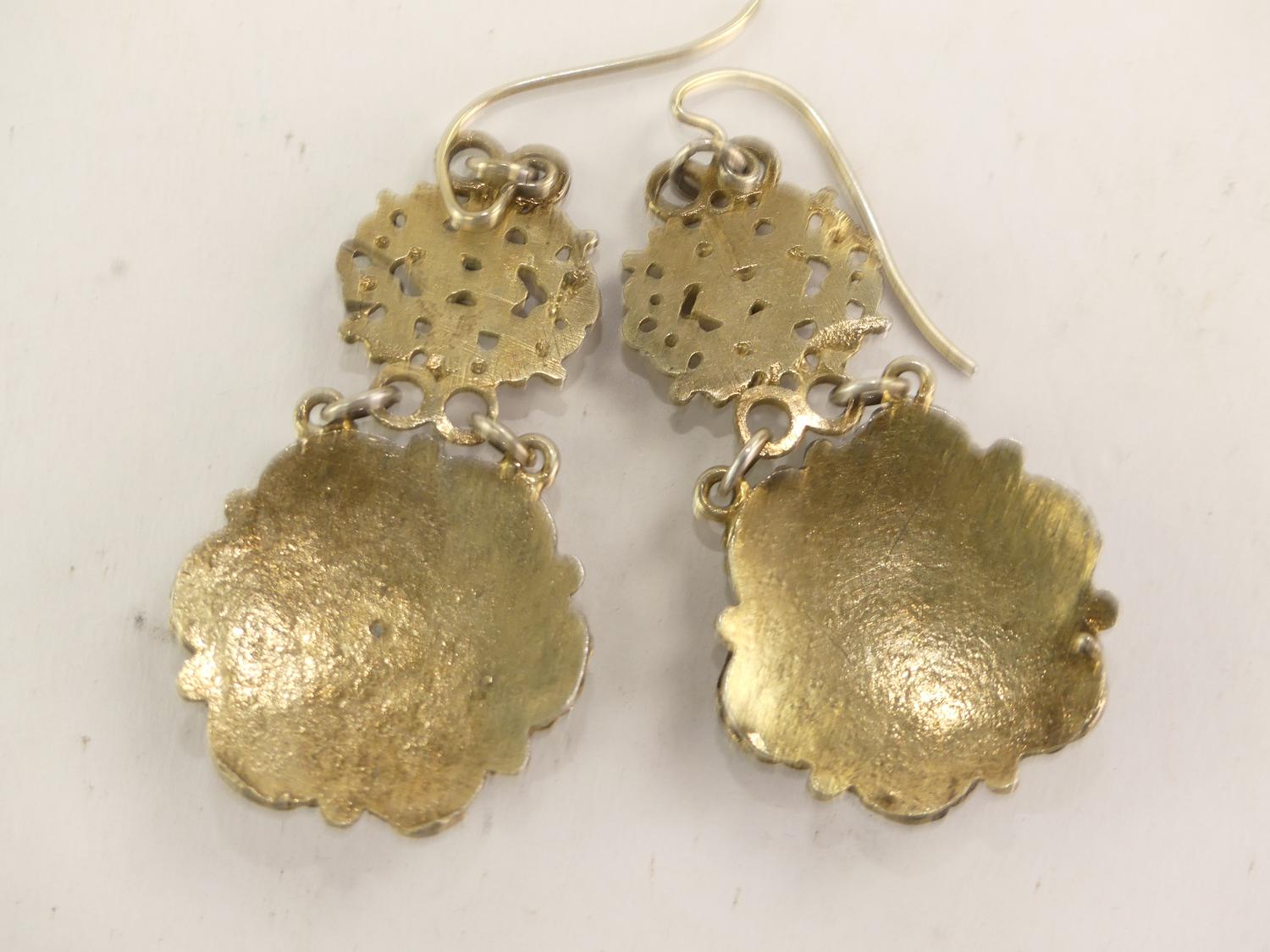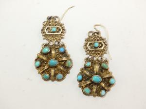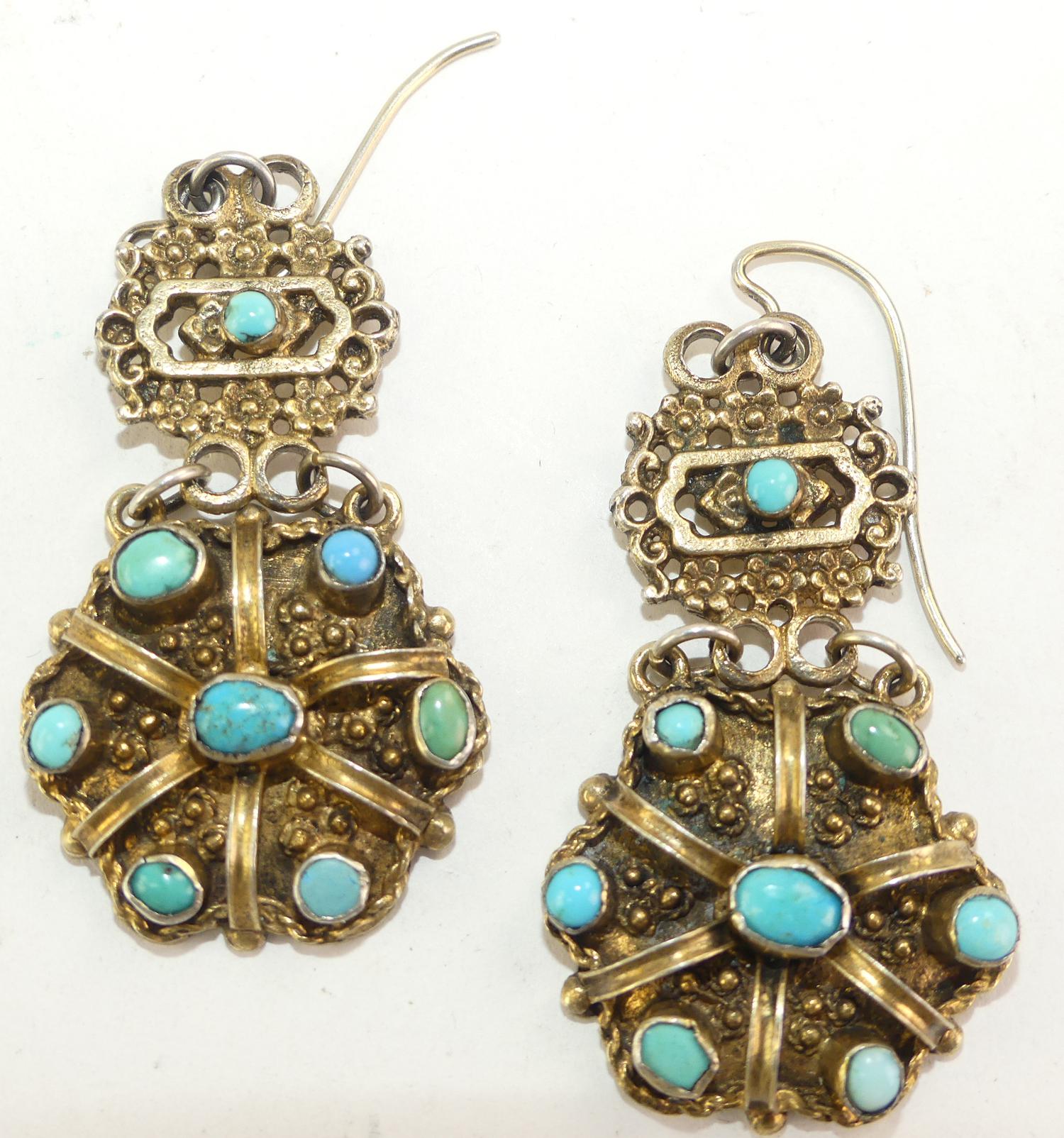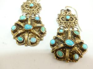 austro hungarian persian turquoise gilt silver earrings, ht 2 1/2"