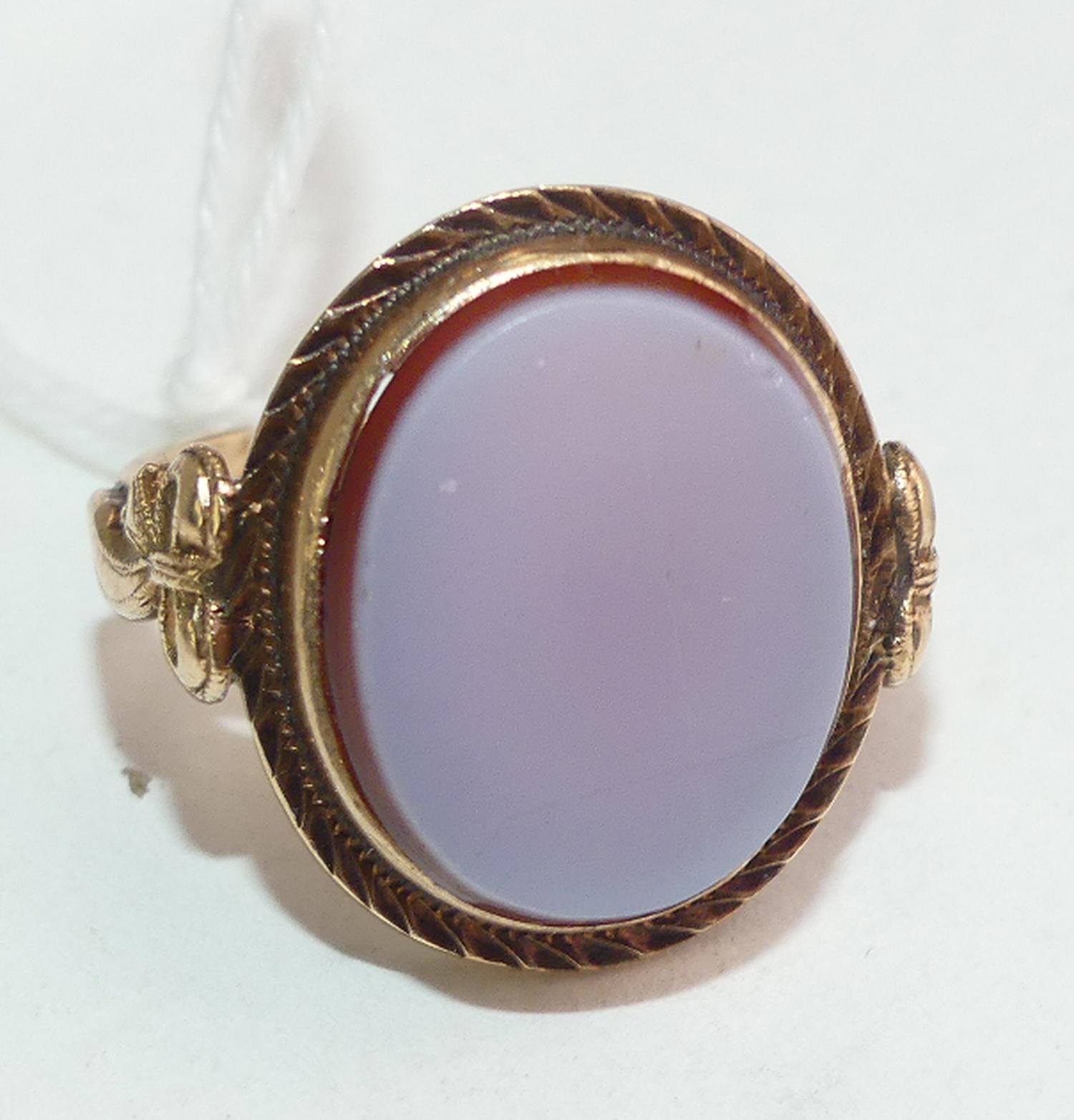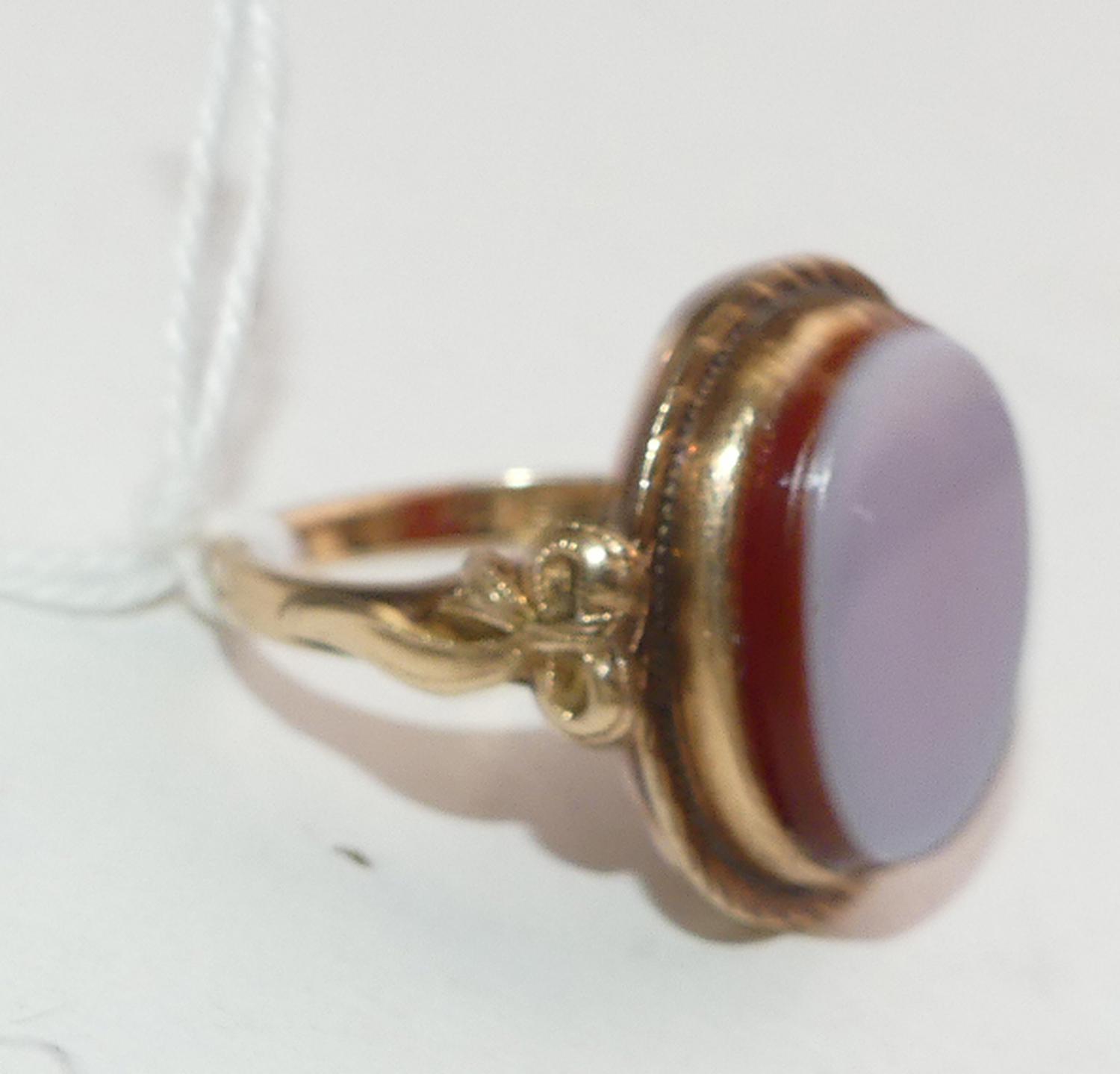 birks 10k pink gold sardonyx signet ring, size 4 1/2