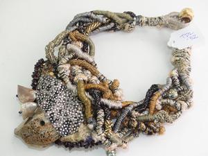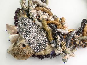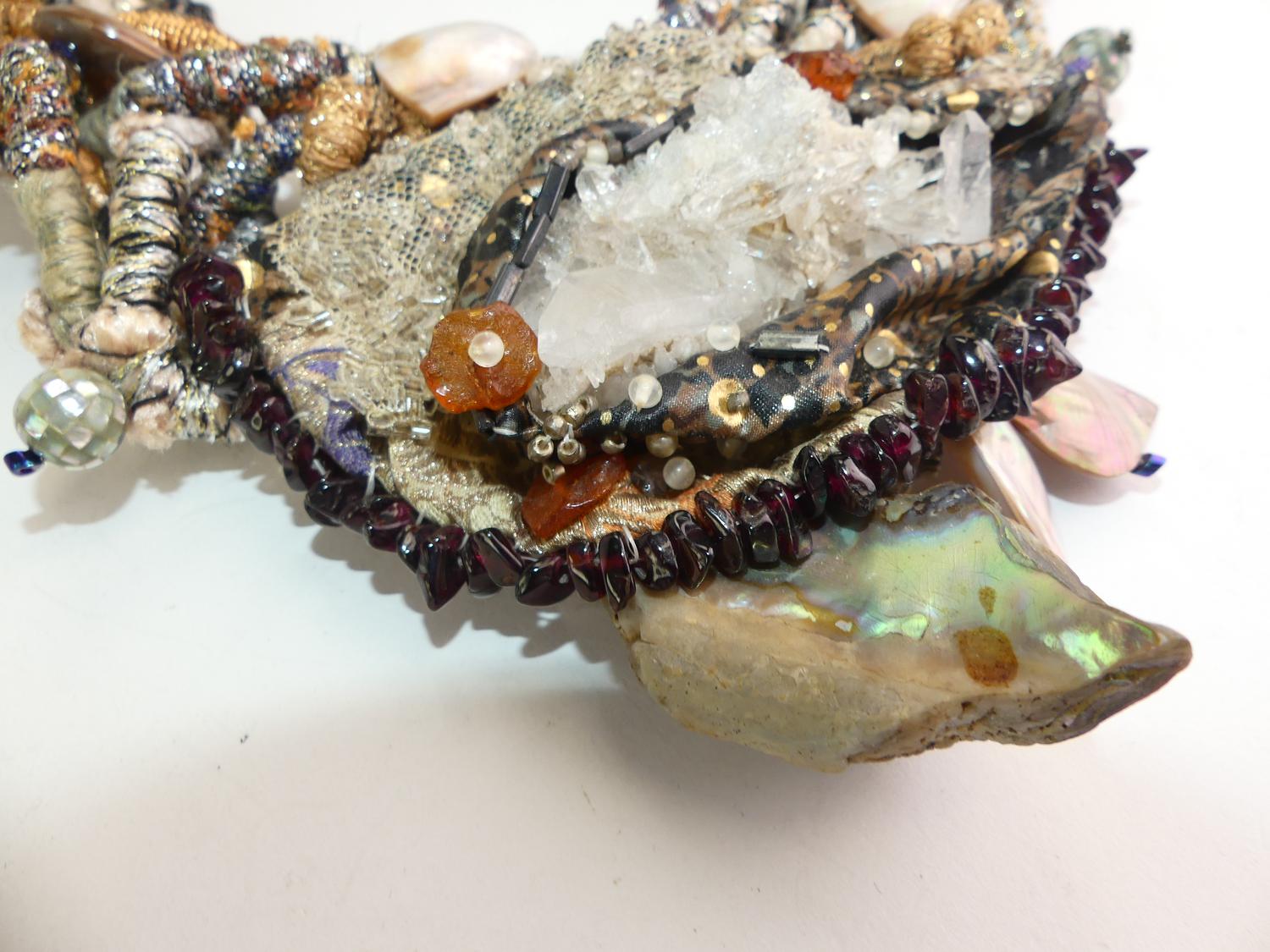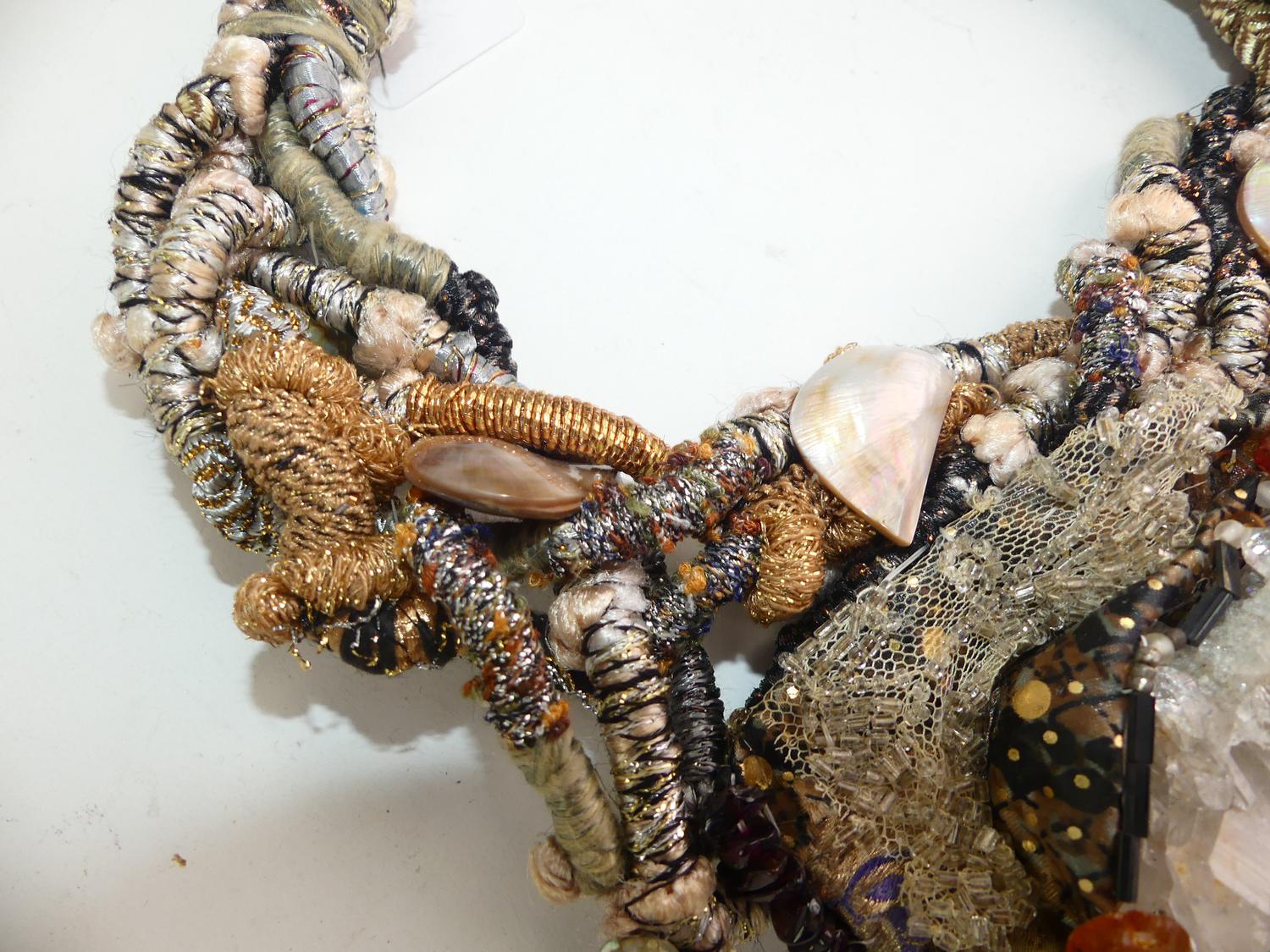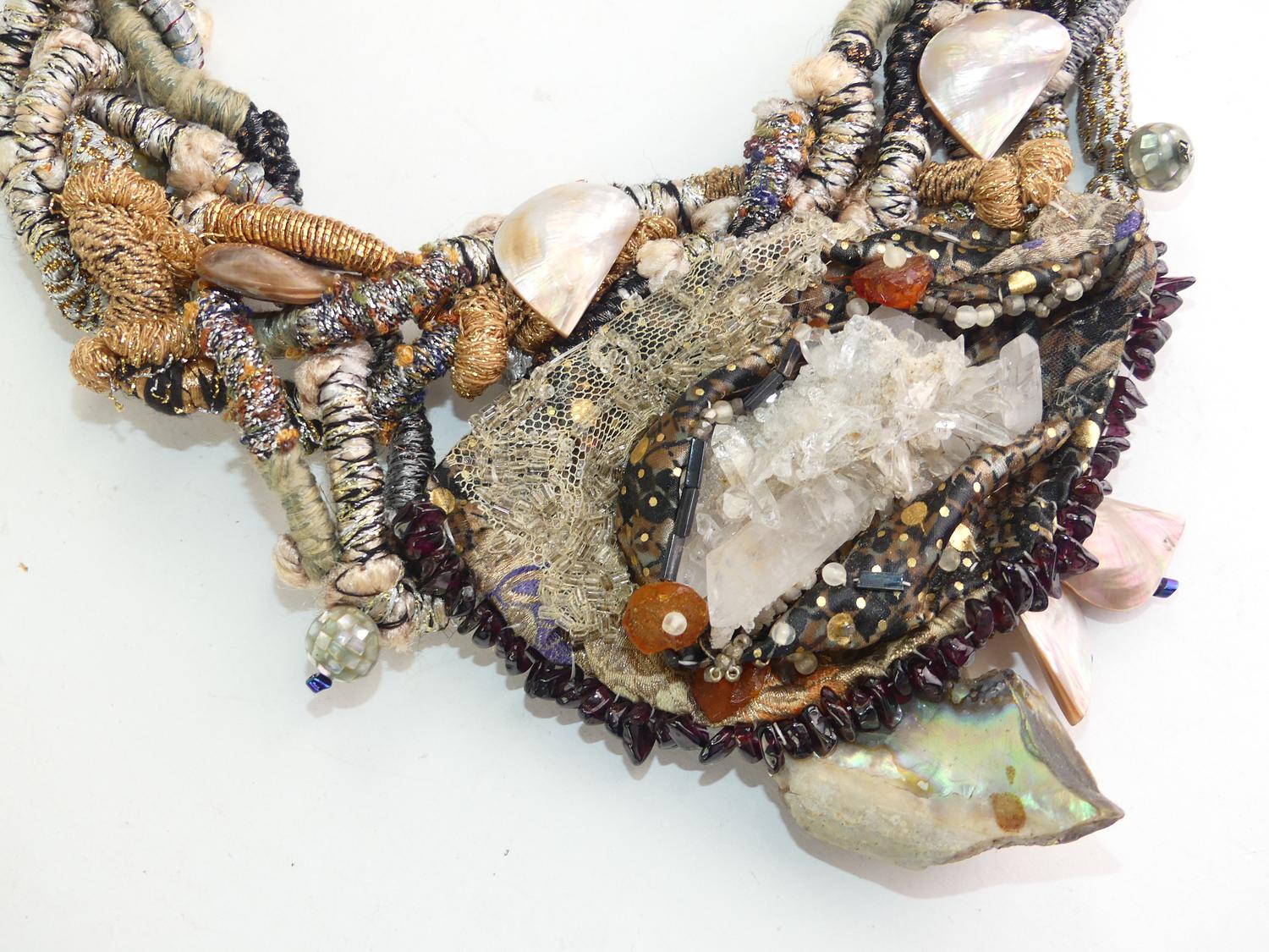 custom made 1908s silk cord quartz mother of pearl collar necklace, 18"