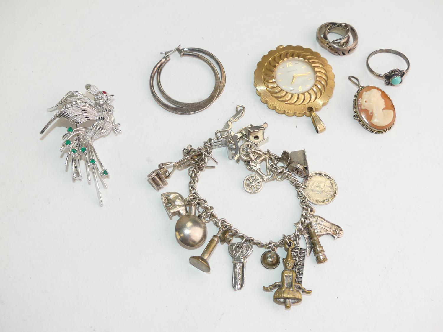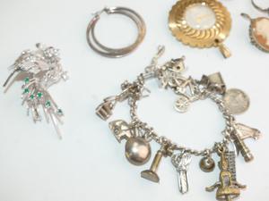 lot including silver charm bracelet, caravelle pendant watch, etc.