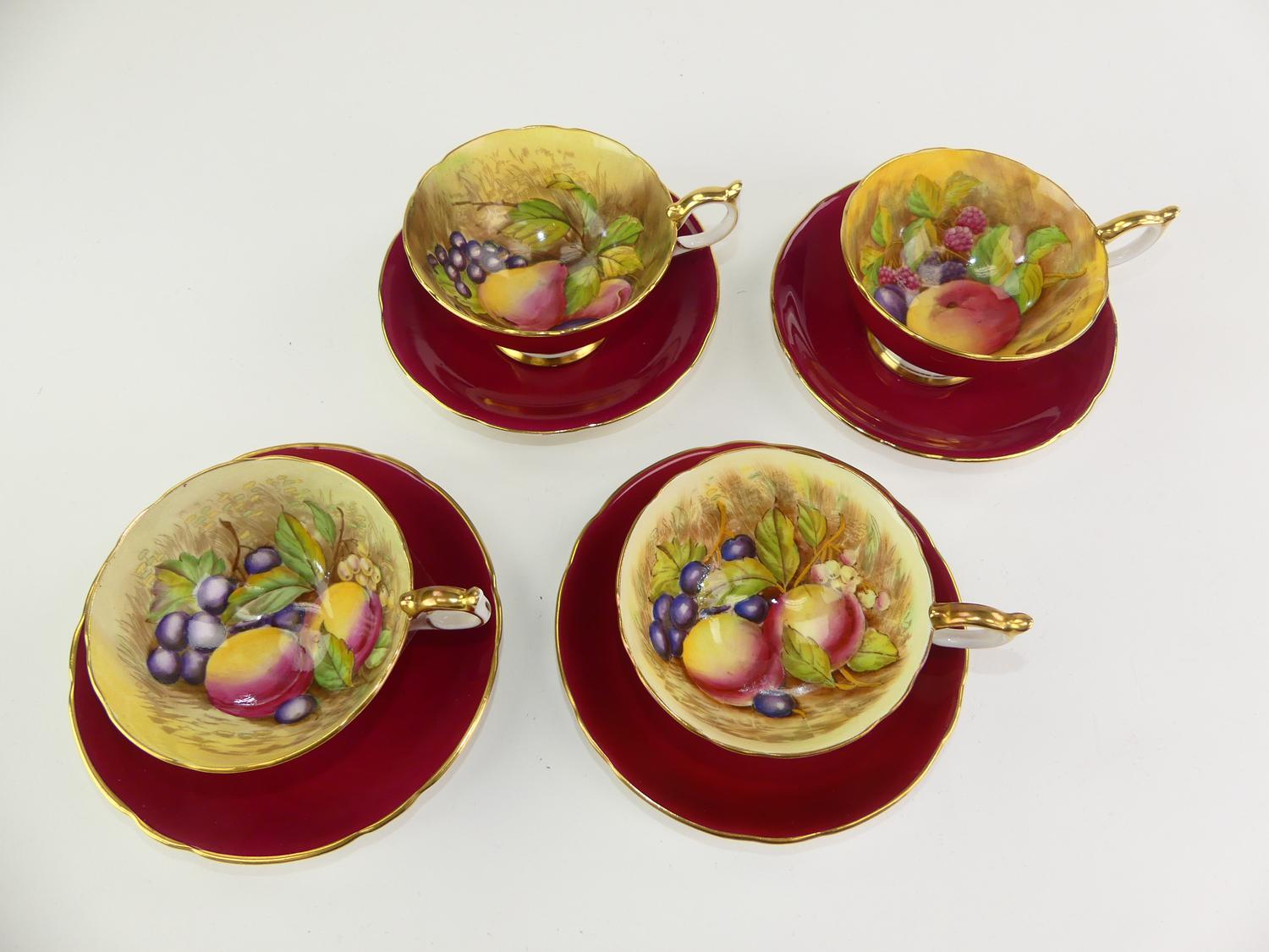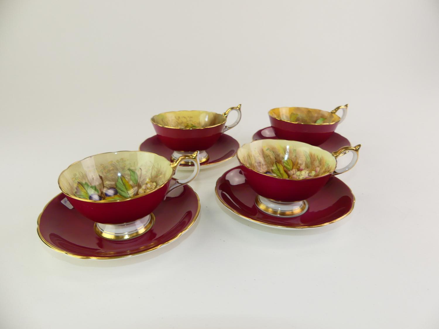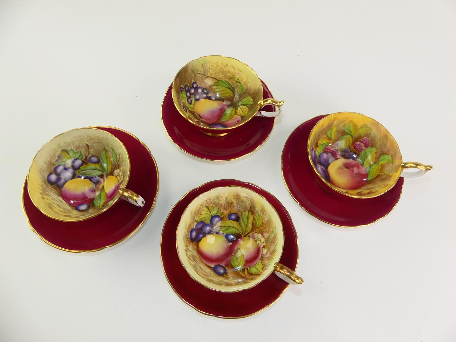4 aynsley fruit pattern teacups and saucers