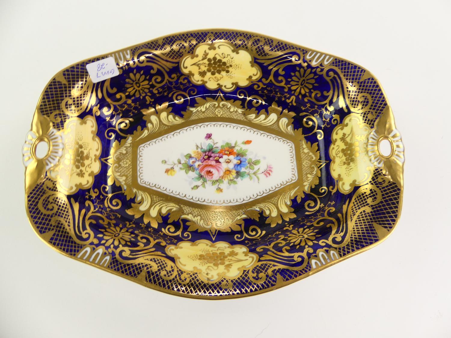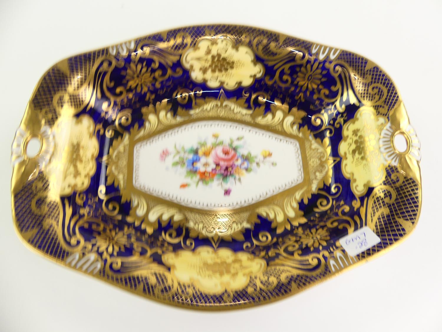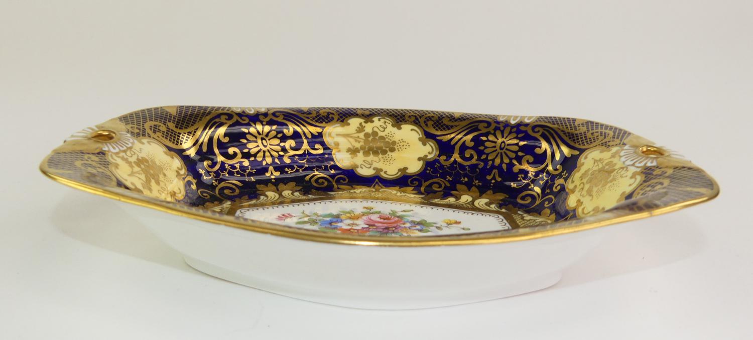 crown staffordshire cobalt and gilt hand painted bowl, 5 1/2" x 7 1/4"