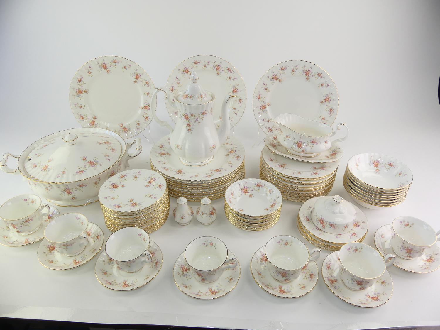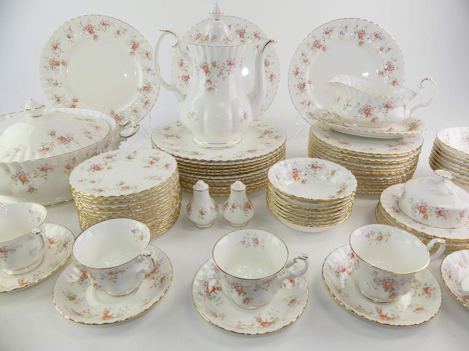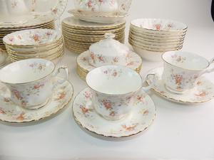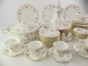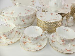 royal albert "peach rose" pattern china dinnerware, 80 pieces